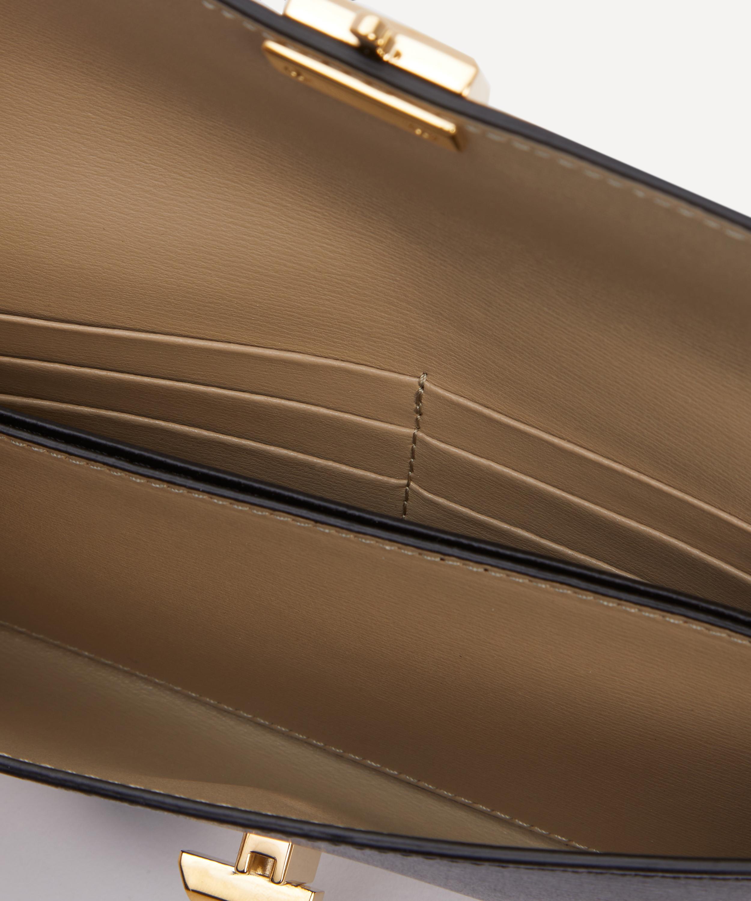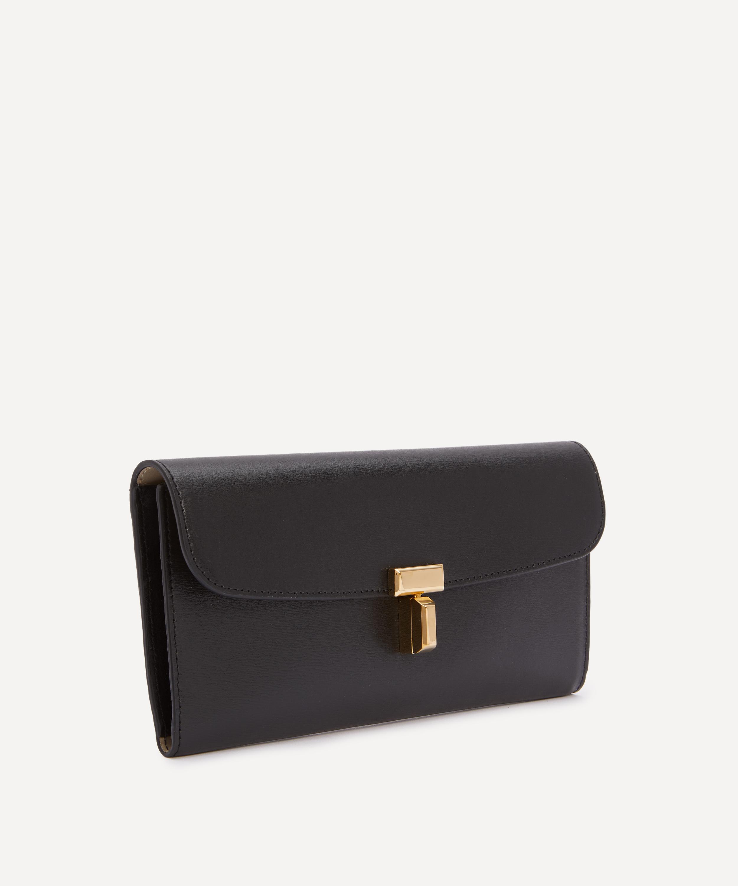 Crafted in Spain from smooth leather finished with a top-stitched trim, this sleek wallet features a fold-over flap secured with a gold-tone twist lock, and is complete with three internal compartments and six card slots to keep your cash and cards organised – a signature style that effortlessly reflects the brand’s elegant, minimalist aesthetic.