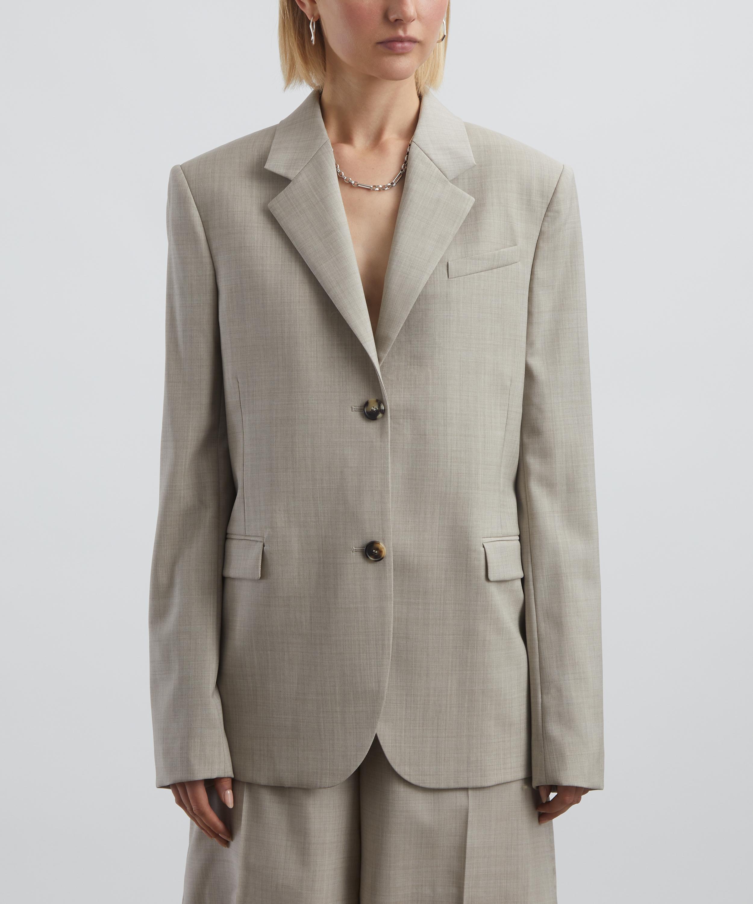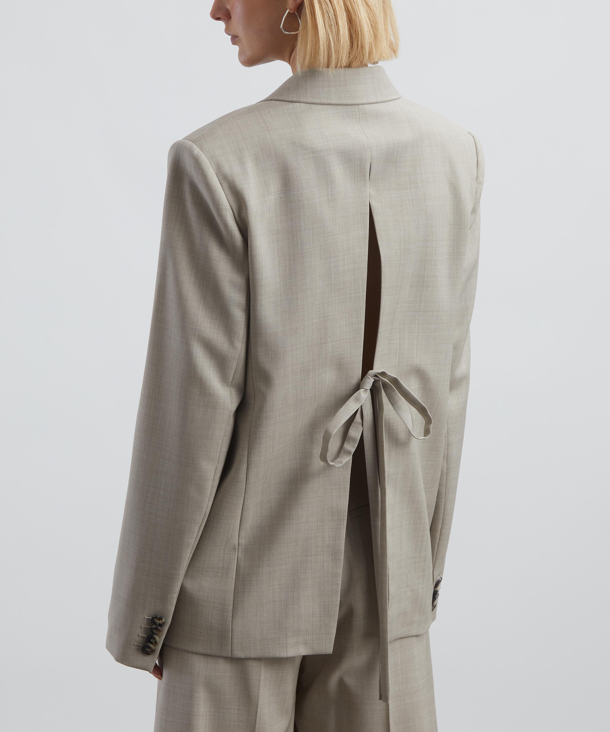 Crafted from lightweight melange wool, this blazer puts a modern twist on classic tailoring with its open, split back. Boasting a single-breasted design with structured shoulders, it’s secured with a two-button front closure and features notch lapels, buttoned cuffs, as well as multiple interior and exterior welt pockets.