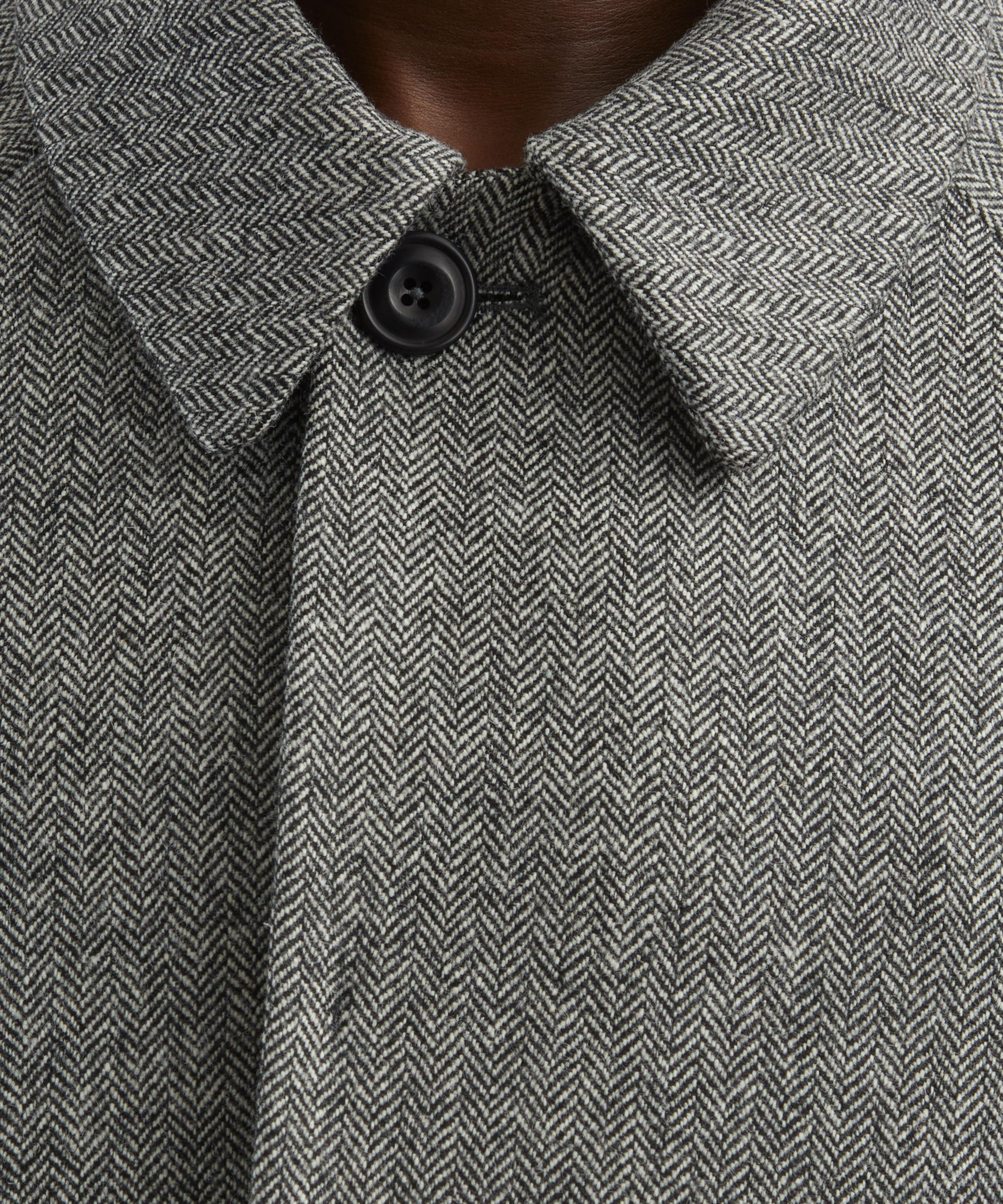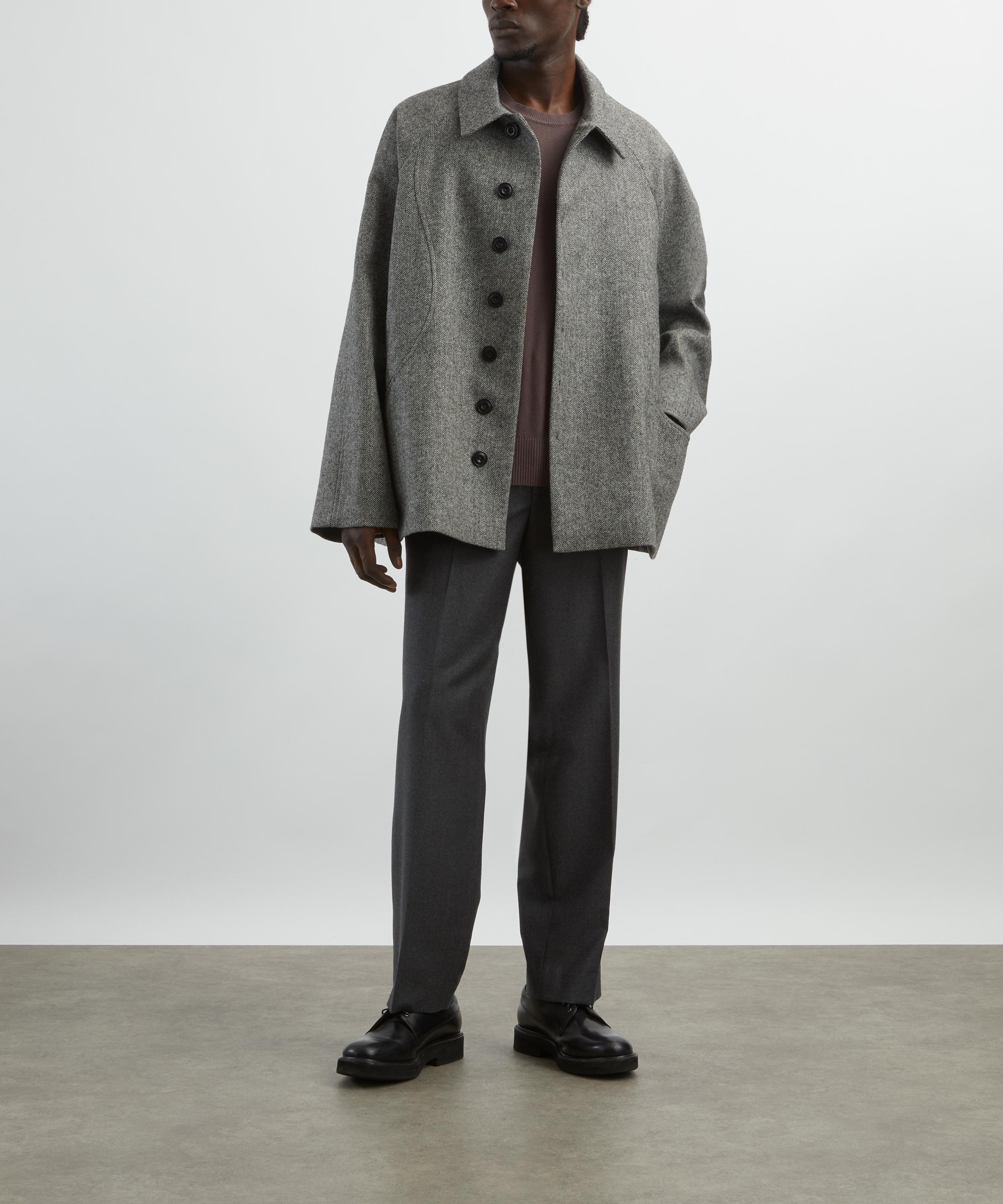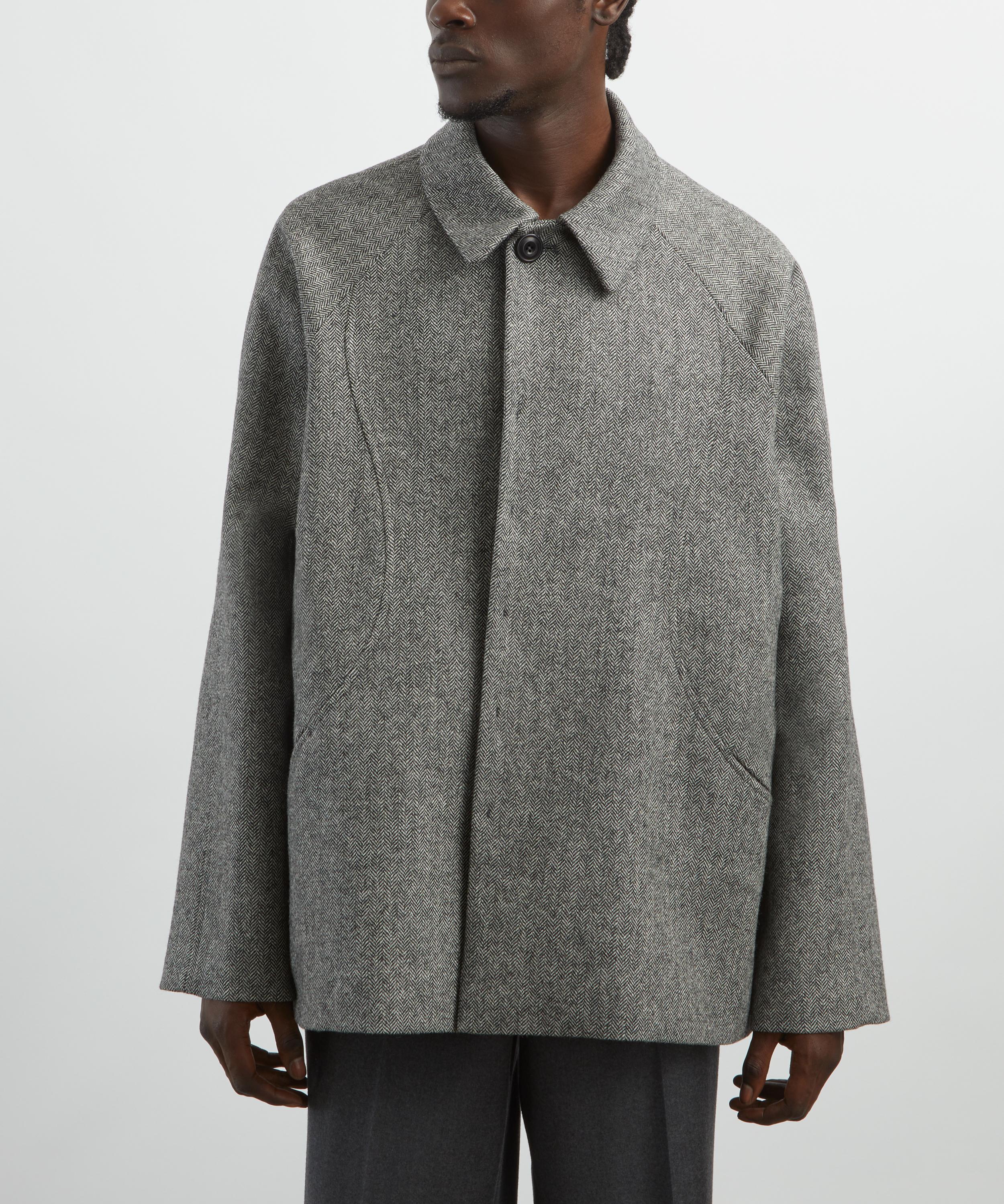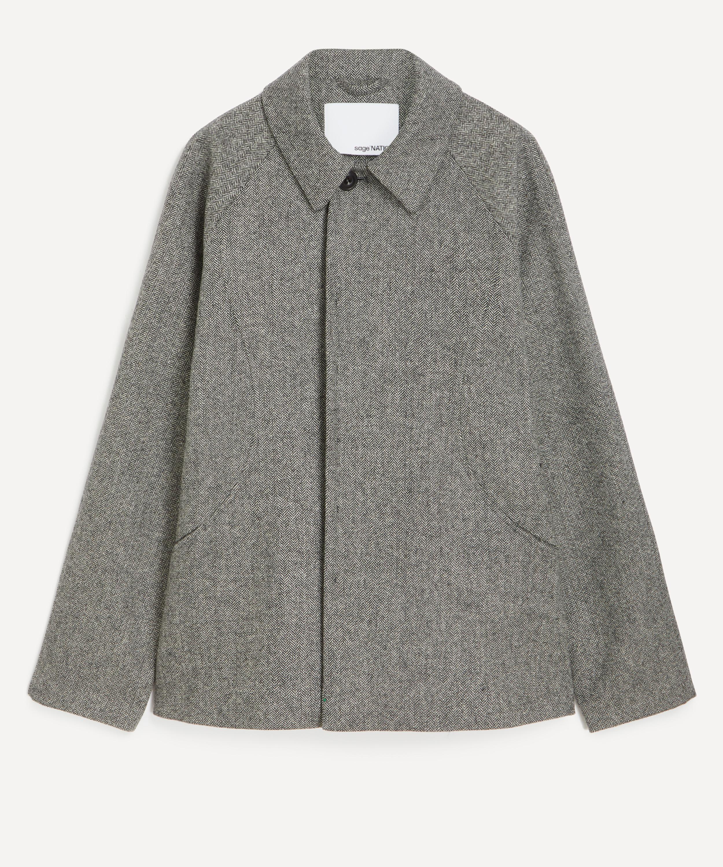 Made in England from Melton wool, this short jacket is cut for a relaxed fit with curved panelling and raglan sleeves that enhances its sculpted silhouette. Secured with a concealed button fastening, a detachable collar tab adds a smart, tailored touch.