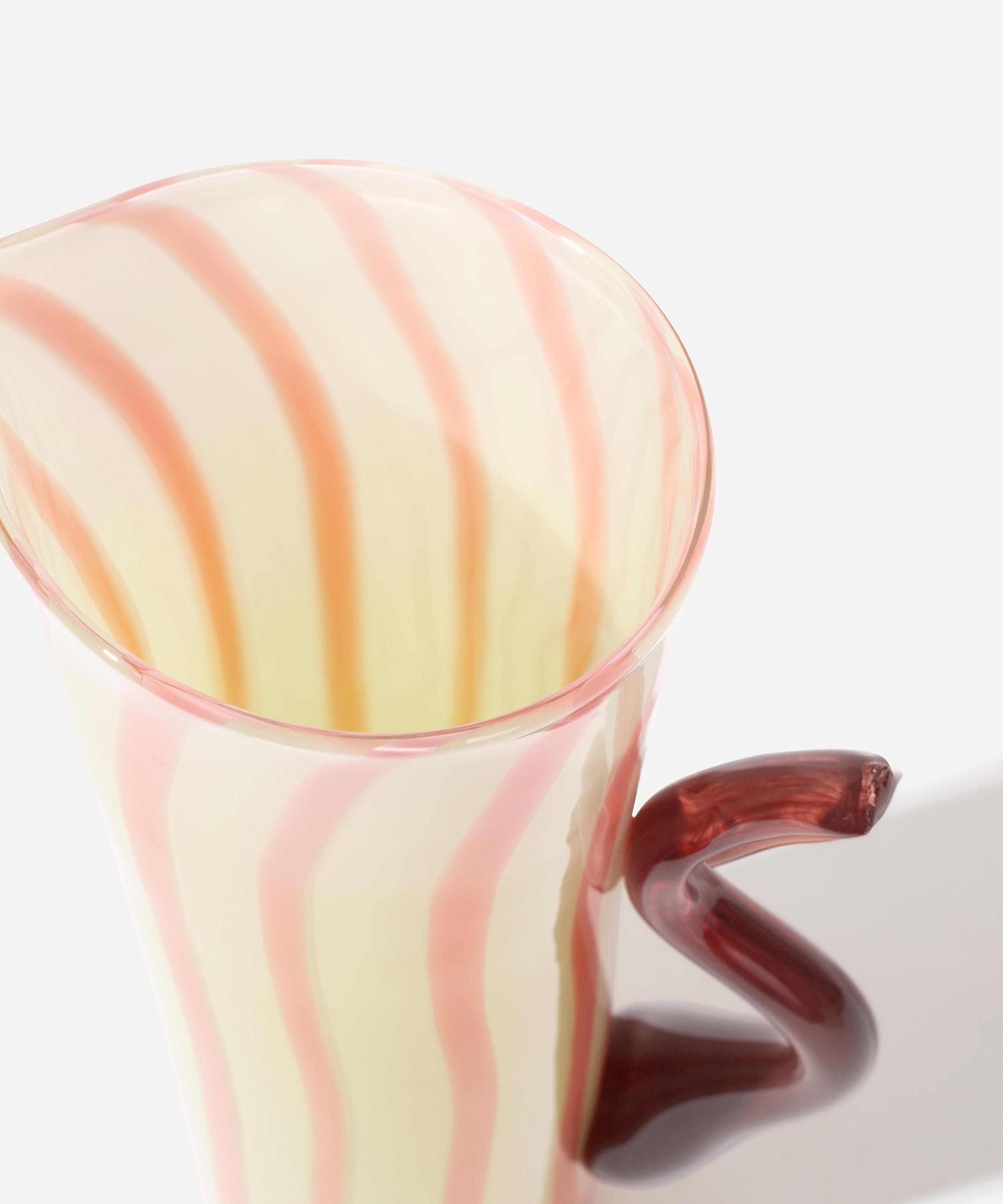 Handmade in the UK by skilled artisans, this elegant jug has been crafted using traditional Murano techniques, brought to life by colourful candy stripes - use it to serve a beverage of your choice to visiting guests, or fill with bright blooms to create an eye-catching centre piece.