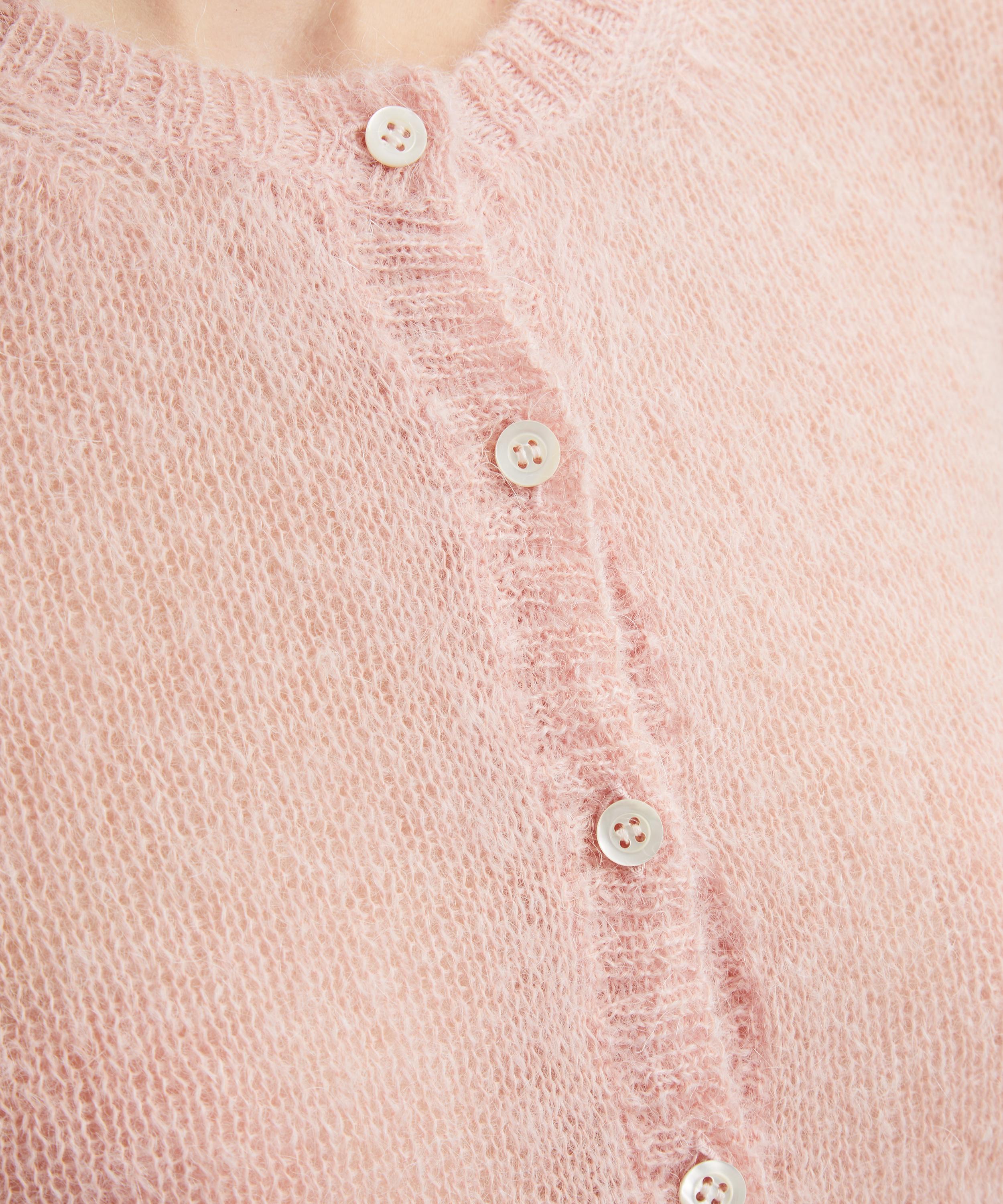 Crafted from an ultra-soft brushed mohair blend, this charming cardigan adds instant polish to any look. Featuring a button-up placket and ribbed trims, its feminine detailing pairs perfectly with tailored trousers and ballet flats.