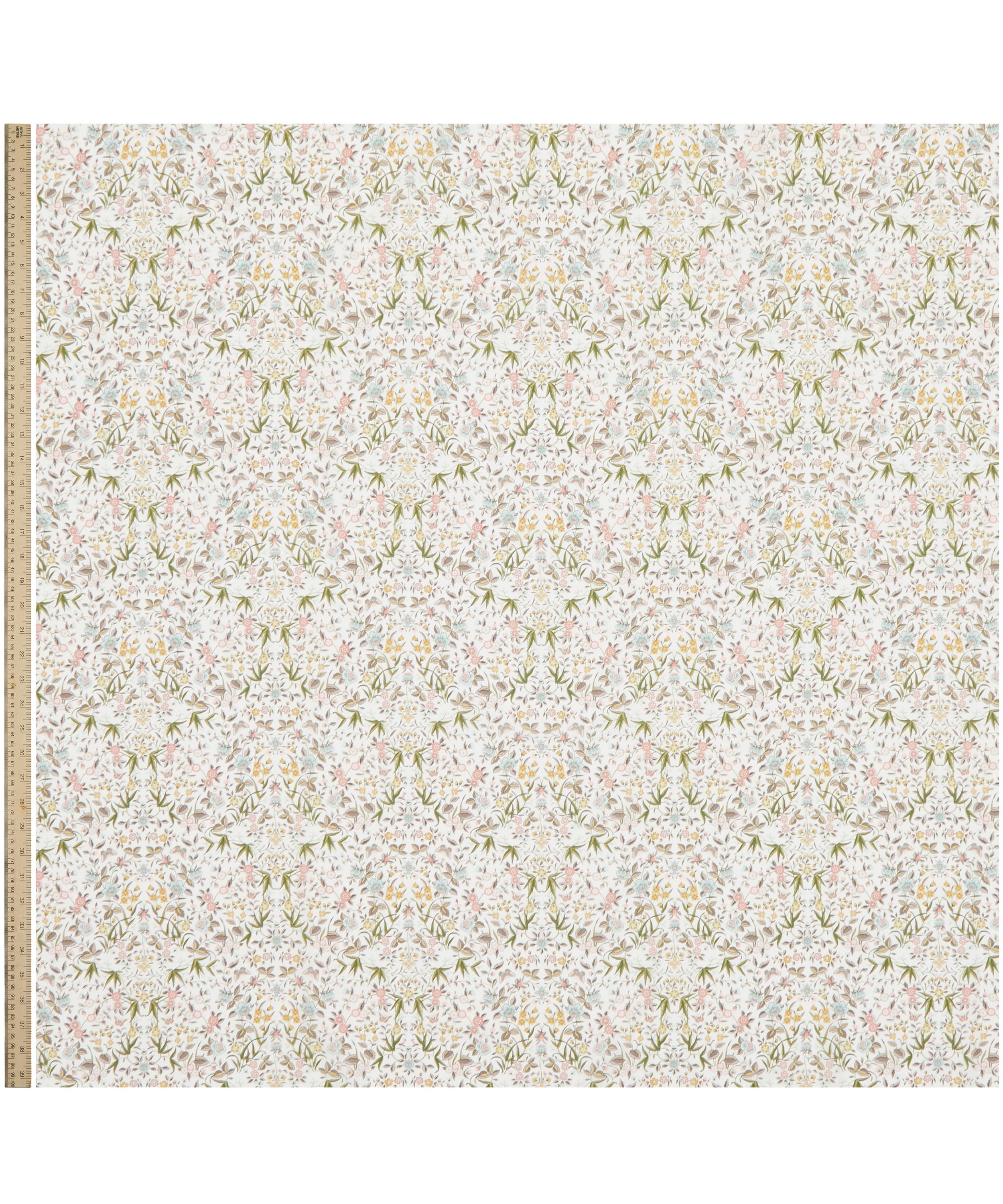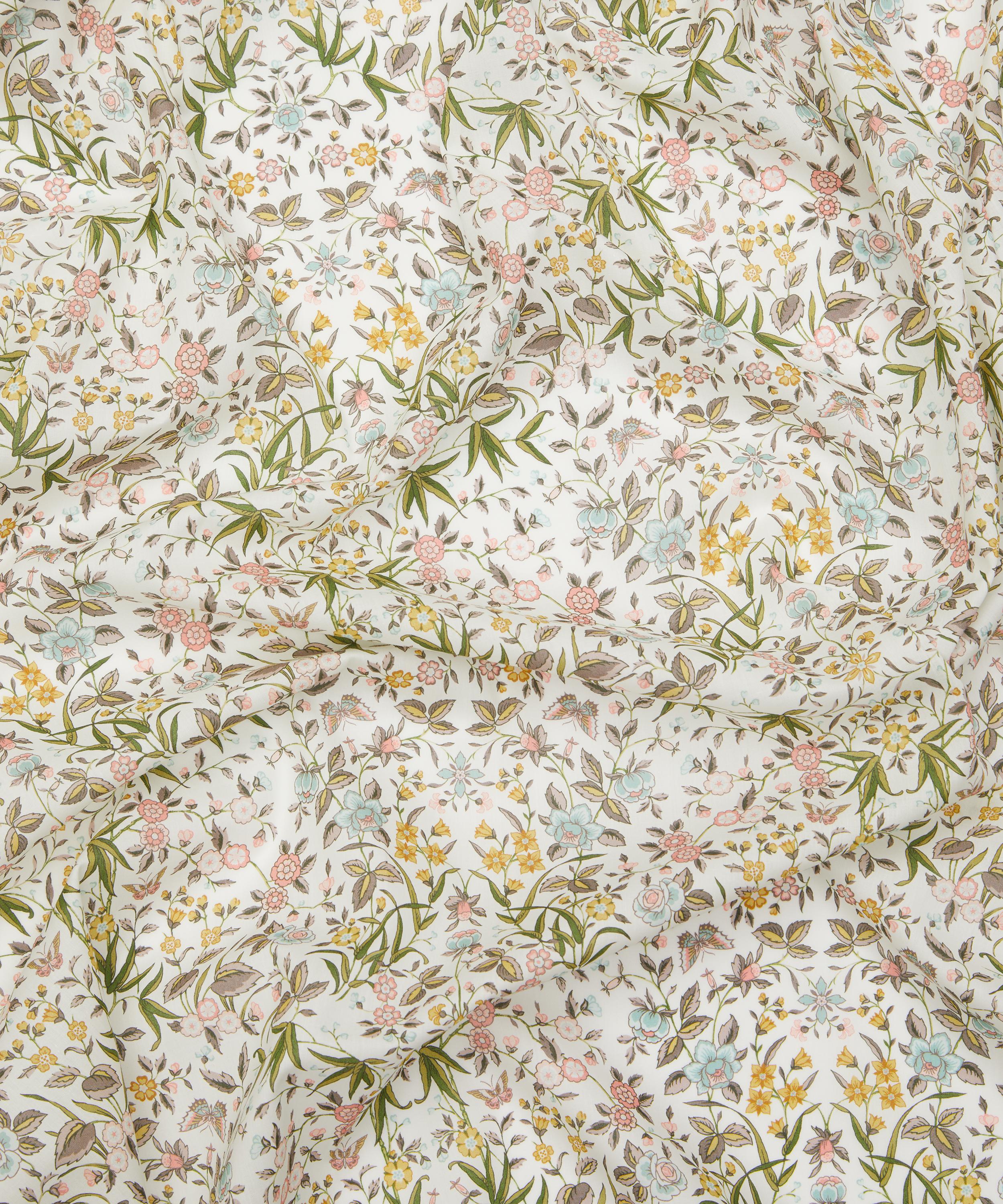 Inspired by an artwork from the Liberty archive, this botanical print features trails of beautifully illustrated flowers, complemented by elegant leaves and colourfully camouflaged butterflies.