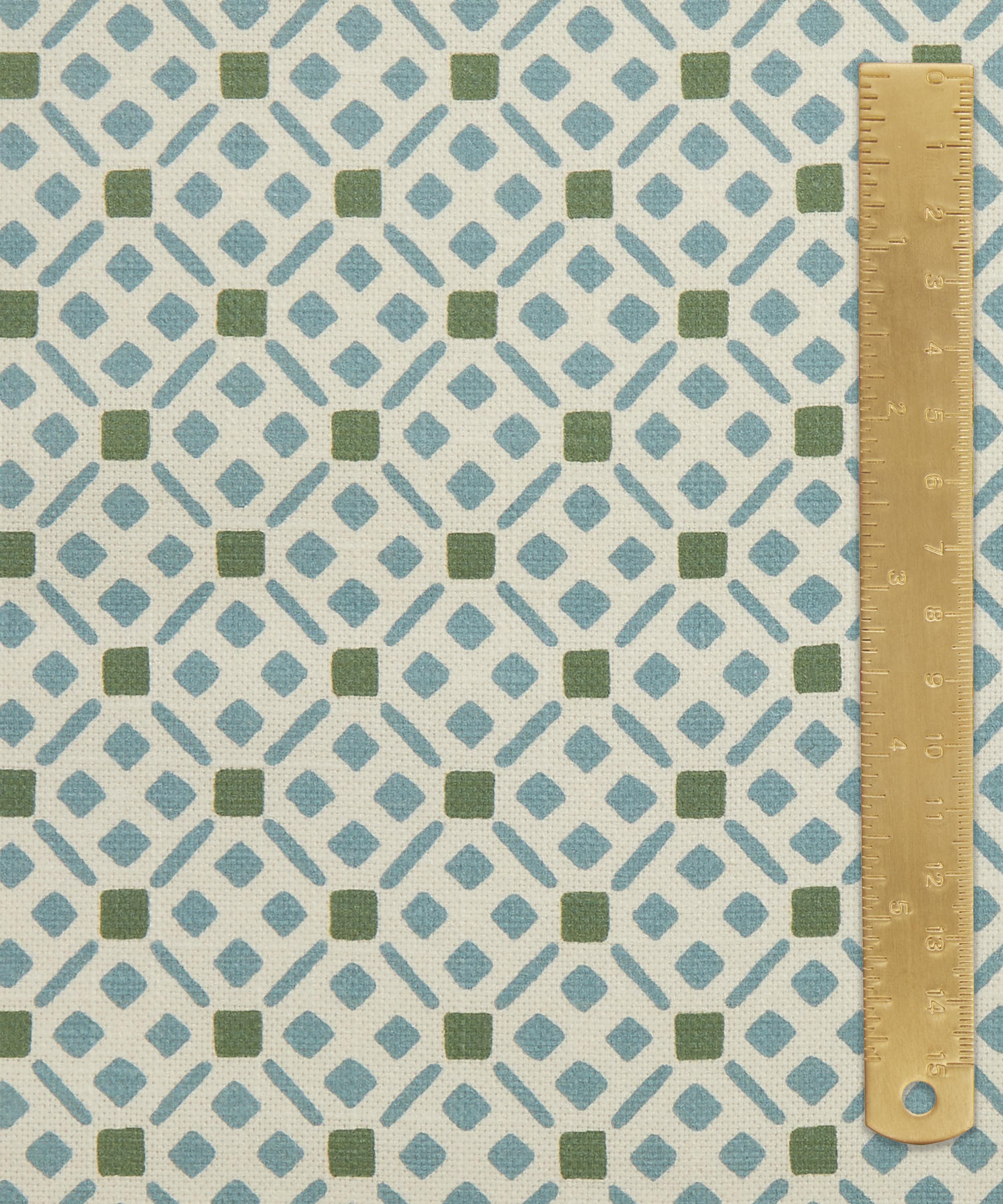 Tapestry Trellis’ diagonal check is brought to life in an all-over repeat, evoking the charm of graphic tile patterns. Printed in Italy onto pure cotton, this base is a breath of fresh air for curtains, cushions and heavy upholstery.