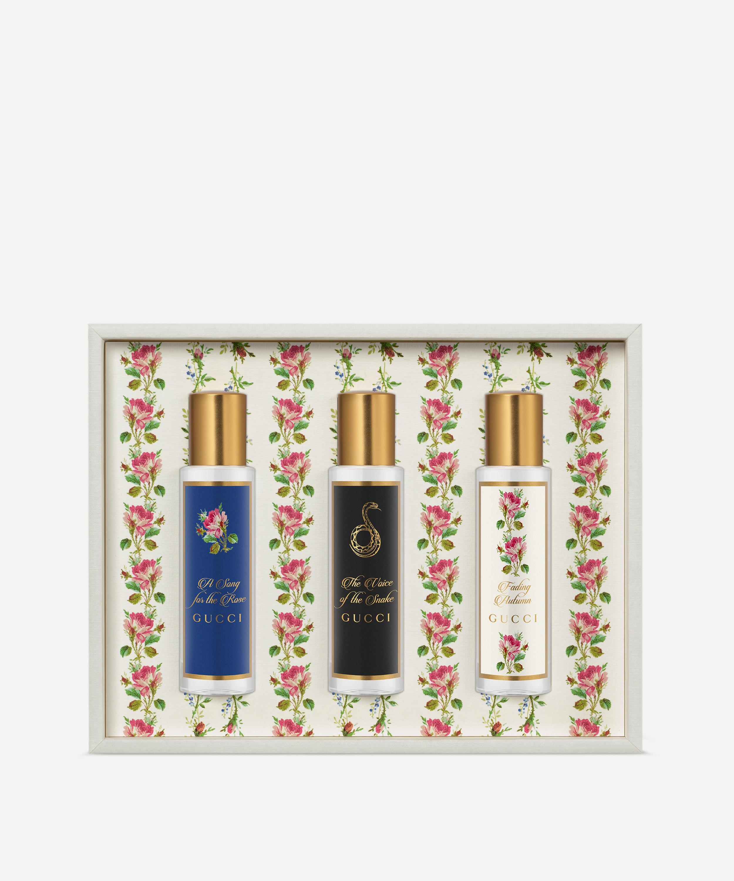 Discover the mesmerising scents of nature from Gucci's haute perfumery line The Alchemist’s Garden with this mini discovery set, showcasing a duo of eau de parfums and an eau de toilette.