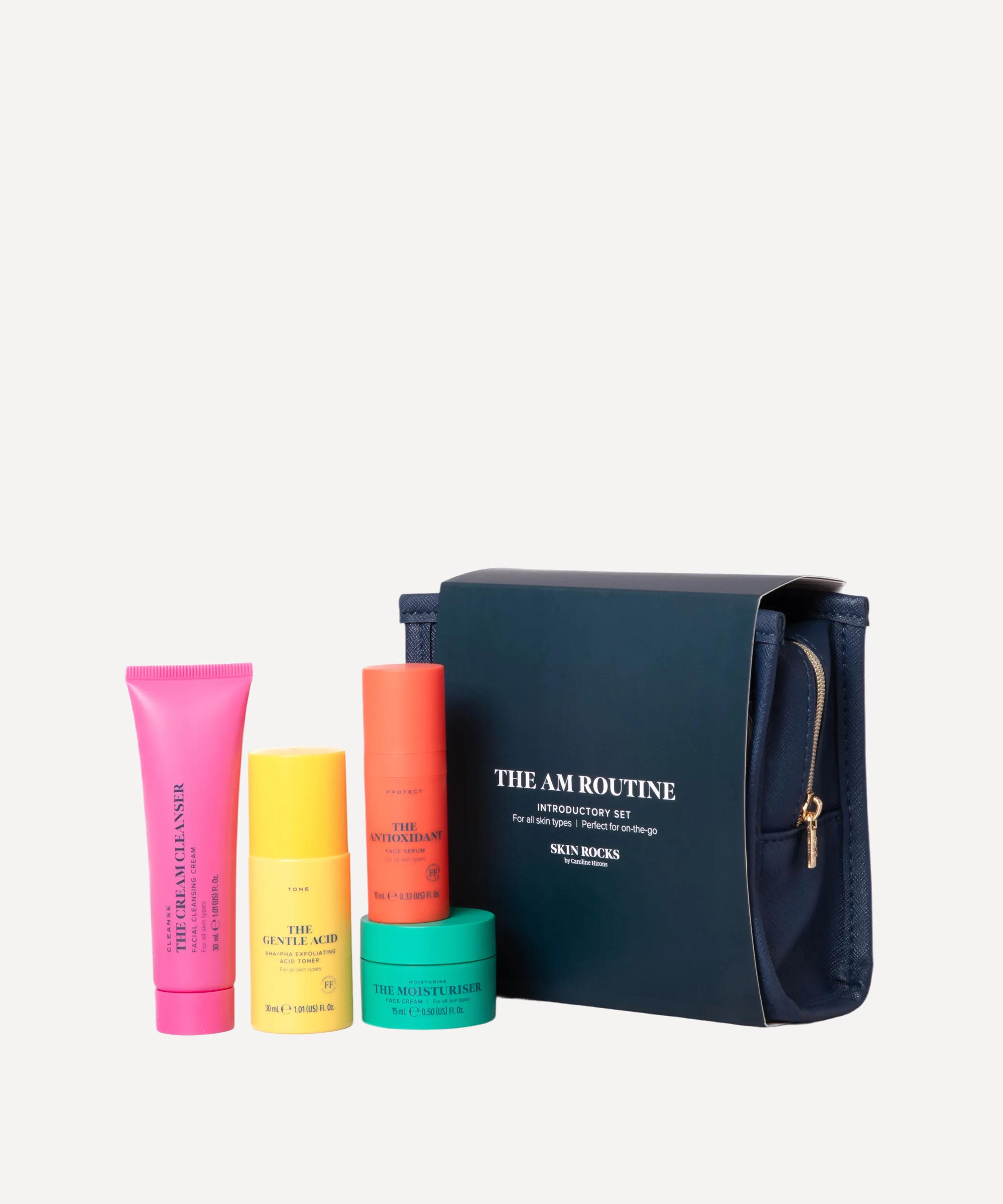 Skin Rocks presents The AM Set, a daily skincare set comprised of mini daily-use formulas that help restore an energised, supple complexion.