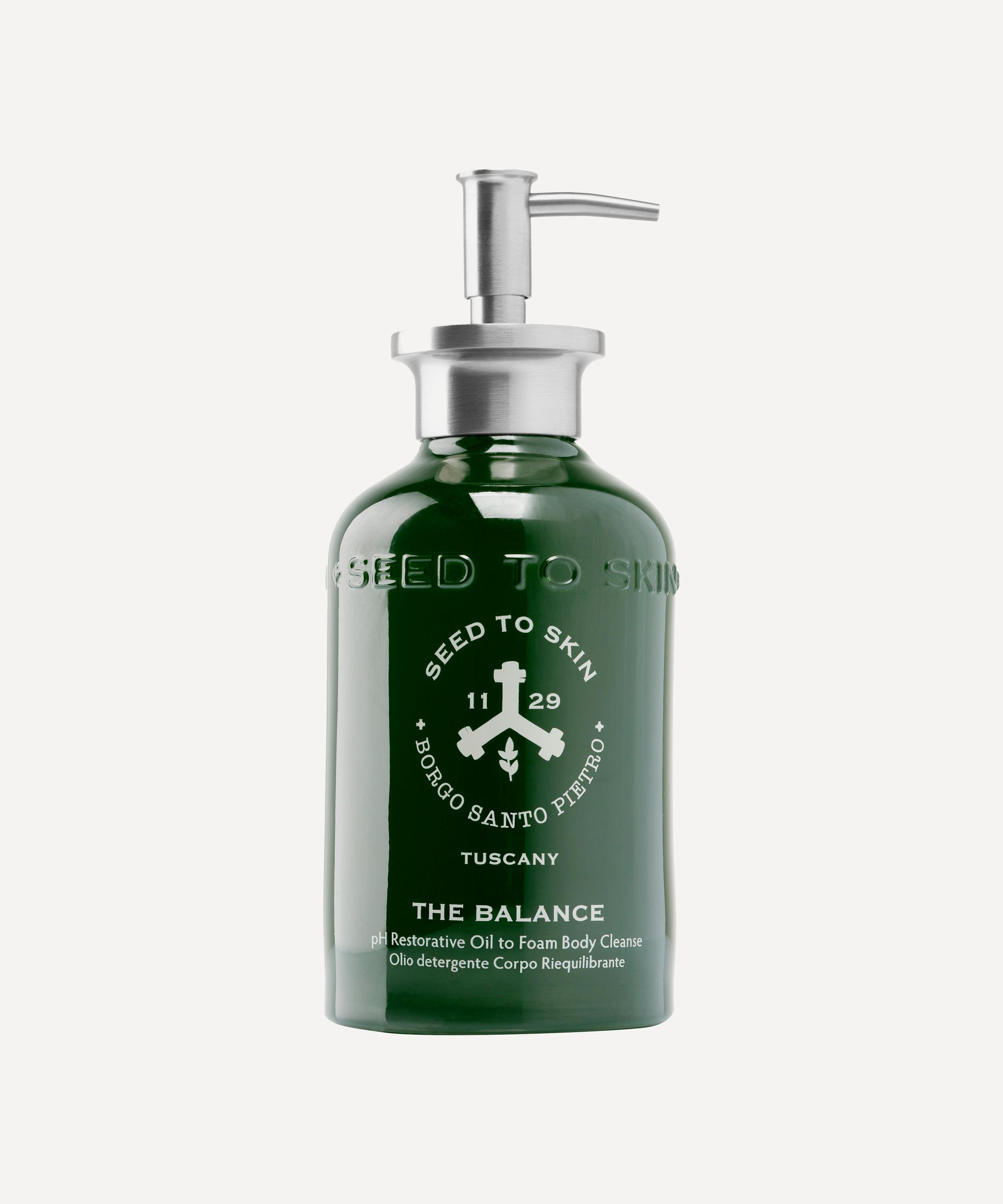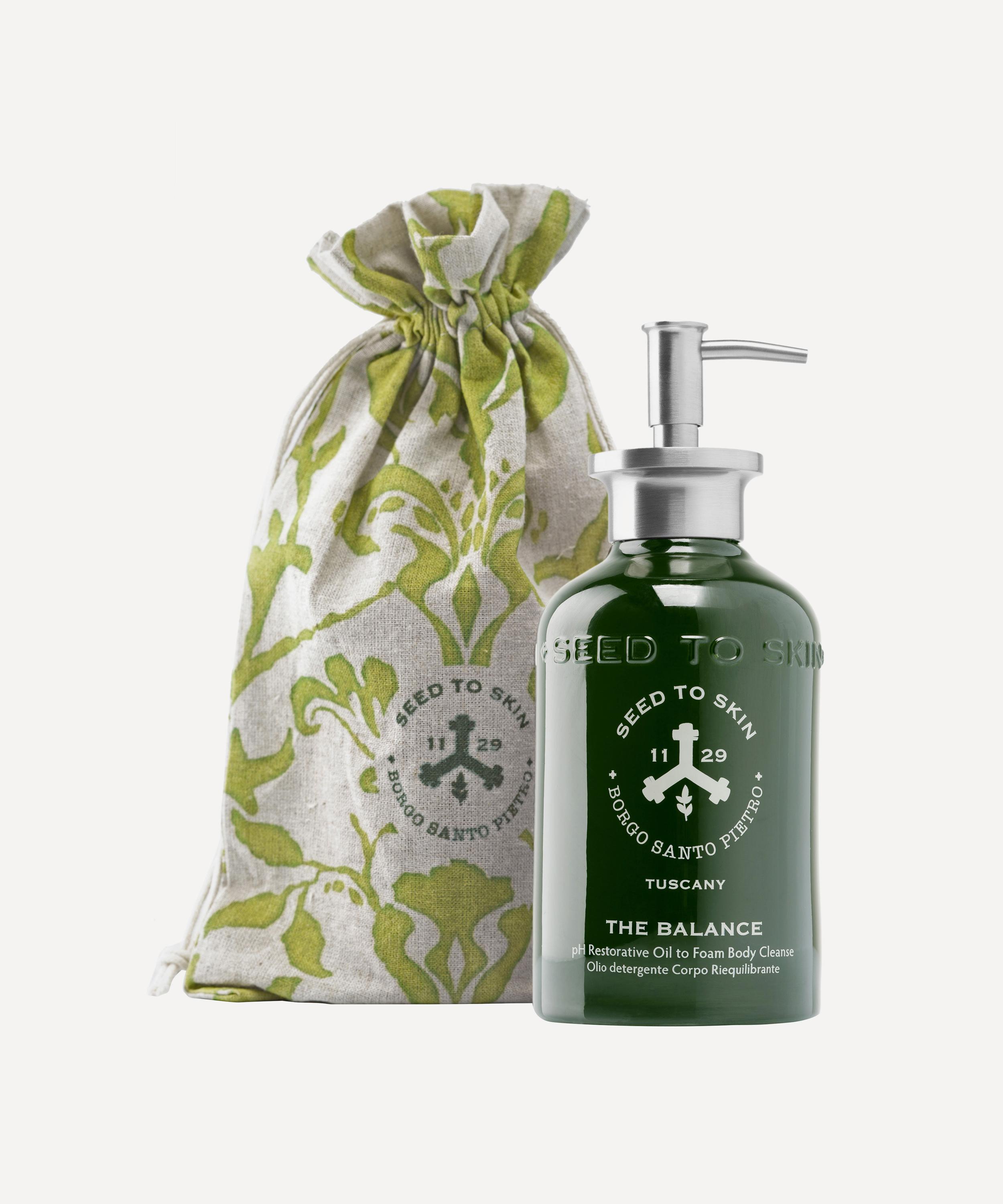 The Balance restorative shower oil from SEED TO SKIN – the skincare line born of the Tuscan landscape, where every product is pioneered at the onsite laboratory at Borgo Santo Pietro, a restored 13th century villa come five-star boutique retreat, farm and culinary school.