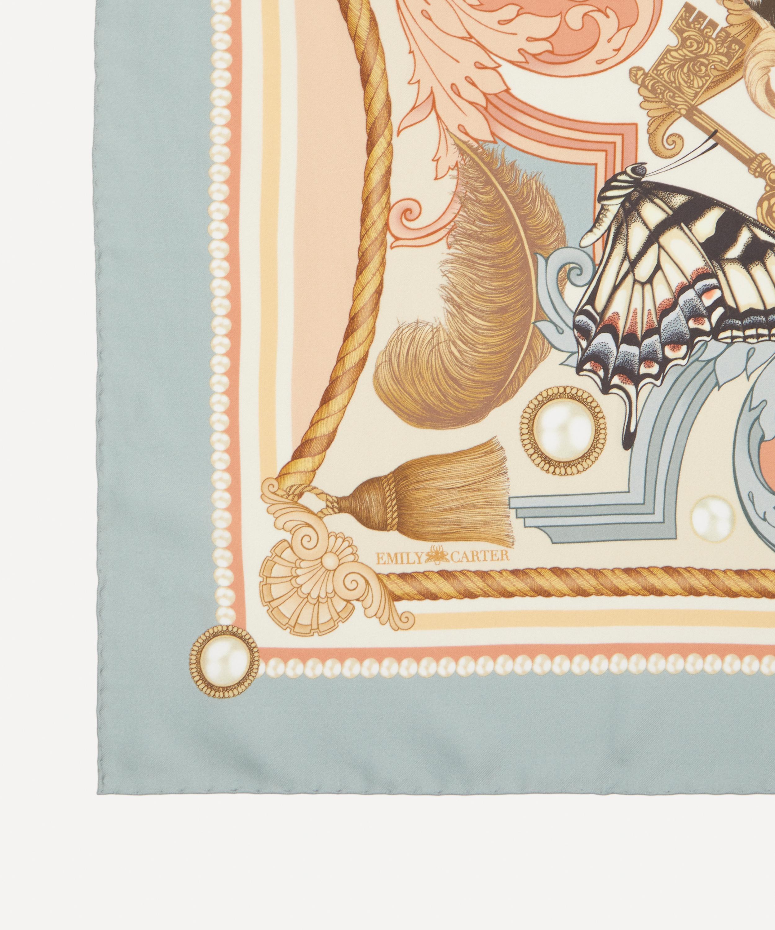 The Baroque Butterfly scarf is made from high-quality silk twill and printed with an original illustration by award-winning London-based designer Emily Carter.