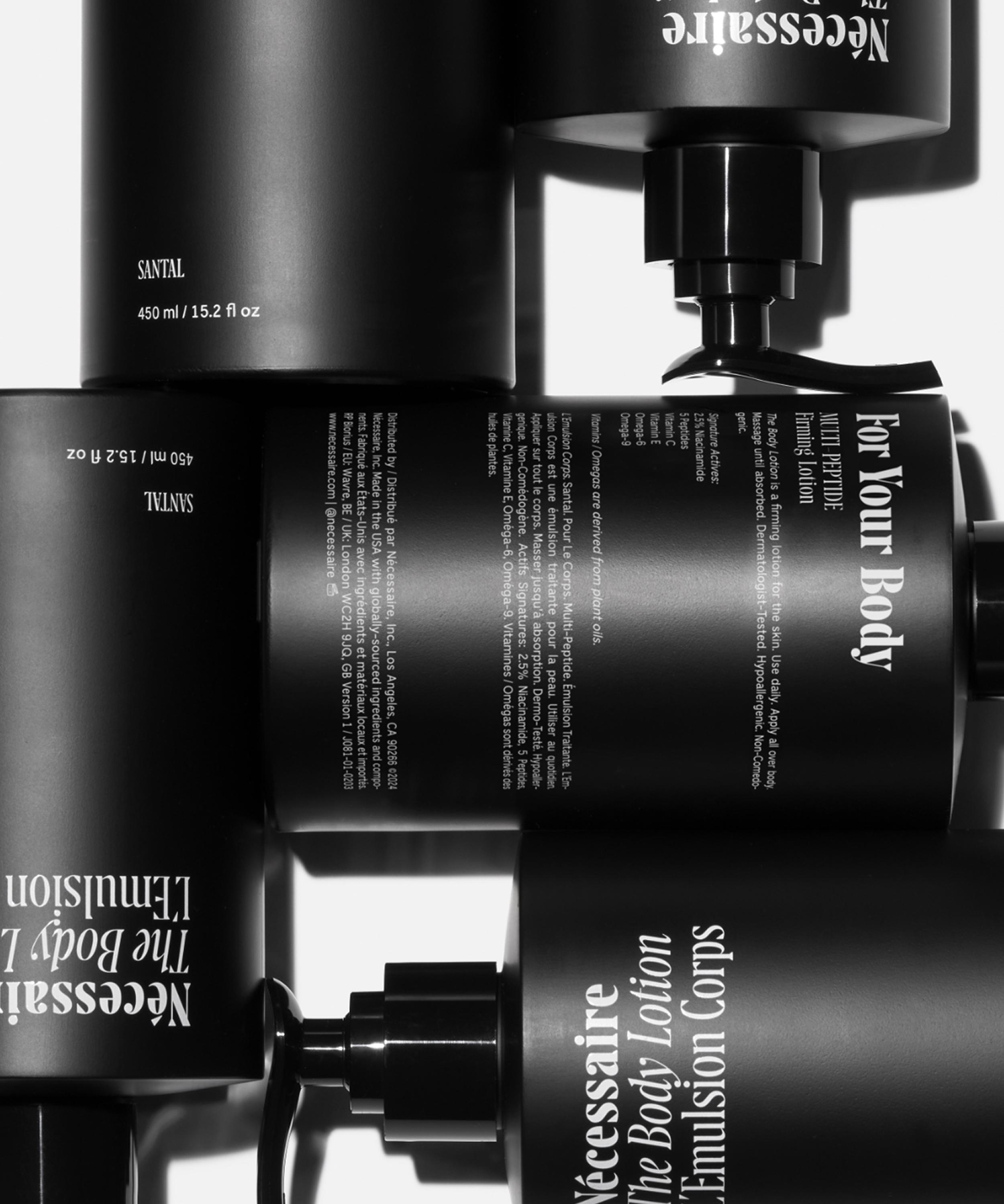Transform your daily routine with The Body Lotion Multi-Peptide Santal from Nécessaire, a deeply moisturising formula designed to firm skin and target dryness.