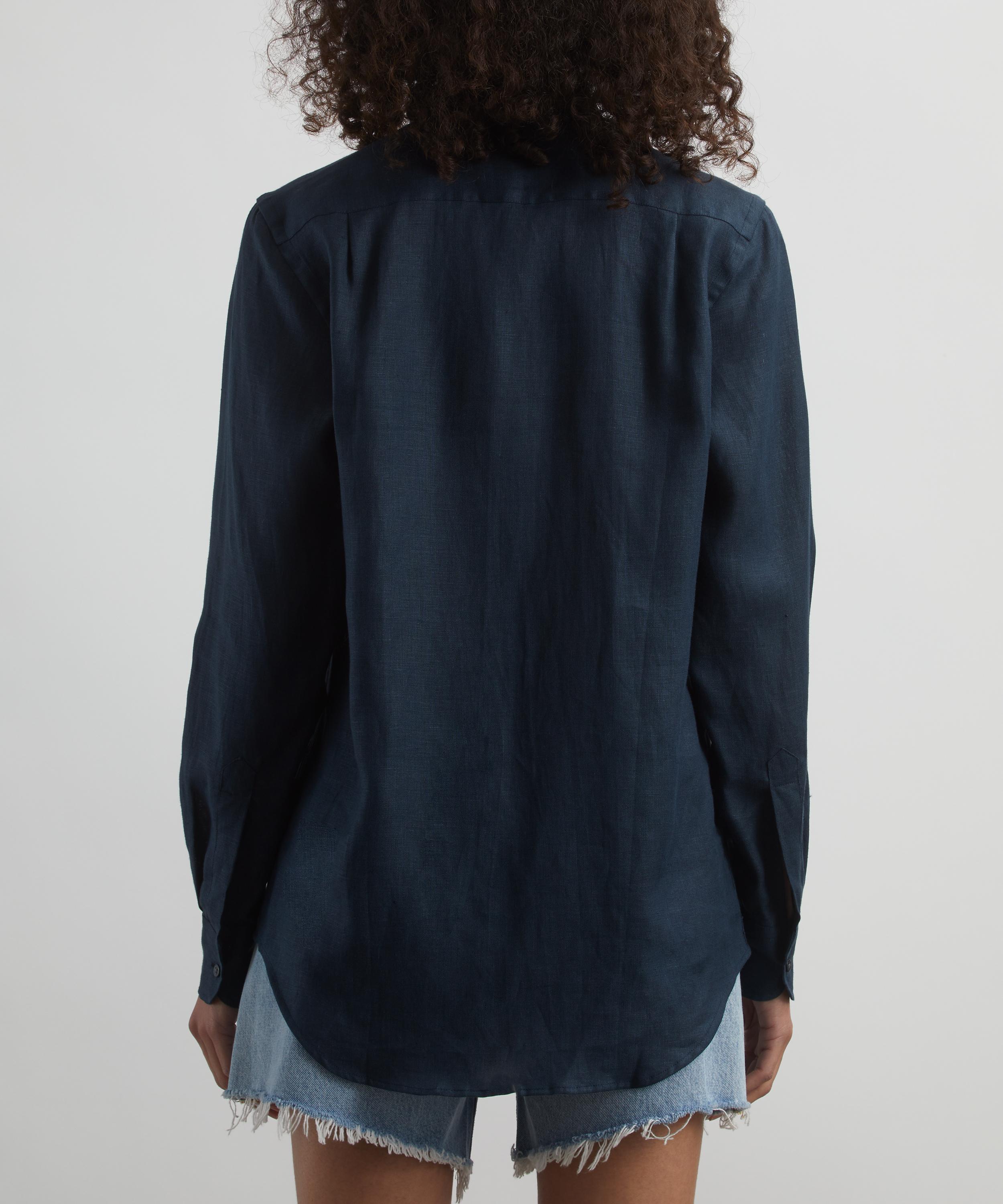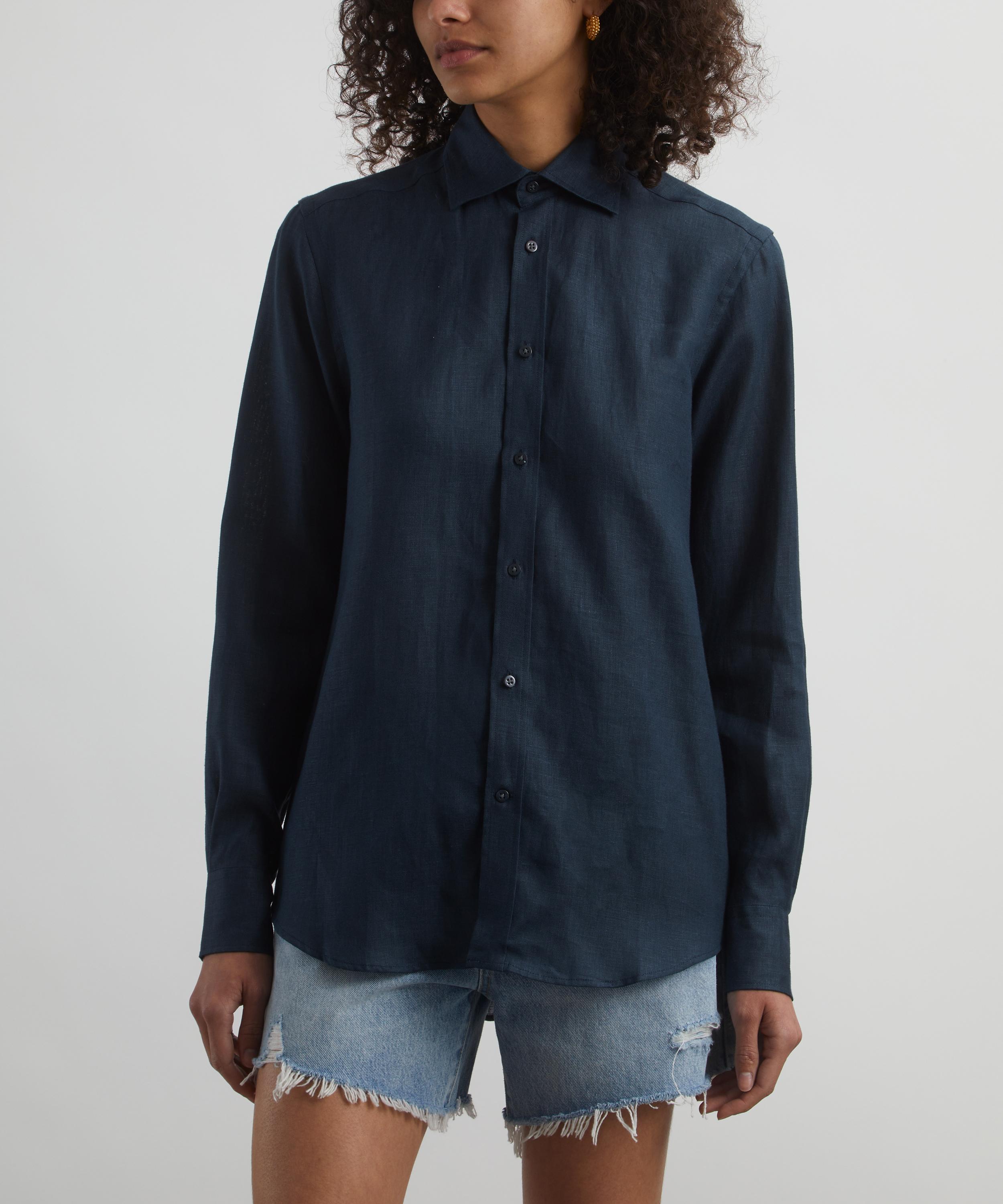Inspired by British heritage and timeless style, this long-sleeve shirt has been cut from a luxuriously soft and breathable linen to a relaxed fit, featuring slightly dropped shoulders, two pleats across the yoke, and a front button fastening.