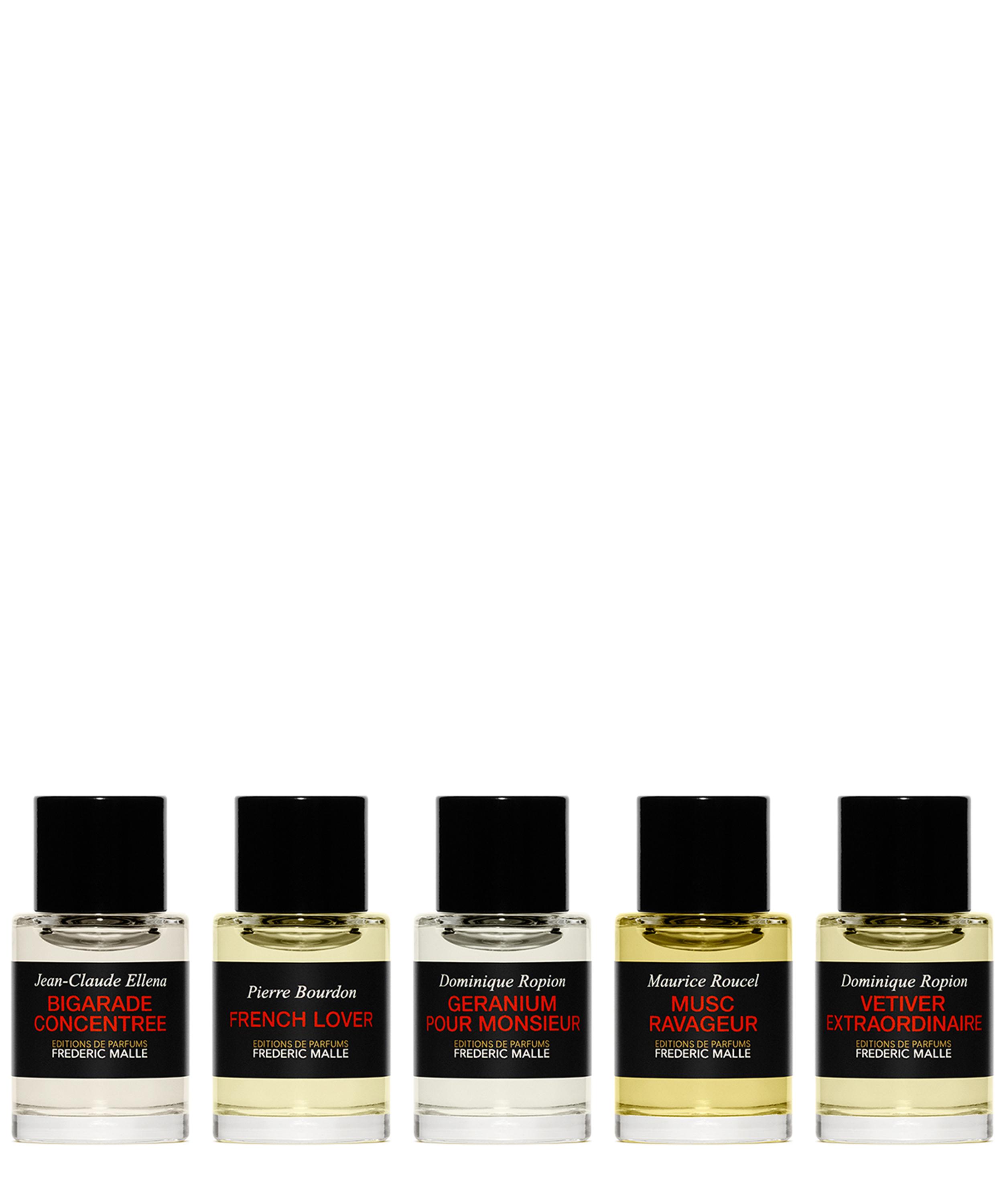 The Essential Collection is a curated edit of Frédéric Malle's finest masculine fragrances, named the crowning jewels of the perfumer's world-renowned fragrance library. This selection of five miniature perfumes is housed in a signature presentation box.
