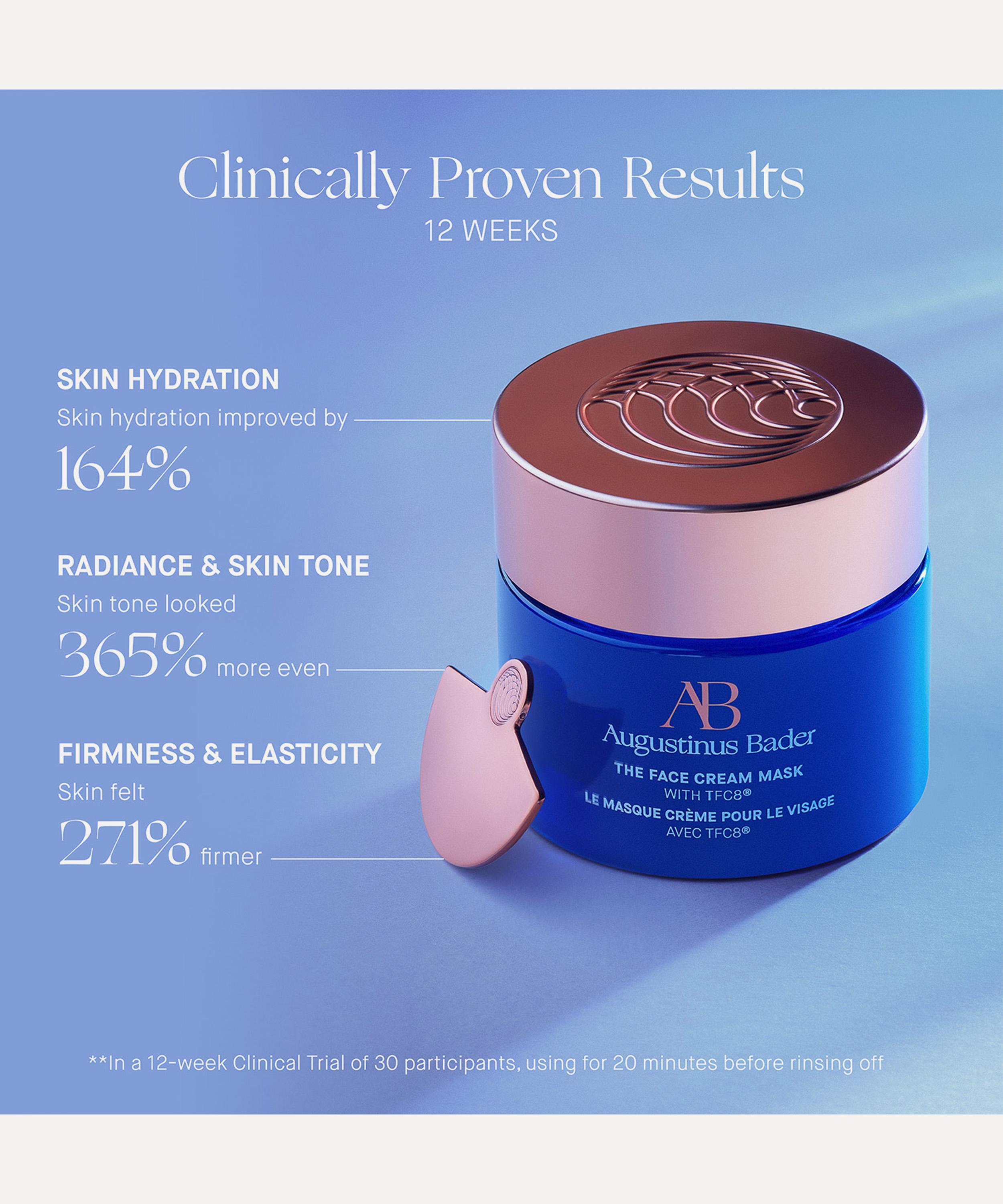 Formulated with high-potency botanicals, The Face Cream Mask from Augustinus Bader infuses skin with rich hydration to boost elasticity, firm and brighten.