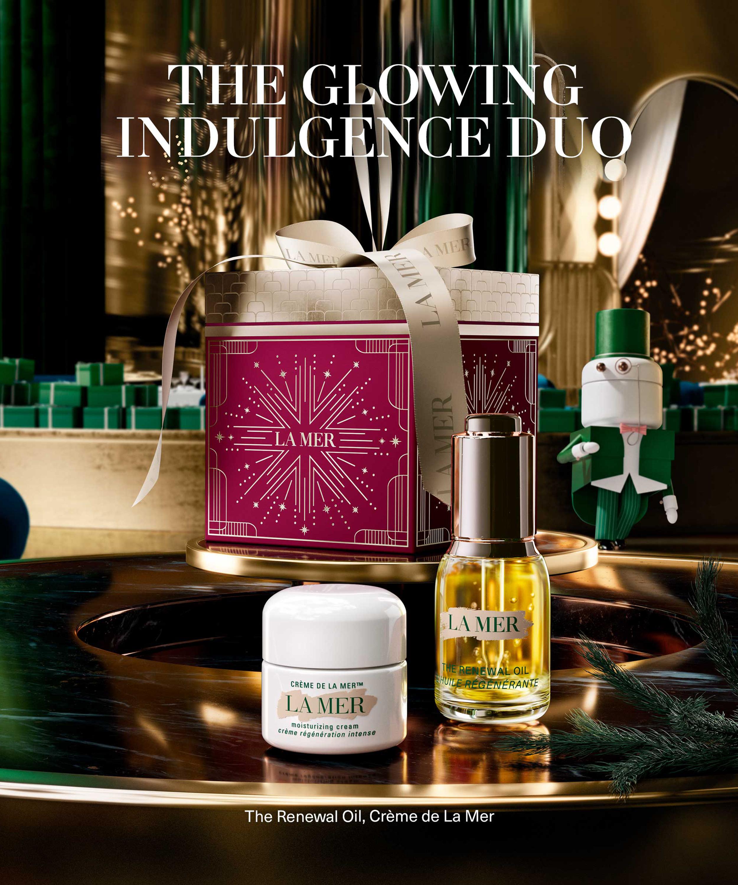 • The Glowing Indulgence Collection includes: Crème de la Mer 15ml and The Renewal Oil 15ml