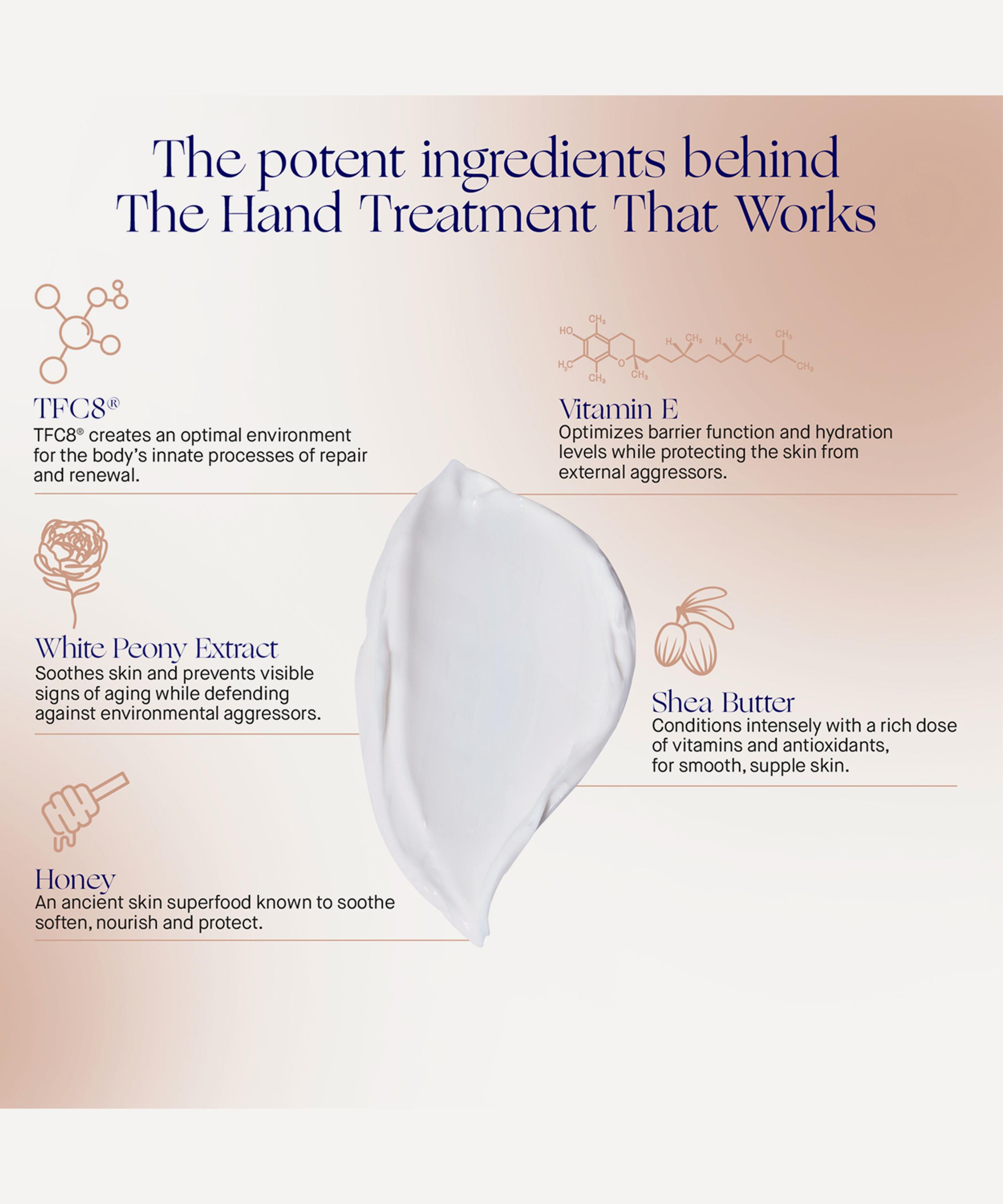 Inspired by Professor Bader's cult face cream, this sumptuous yet fast-absorbing formula brings cutting-edge science to the masses with the brand's signature TFC8® technology - a high-performance complex of amino acids, vitamins and synthesised molecules naturally found in skin. This - alongside an active botanical blend of white peony extract, honey, vitamin E, glycerin and shea butter - provides rich hydration whilst supporting elasticity to restore hands to their soft, smooth and supple best.