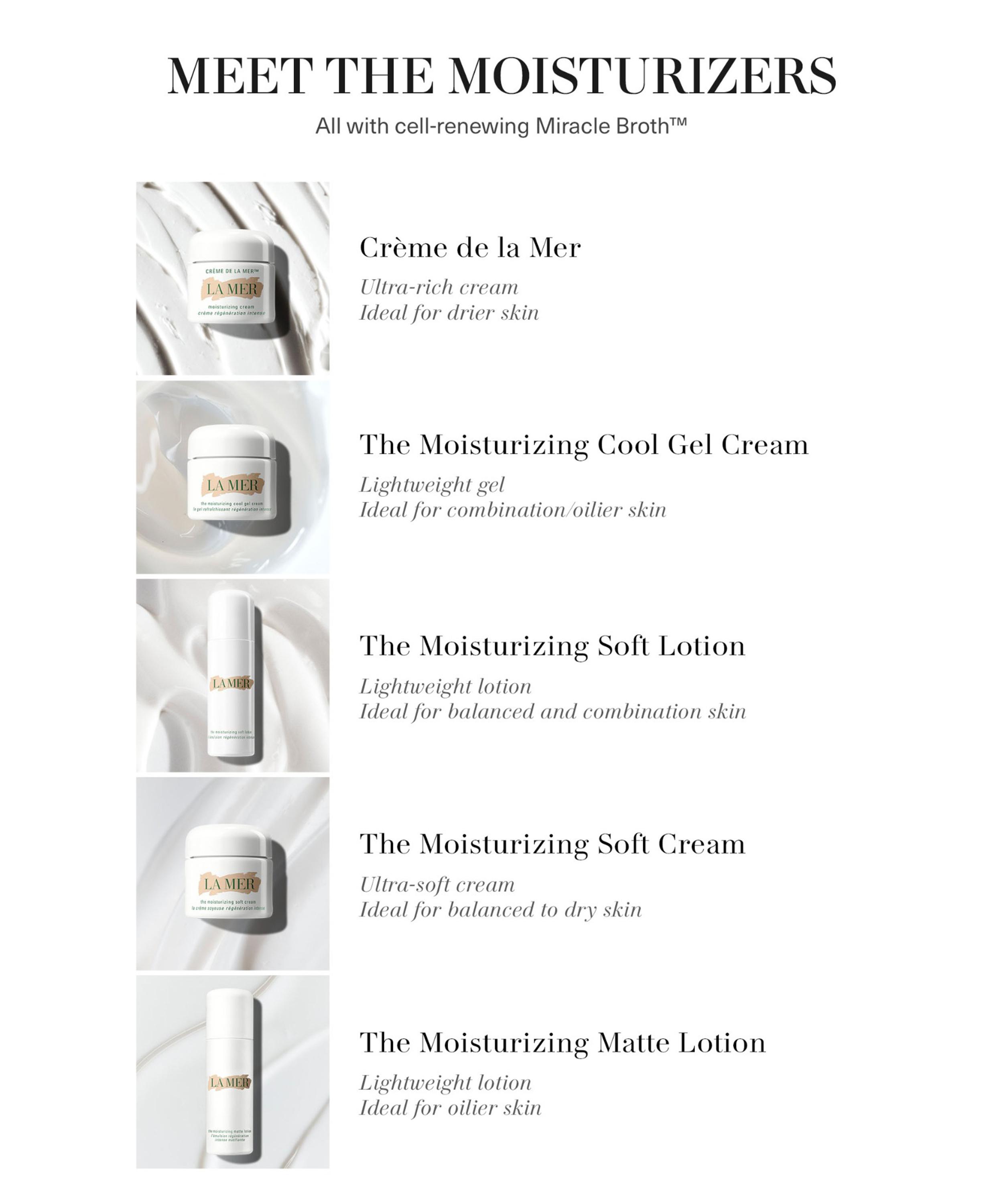 Boasting a refreshing, lightweight formula - ideal for oily and combination oily skin types - The Moisturising Cool Gel Cream from La Mer is a transformative daily moisturiser. Utilising the advanced science of the brand's transformative Miracle Broth™ for a dramatically rejuvenated complexion and comfortable feel, this cooling gel restores skin to its' optimum health, revealing a beautifully refined and radiant look.