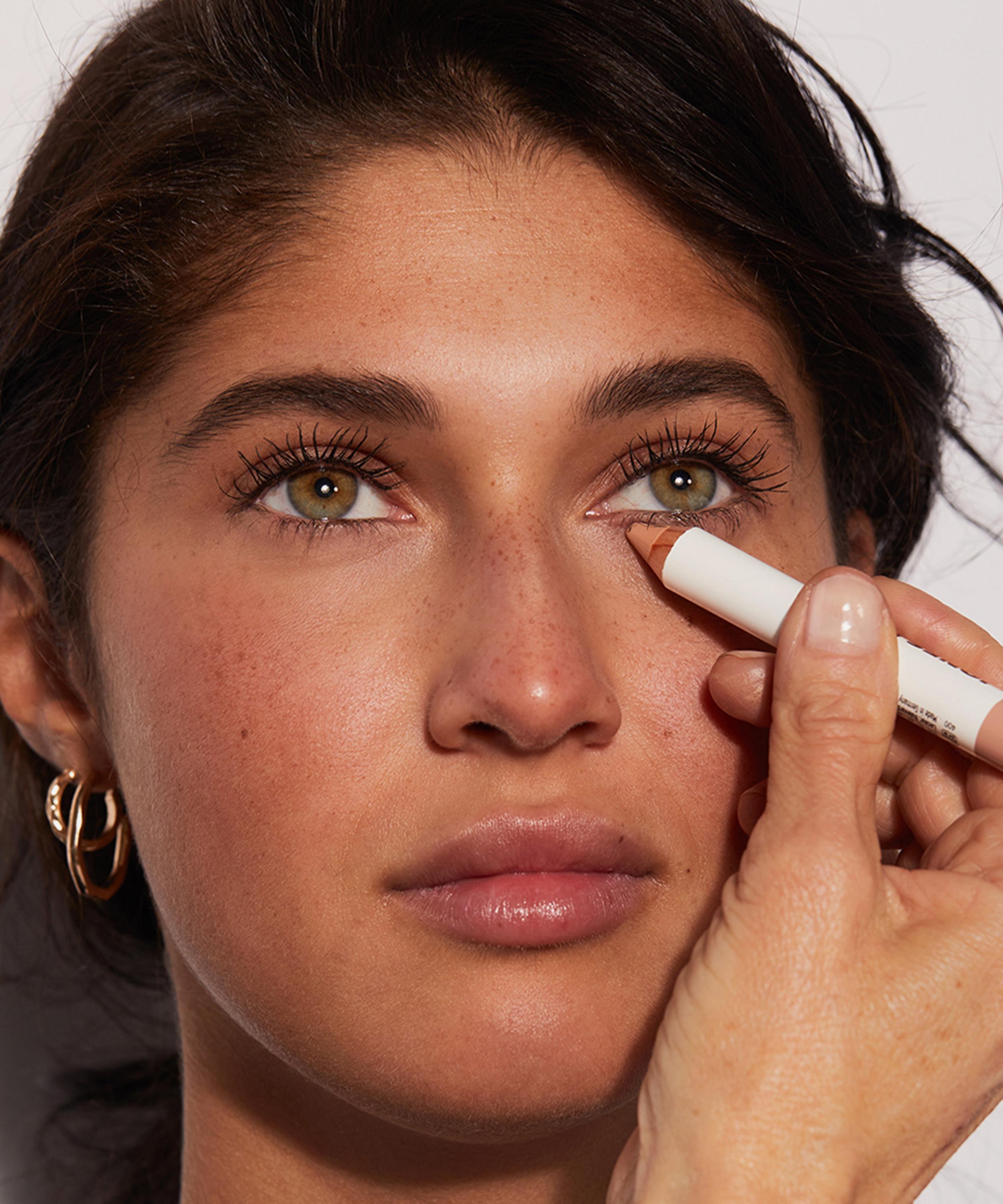 Start by applying a touch of eye cream to prep the under eye area. Allow to fully absorb before applying The Neutralizer Pencil under your eyes, inner eye corner, and anywhere else experiencing darkness. Use a finger to tap the product into skin and cover evenly, avoiding tugging. Once the darkness is concealed, layer The Face Pencil directly over top, again tapping the product into the skin but this time blending into your natural skin tone for a seamless appearance.