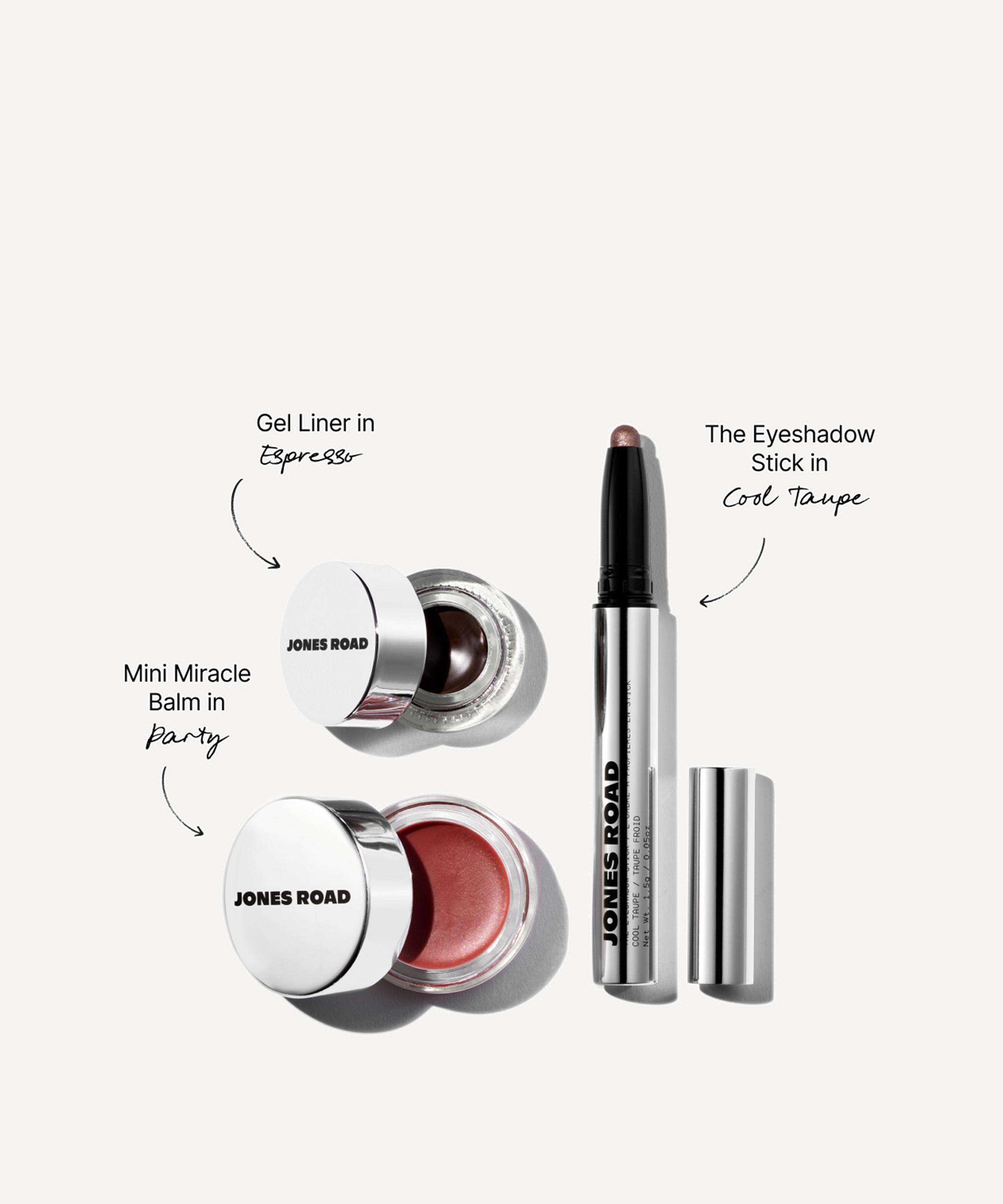 • Includes: The Gel Liner in Espresso, The Eyeshadow Stick in Cool Taupe, and the Mini Miracle Balm in Party