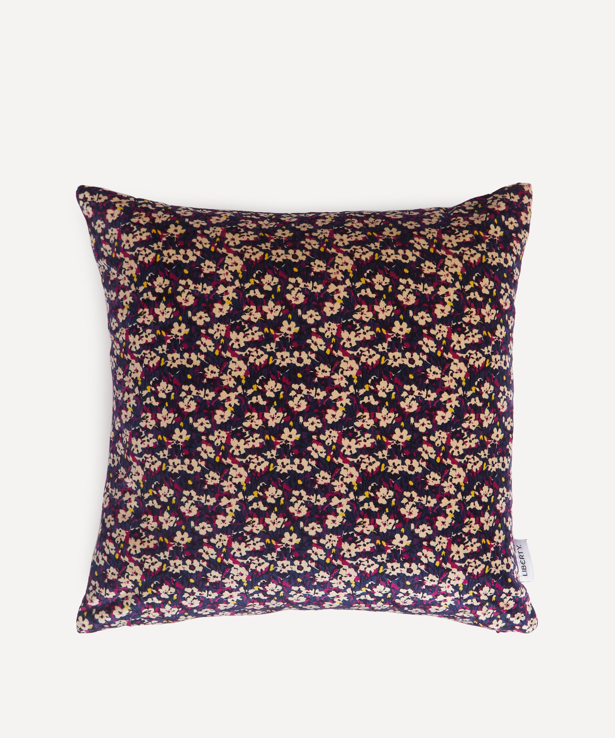 Liberty’s square cushion is a versatile interiors staple, crafted in England and featuring a print from our archives.