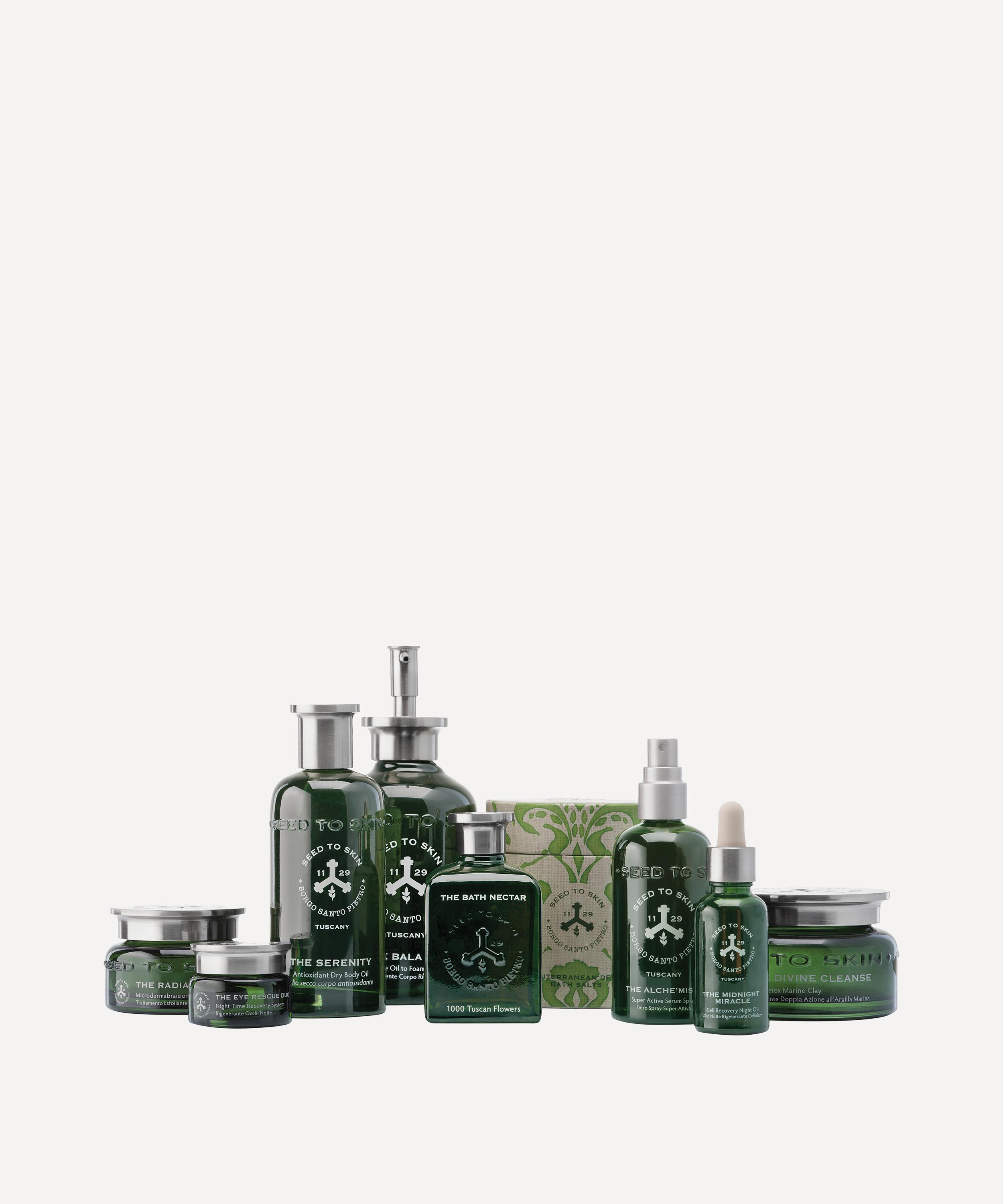 Housed in an opulent green glass bottle, The Radiance is a microdermabrasion exfoliating cream that contains an enzyme complex. Ideal for removing dead skin, diminishing pores and leaving you with a polished complexion, The Radiance contains peppermint oil to stimulate and refresh the skin, alongside lavender to balance the skin and contribute to a restful night’s sleep.