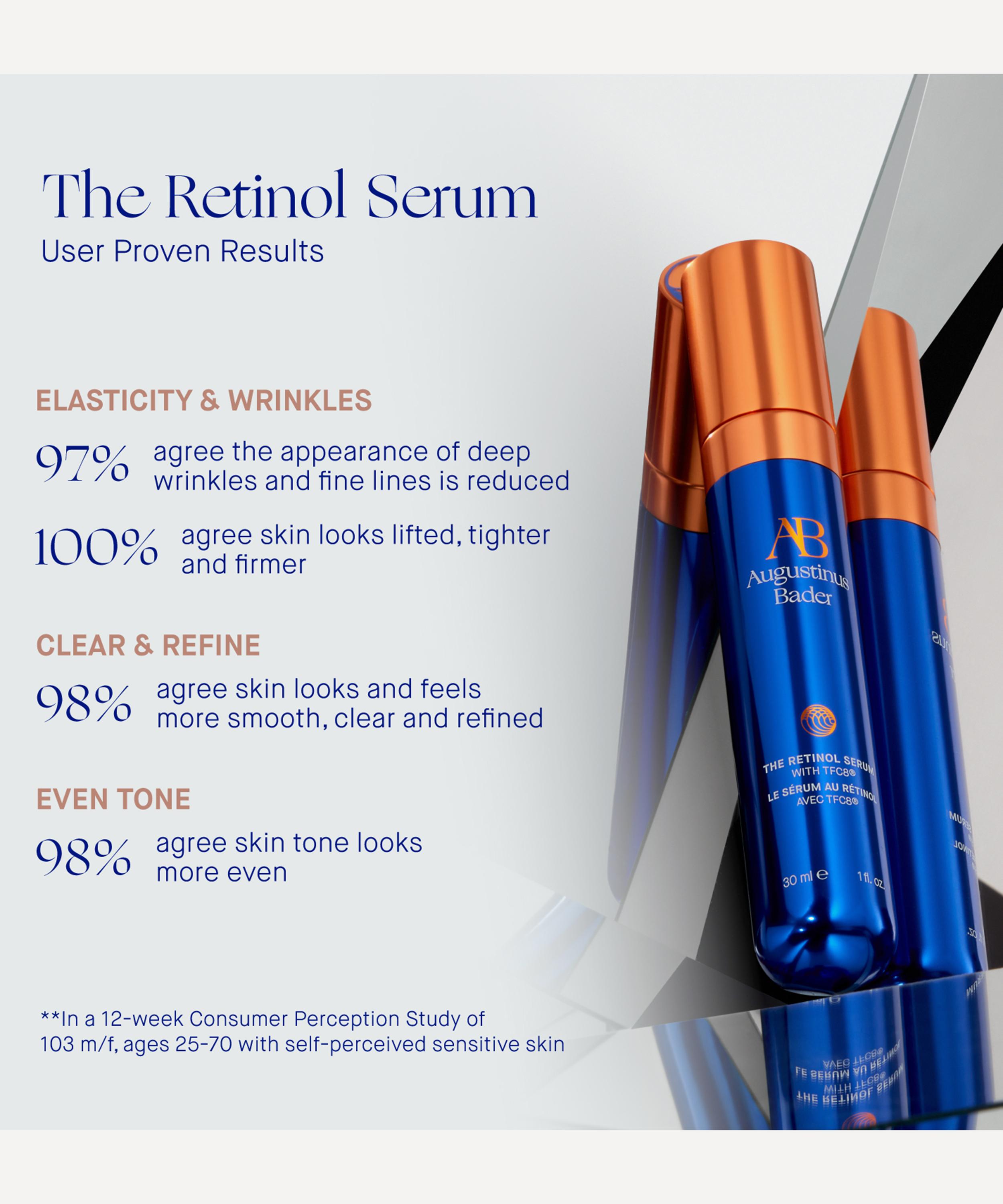 Reveal an irresistibly youthful-glow with The Retinol Serum from Augustinus Bader, a science-backed formula infused with a patented blend of natural amino acids, high-grade vitamins and synthesized molecules.