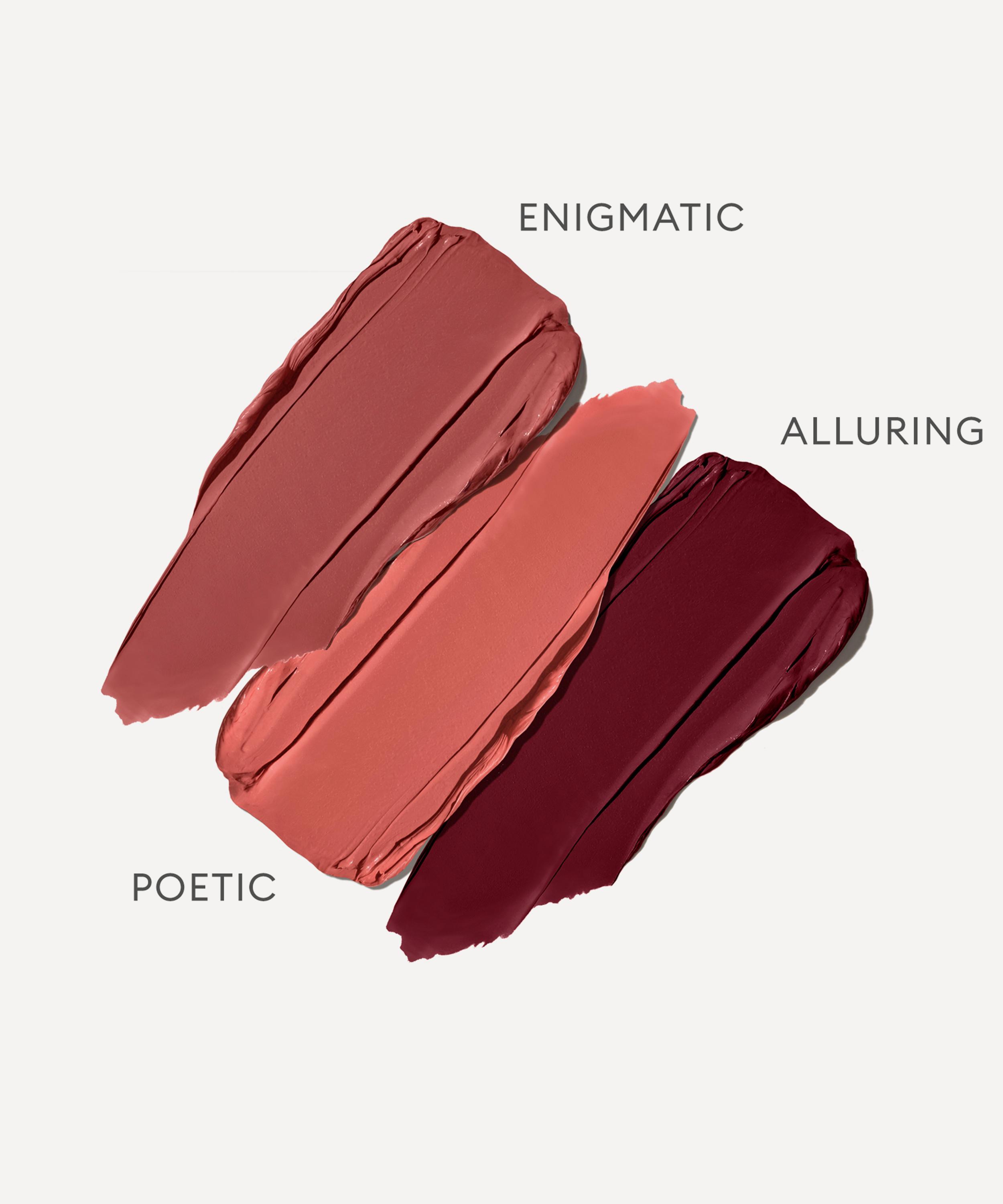 - The Satin Lip Trio includes: Satin Lip Colour Rich Refillable Lipstick in Poetic 1.2g, Enigmatic 1.2g and Alluring 1.2g