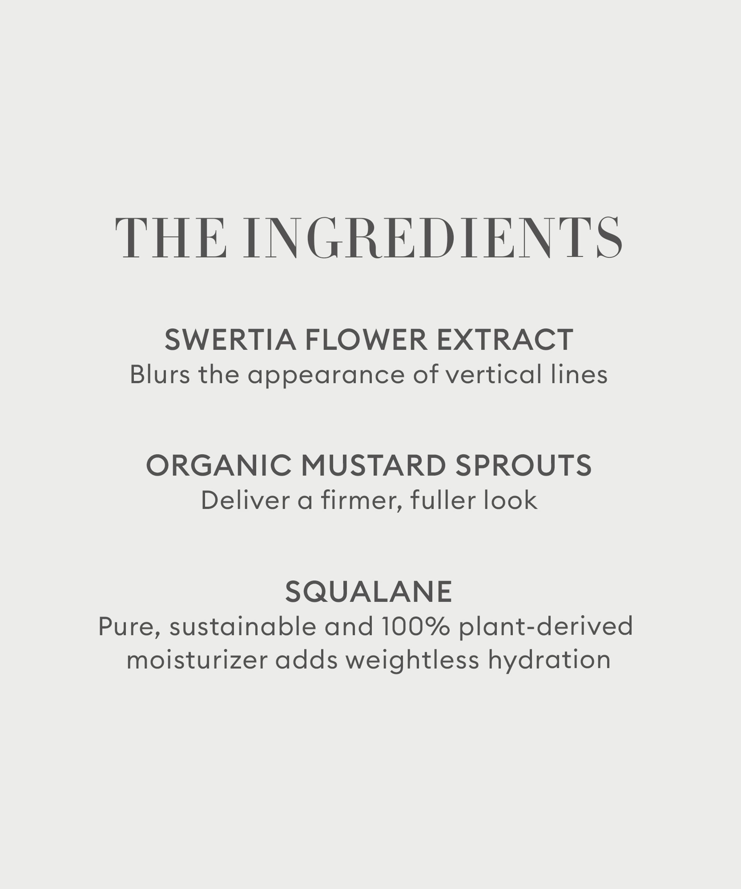 - Enriched with Swertia flower extract, organic mustard sprouts and squalane