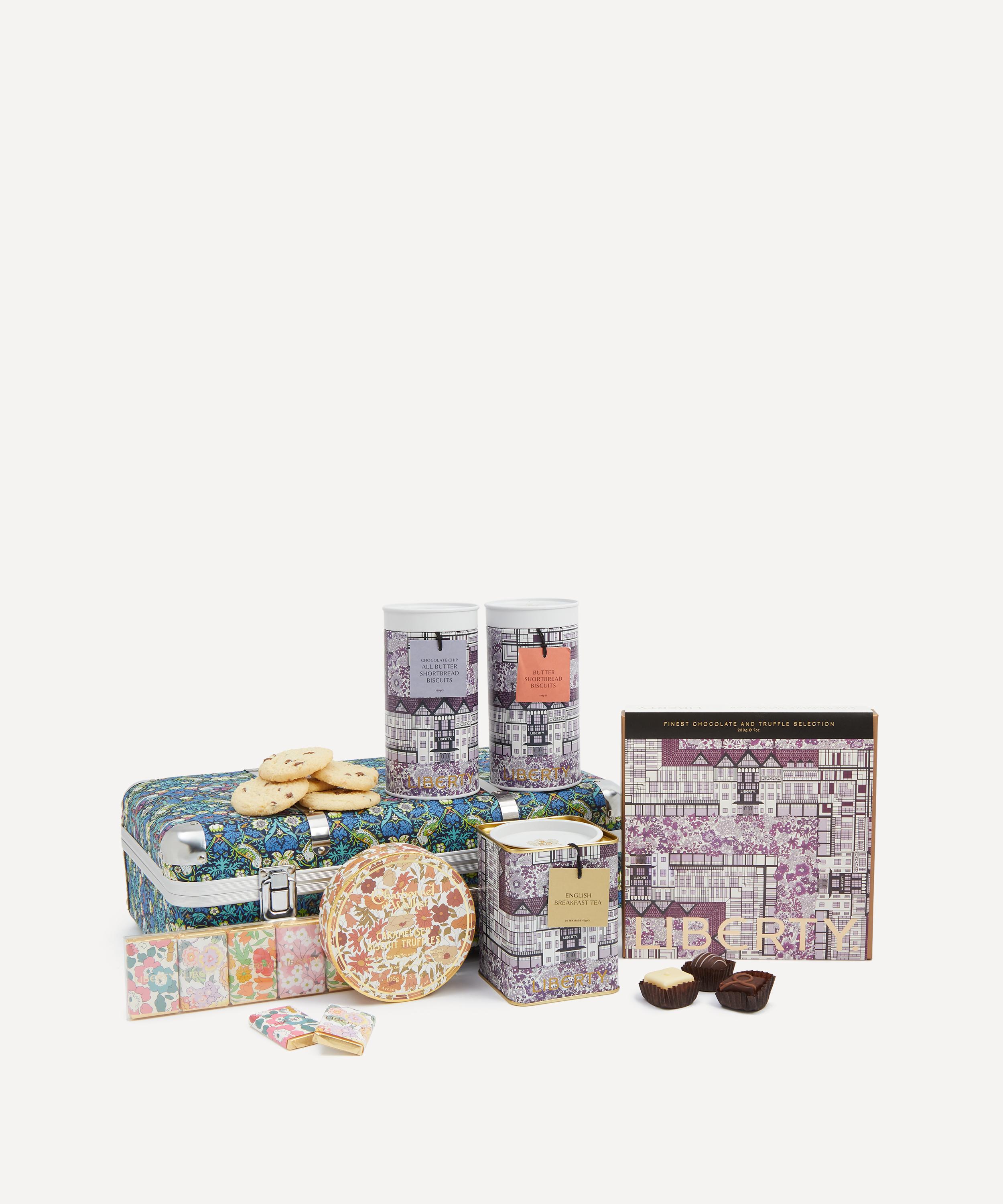 It’s packed in a keepsake suitcase patterned with our Strawberry Thief print – a perennial favourite since 1979 and an arts and crafts design originally created by William Morris in 1883 – that opens to reveal an array of biscuits and truffles, including caramelised biscuit truffles and choc chip shortbread. It also includes a box of our Tudor English breakfast tea and an indulgent, 16-piece Liberty Tudor chocolate selection. Perfect for gatherings, parties and thoughtful gifting, this mouth-watering hamper is the perfect addition to your seasonal celebrations.