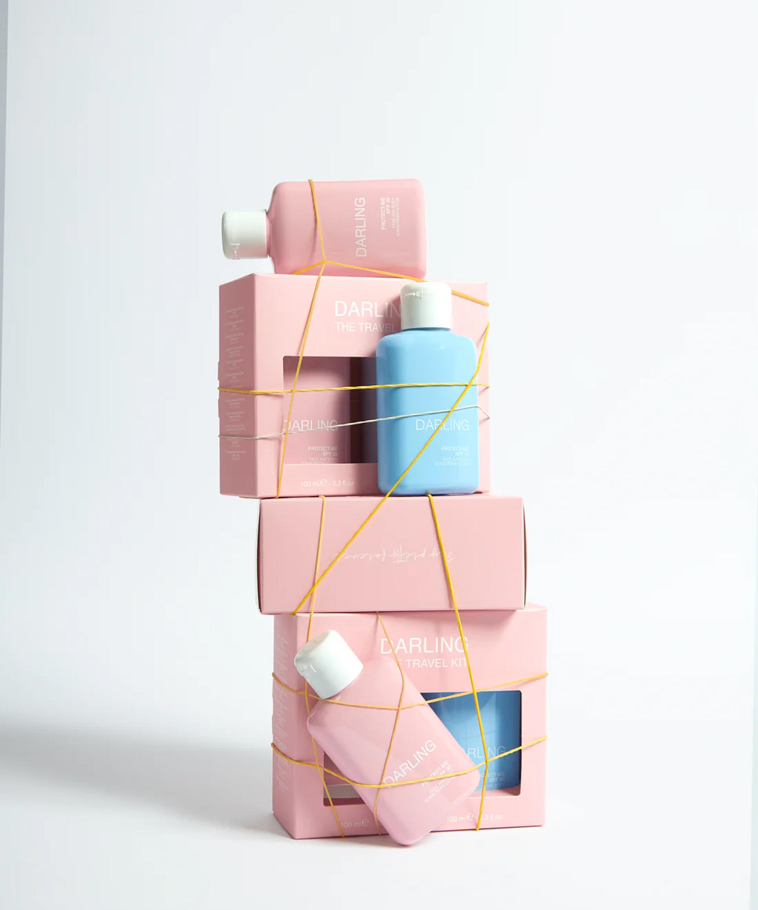 The Travel Kit from Darling showcases two travel-size editions of their best-selling Protect-Me sunscreen lotions for the face and body.