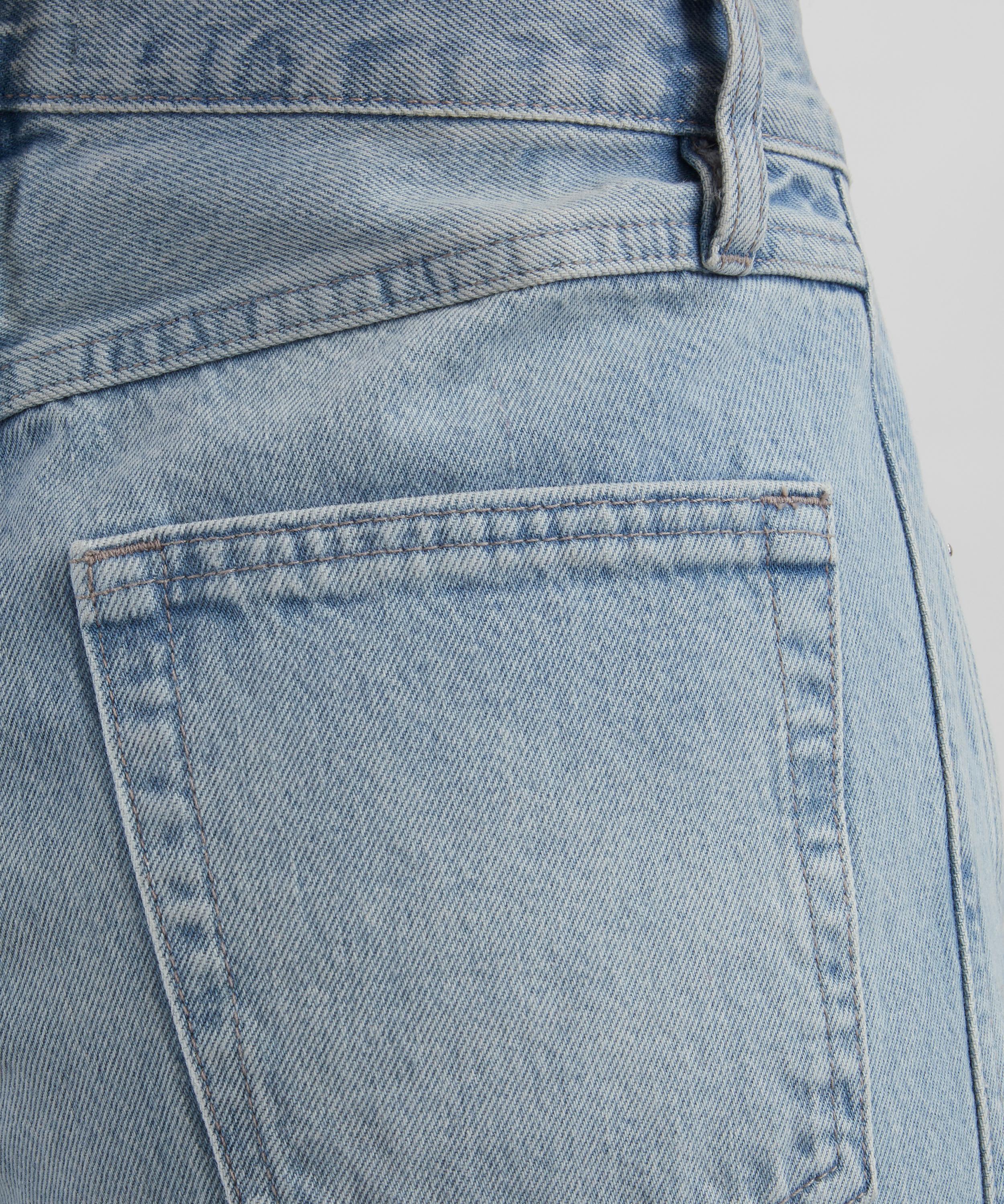 Crafted from rigid denim in a light-blue wash, the Twisted Jeans showcase a high-rise, barrel-leg silhouette with an ankle-length inseam. Utility-inspired seam detailing adds a distinctive touch, blending structure with effortless style.