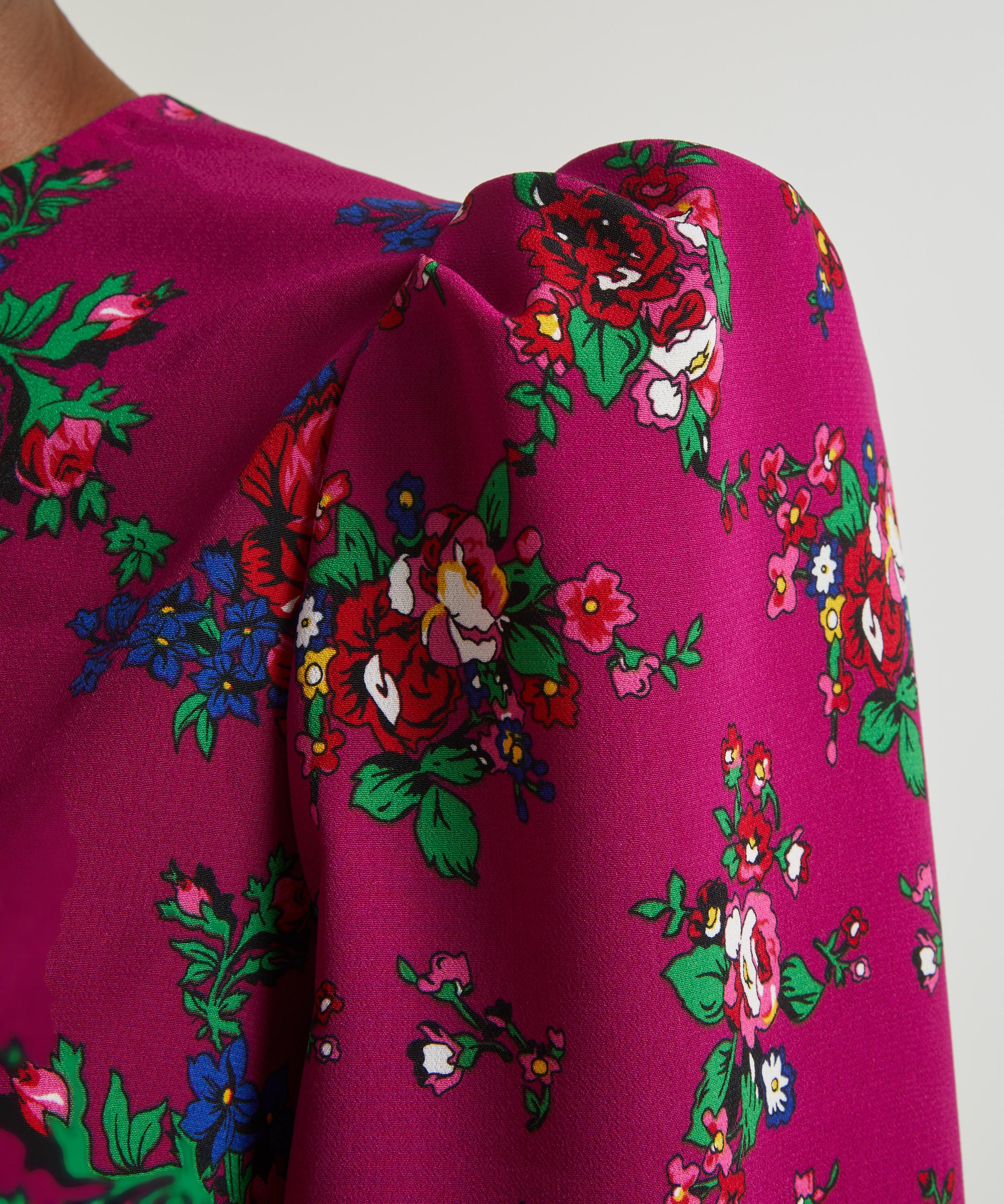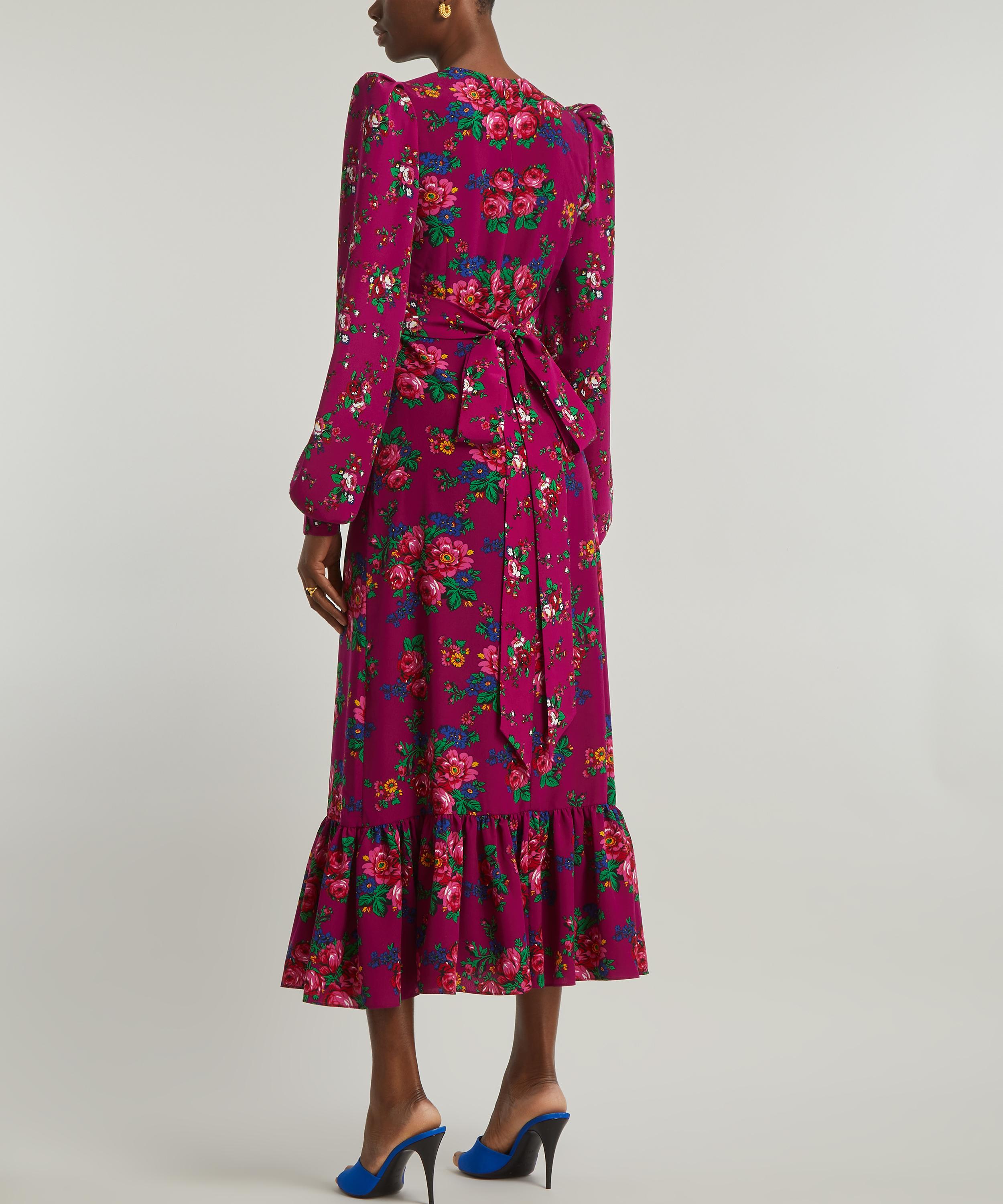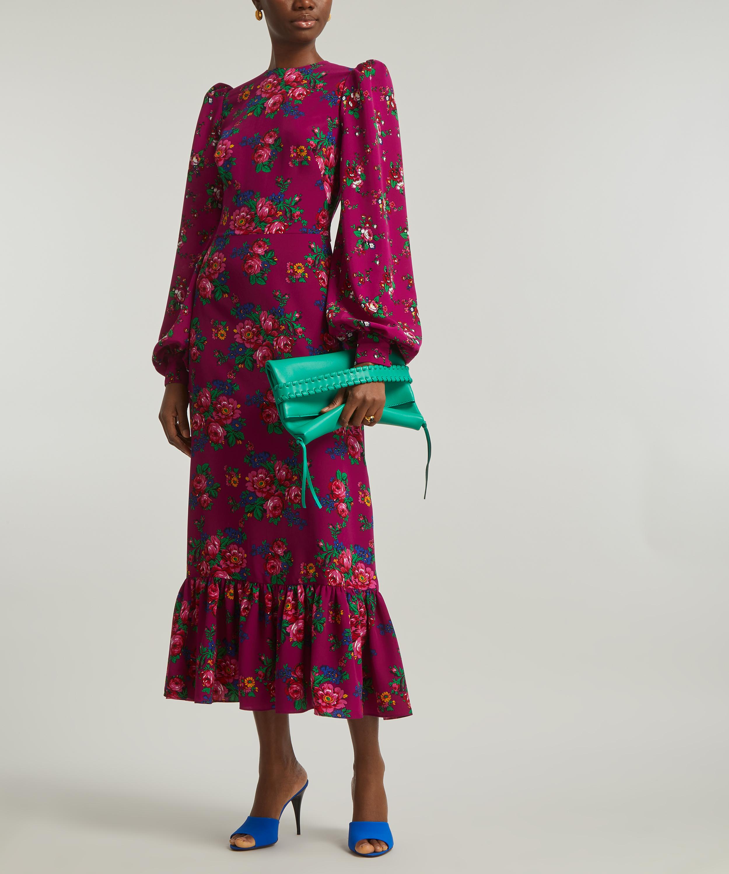 The Vampire’s Wife brings us The Villanelle dress - updating its iconic frill-hemmed silhouette with exaggerated bell-sleeves and pretty back bow. Named after Villanelle, the antagonist in the television drama Killing Eve, this dress is as full-blown, theatrical and glamorous as its namesake. With two contrasting, vibrant floral prints across its body and huge bell-sleeves, it is a true joy to wear.