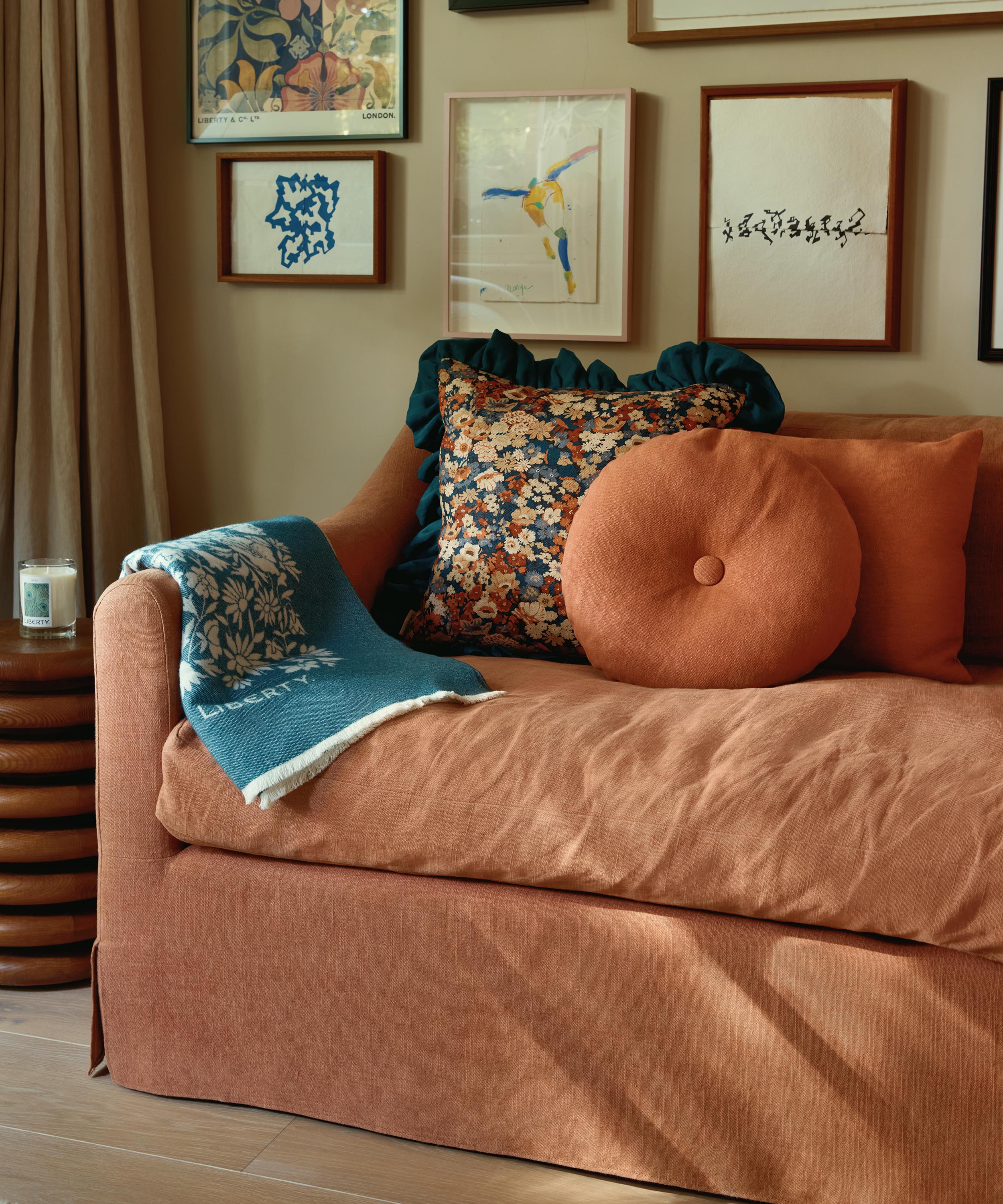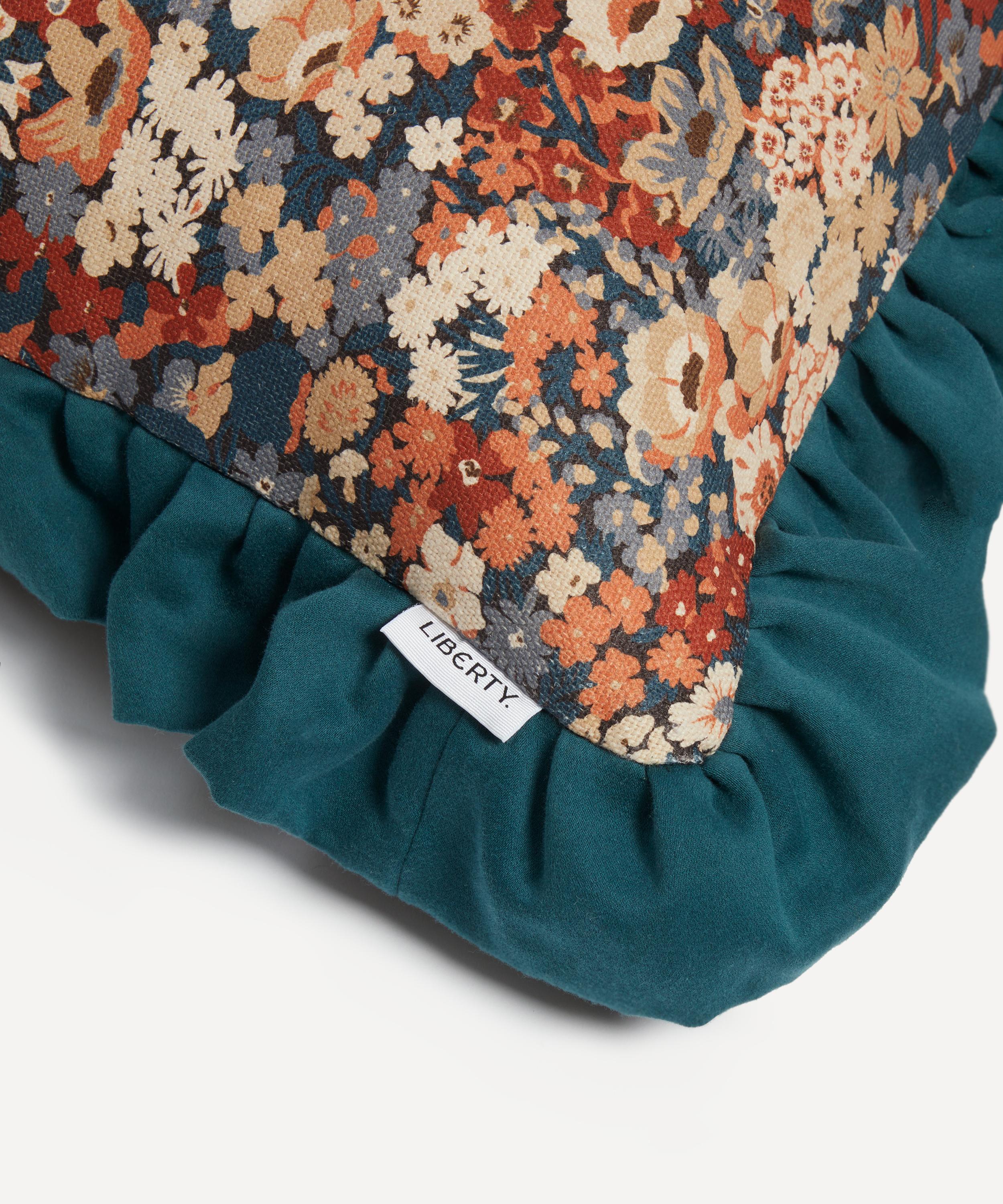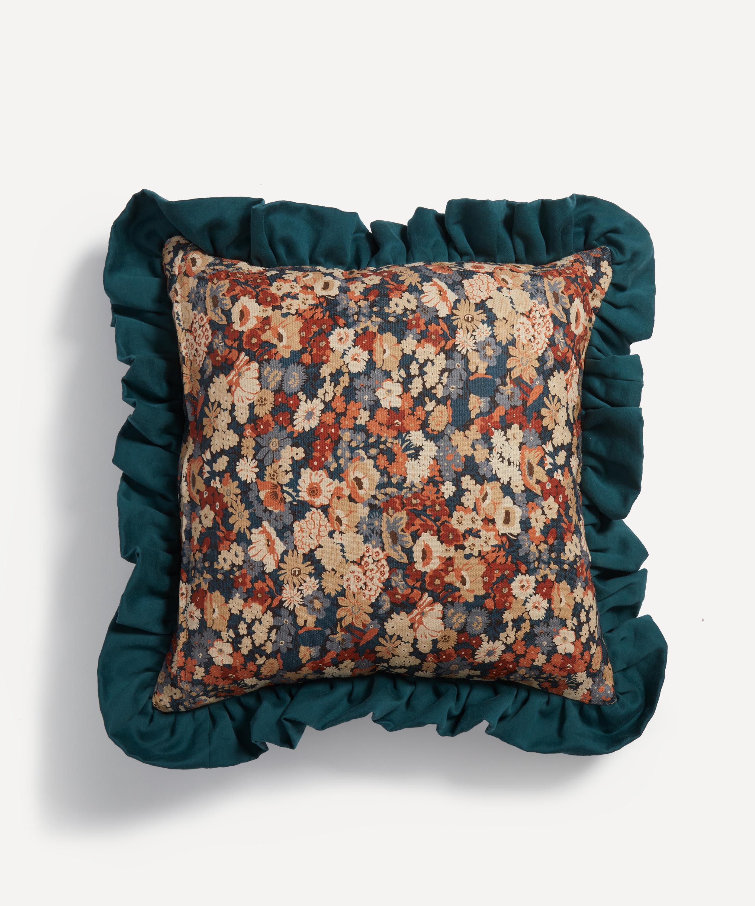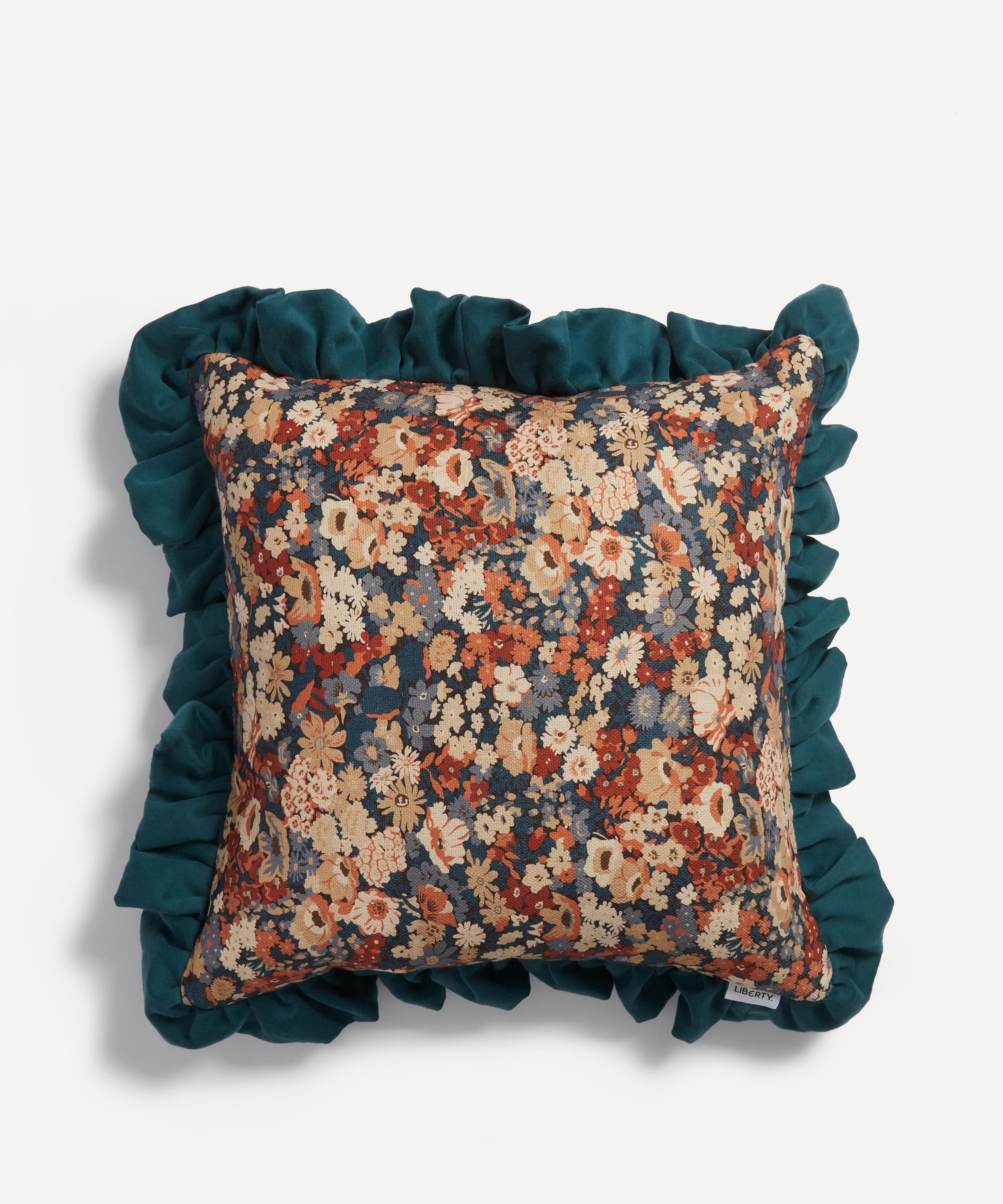 This Liberty square cushion features our Thorpe House print and is decadently plump with a recycled duck feather filling. Created in the Liberty design studio, Thorpe House – a print reminiscent of our 1930s florals reworked in a playful, bolder scale – appears here in a beautifully engineered iteration, edged with lush ruffles for added texture. The cushion’s classic silhouette and richly hued palette add an elegant twist to modern interiors.