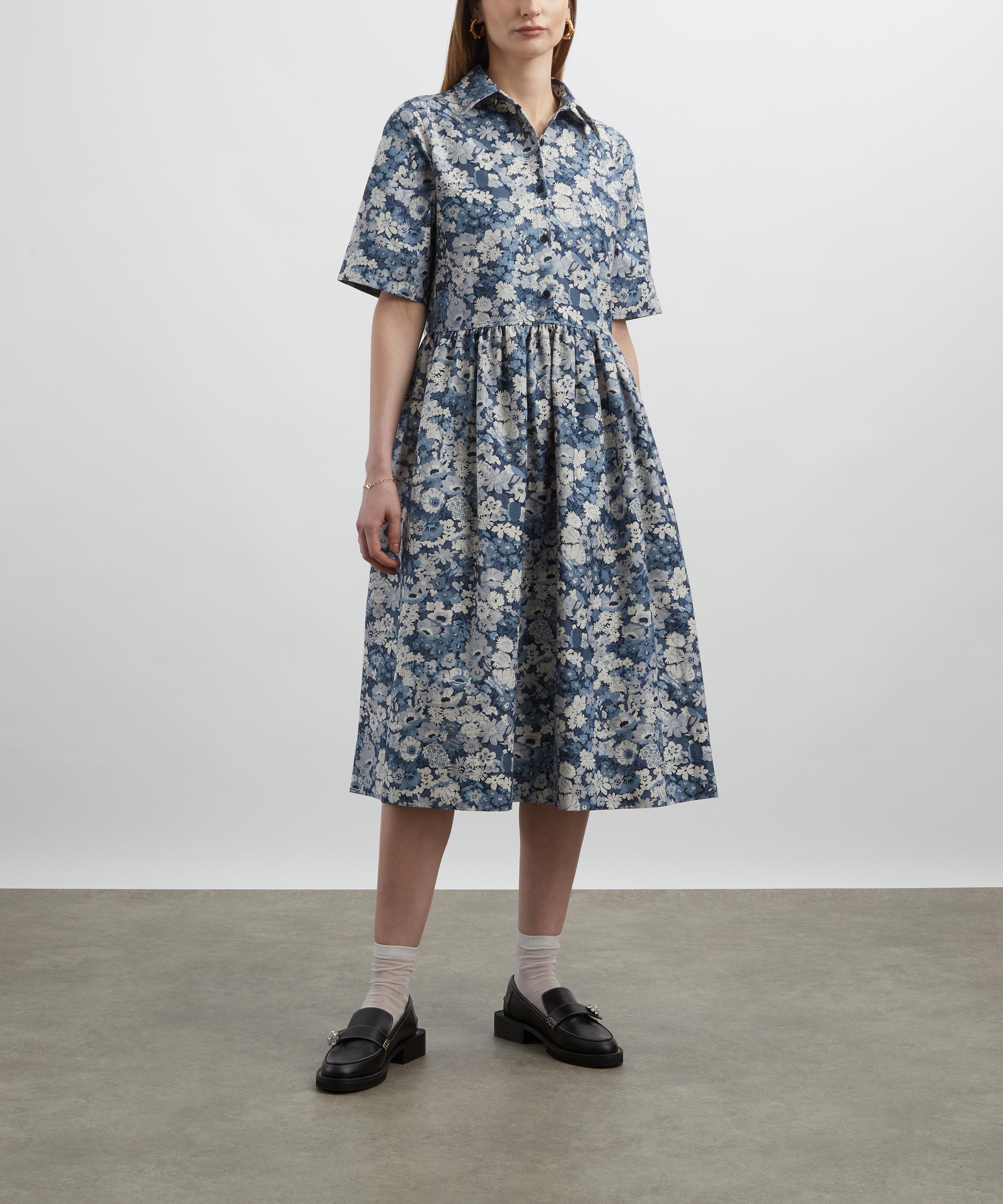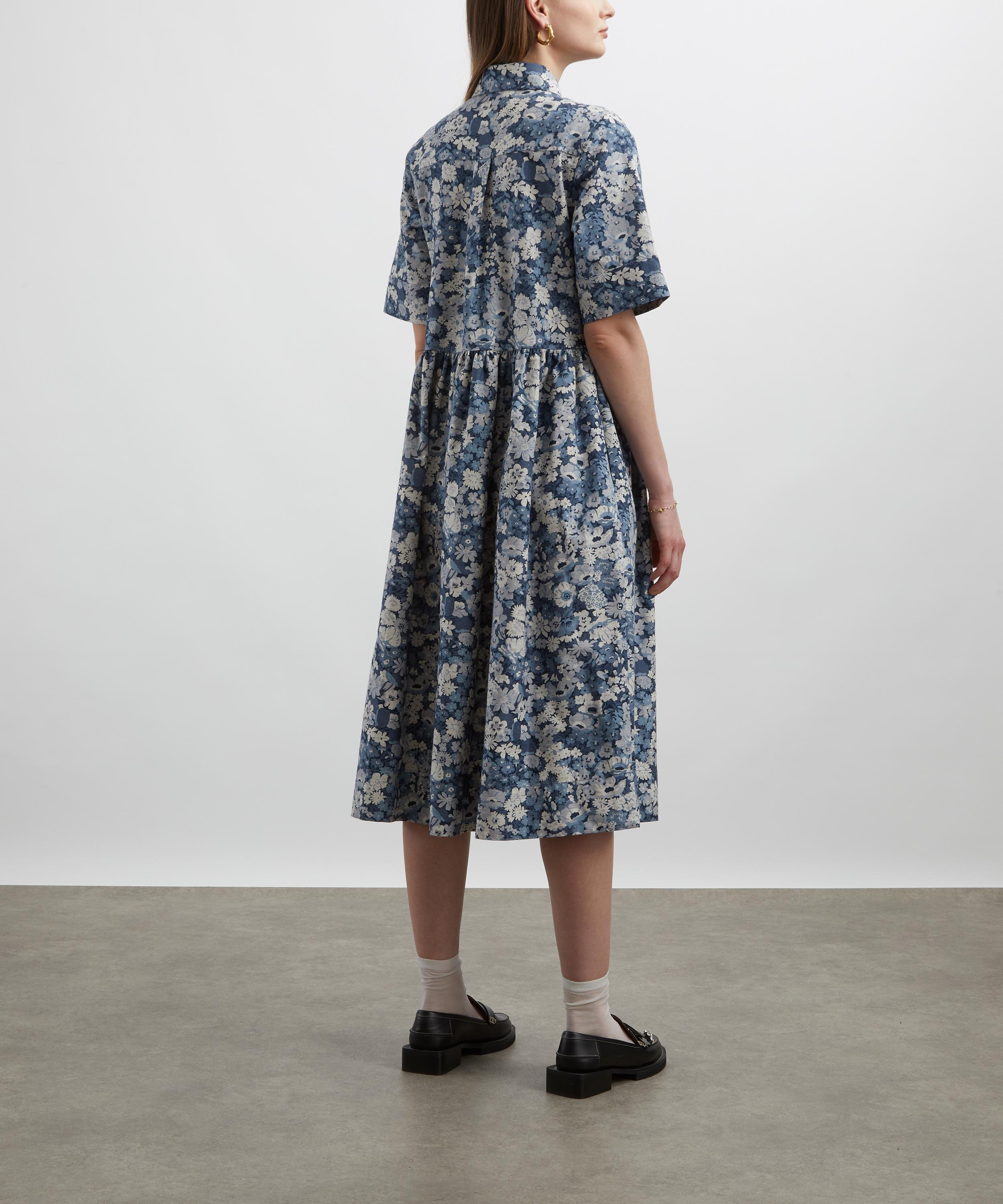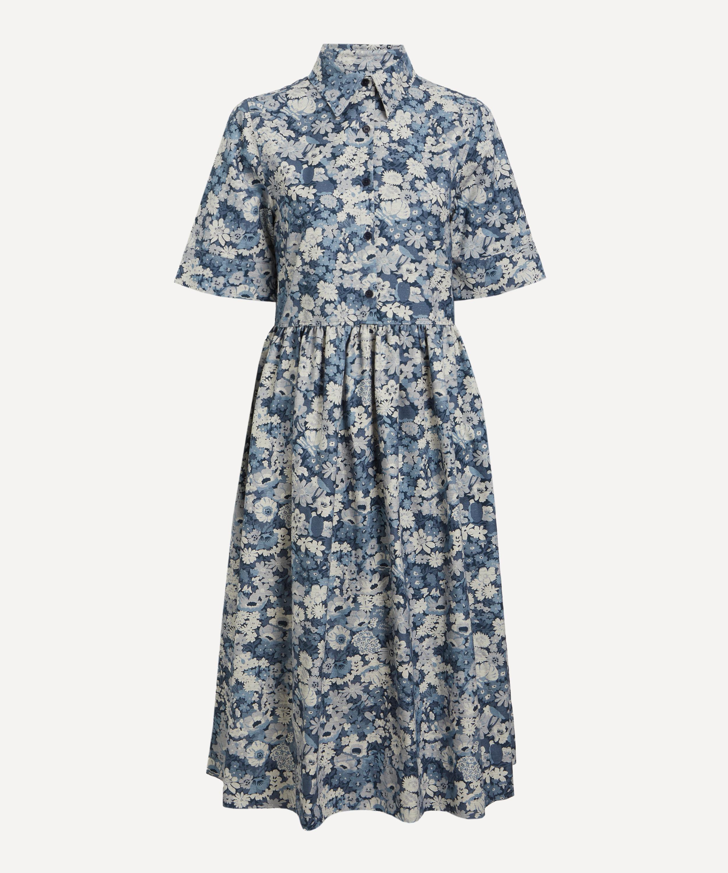Liberty’s signature Gallery Shirt Dress is a summer essential, seamlessly blending comfort with classic shirting details. Crafted from Tana Reborn Fabric, it’s cut to a relaxed fit and showcases our Thorpe Spring print – named after the artist John Hall Thorpe, whose early-1900s paintings inspired its dense florals. Designed with a gathered waistline, point collar, and a buttoned half-placket, this shirt dress features short sleeves and wide, gathered cuffs for a refined finish.