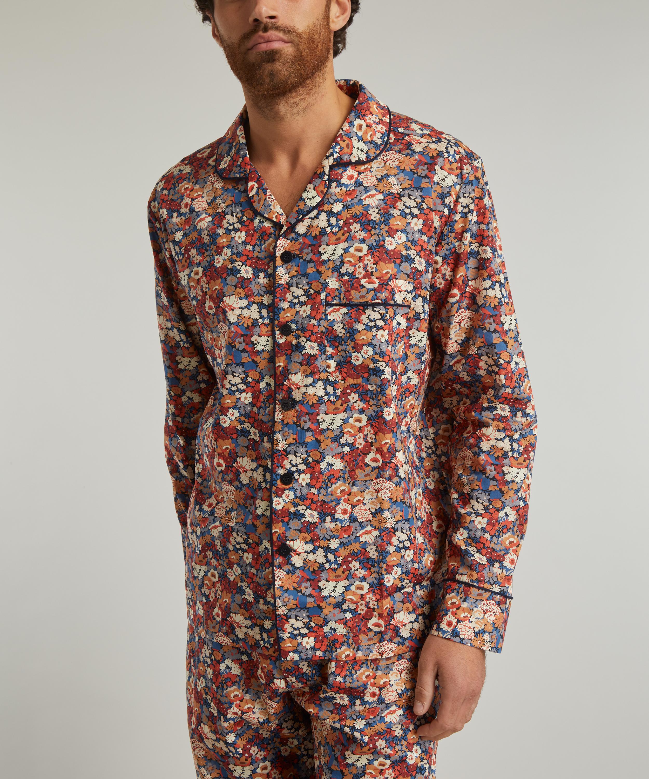 The long-sleeved Tana Lawn™ cotton pyjama set is designed by Liberty’s in-house studio team, printed at the Liberty Printing Mill with our iconic Thorpe design.