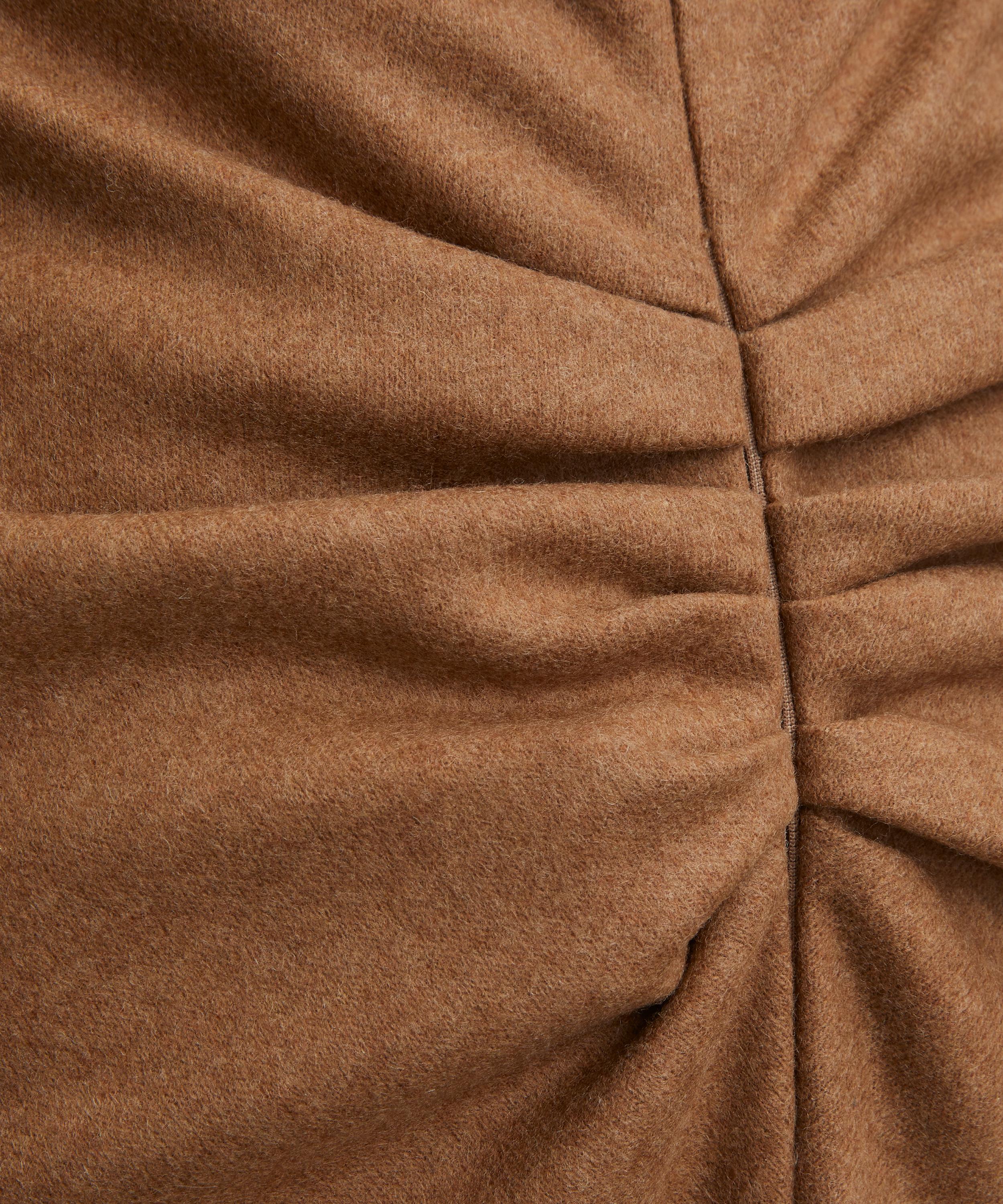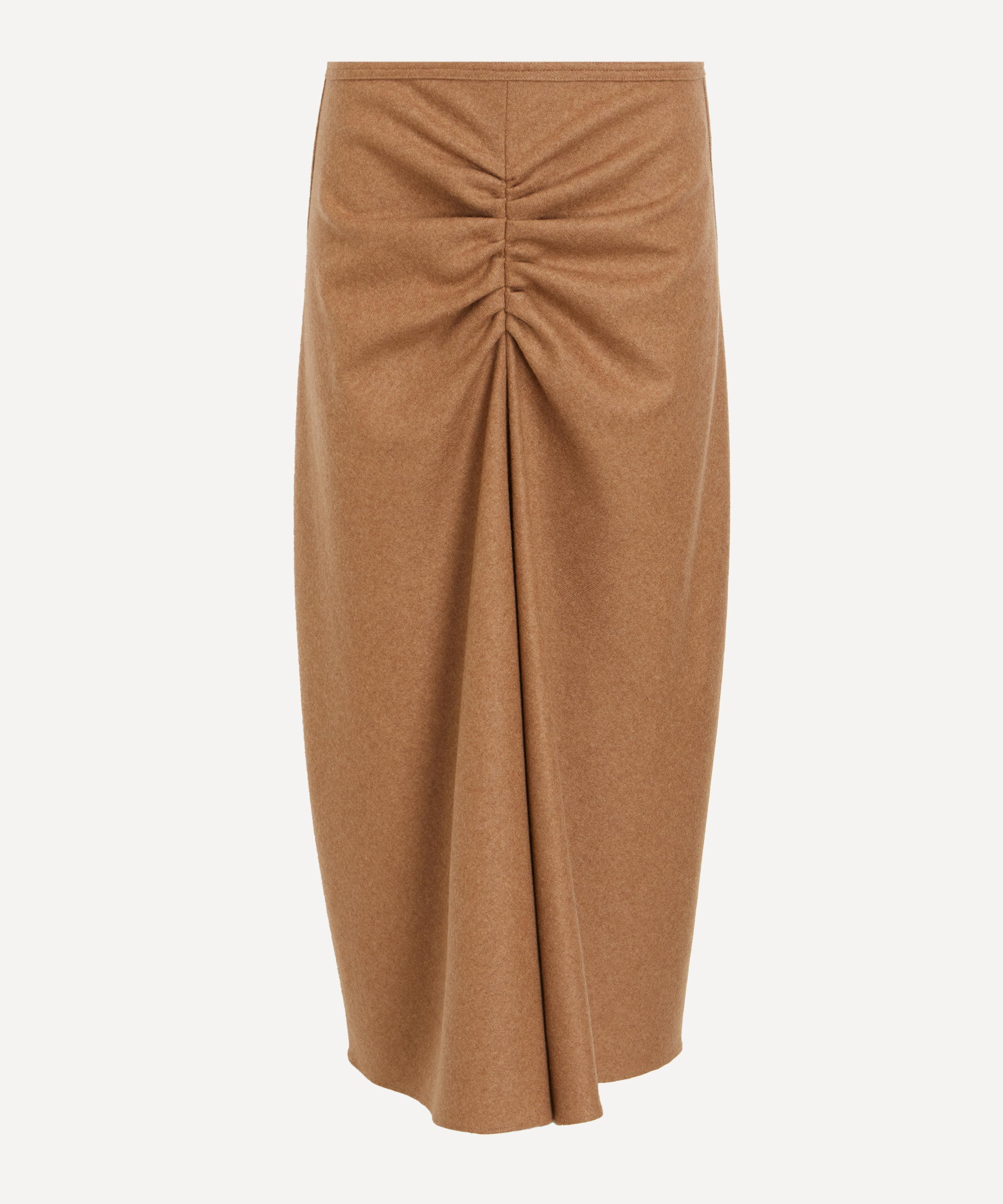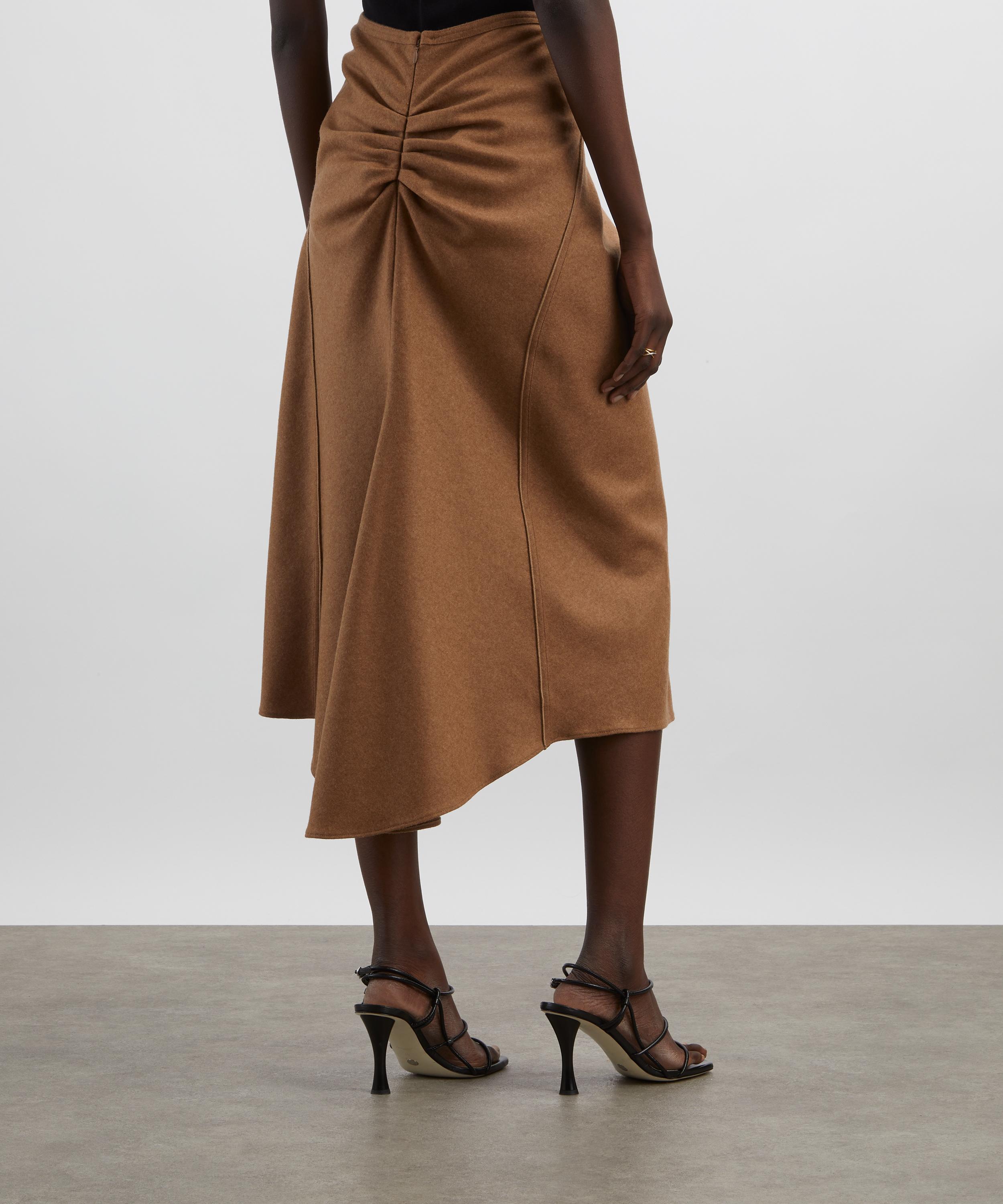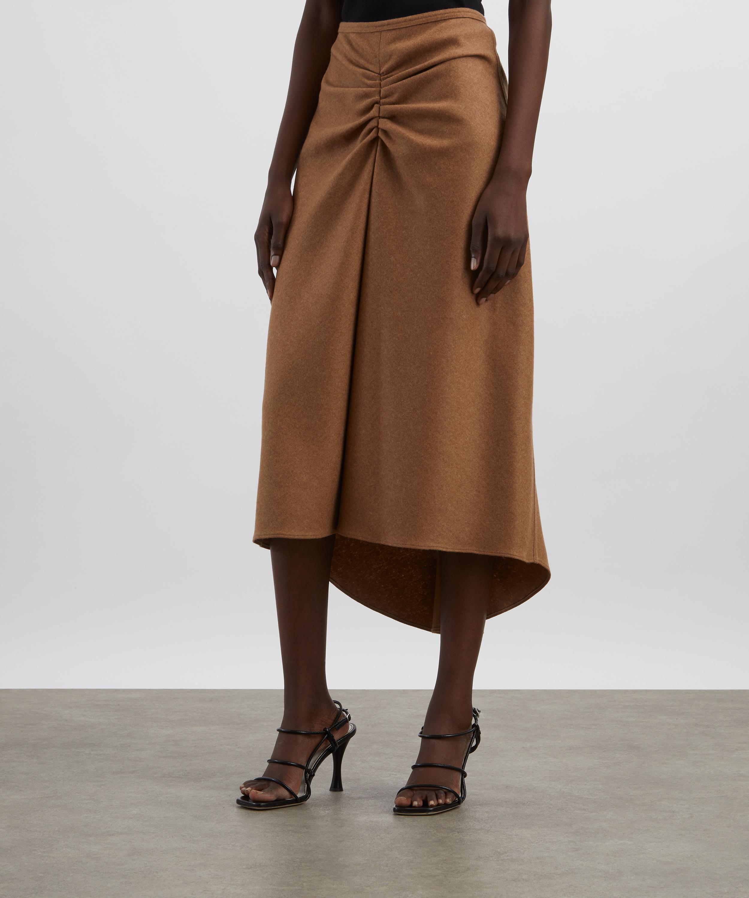 Finely knitted from a wool and cashmere blend, the Gathered Waist Midi Skirt features a flattering fit-and-flare silhouette. Soft pleats at the front and back lend a sensuous touch, while exposed overlocked side seams and an asymmetric, high-low hem offer an elevated point of difference. Presented in a rich beige hue, it reflects the house’s signature relaxed sophistication.
