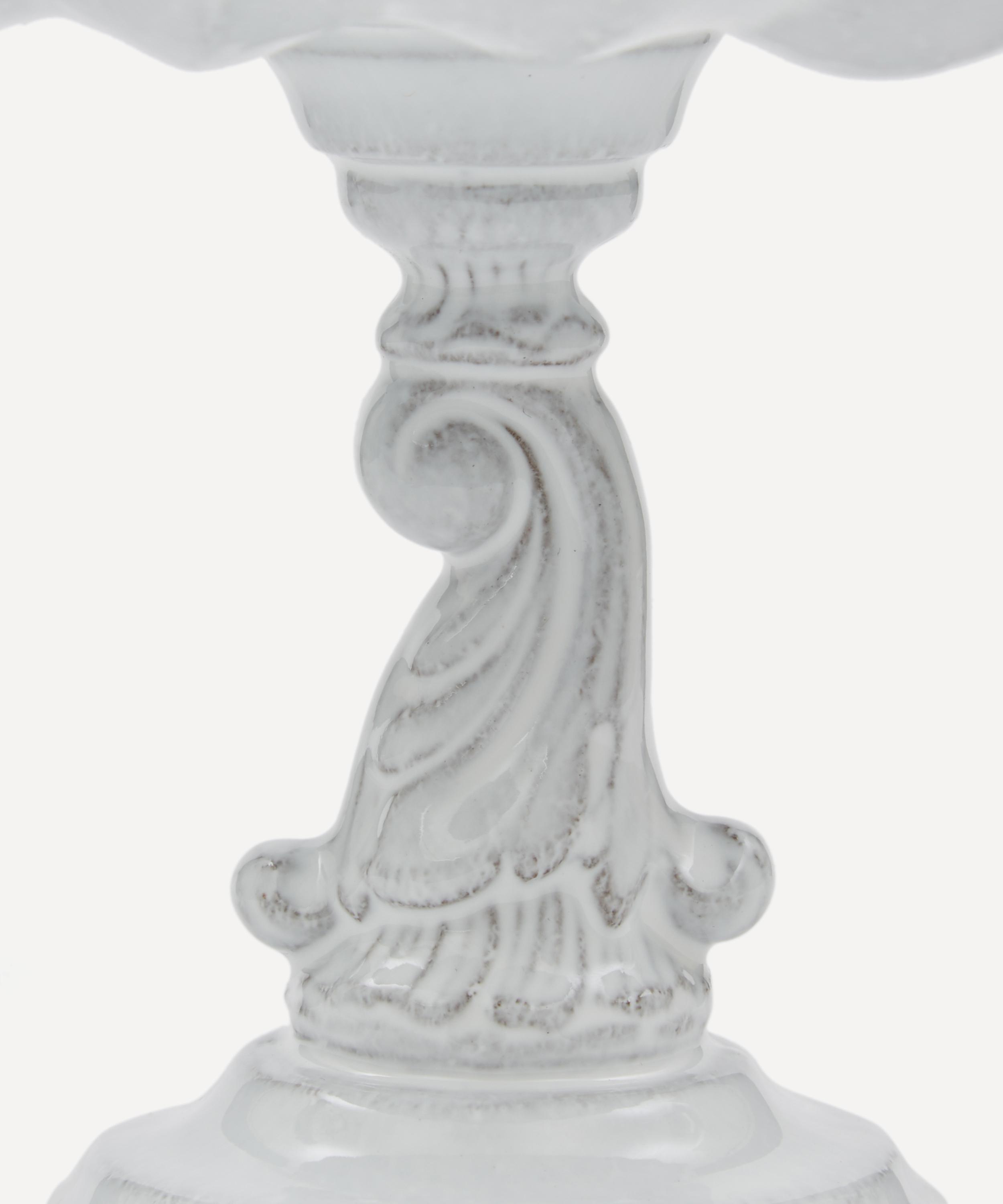 Votary of pre-industrial fabrication, Astier de Villatte is celebrated for being the one and only studio in Paris to hold and harbour the traditions of artisanal ceramic production. Restoring the ancestral systems of moulding and stamping, the Tom platter on stand is made using handcrafting techniques from the Middle Ages which involve moulding a handmade sheet of clay, double firing the ‘biscuit’ piece and glazing the product in white enamel – a lengthy process that involves a drying time of up to one month. Teeming with old-world charm, the stand is engraved with the brand’s signature crest - depicting an interlacing A & V - alongside the initials of one of the 40 master artisans who created it. Each handmade piece tells a beautiful story, it romances and imparts a sense of nostalgia into its owner. Arrange with other serveware in the collection to breathe an air of authenticity into your table setting.