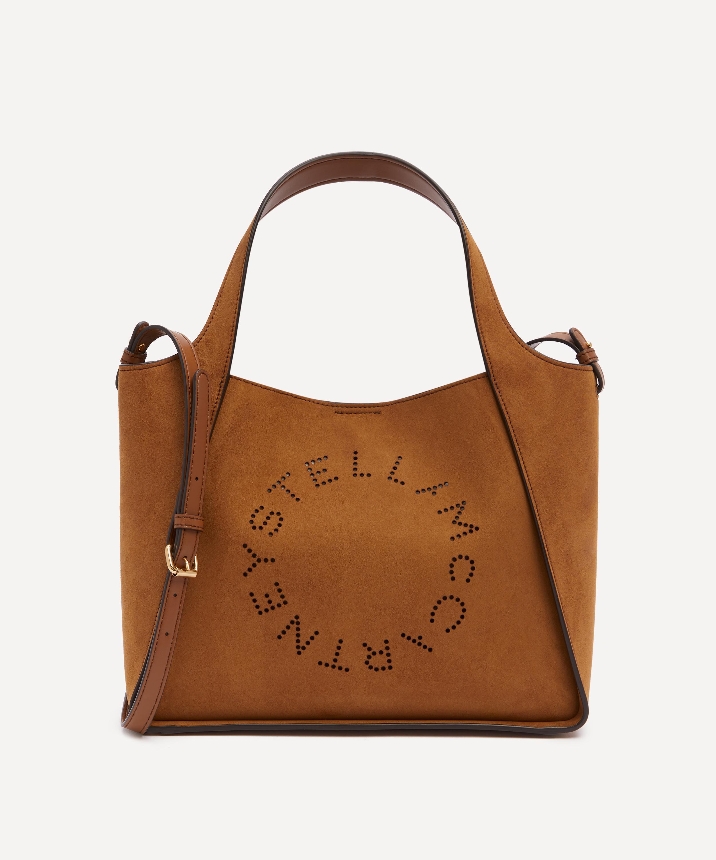 Characterised by a slouchy yet structured silhouette, this crossbody bag features a spacious interior with a faux leather lining, a snap button fastening, two top handles, and a detachable pouch to secure small vaulables – finished with a punched version of the distinctive circular brand logo that appears throughout the Stella Logo collection.