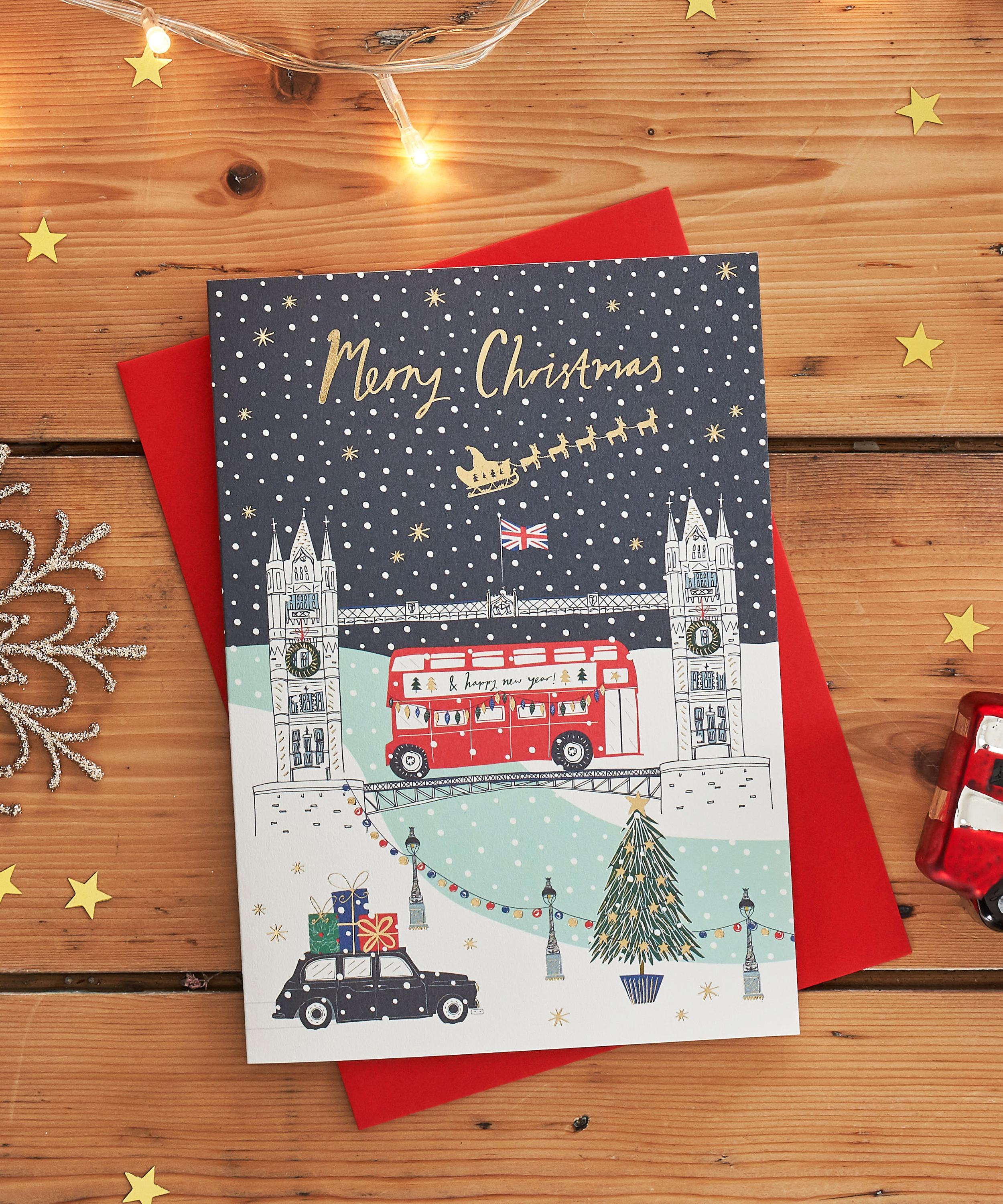 Send warm season’s greetings with this pack of eight Christmas cards by Jessica Hogarth. Charming and timeless, each card is beautifully designed with an illustration of Tower Bridge on a dark snowy background. Left blank inside, pen a fun festive message and seal with love.