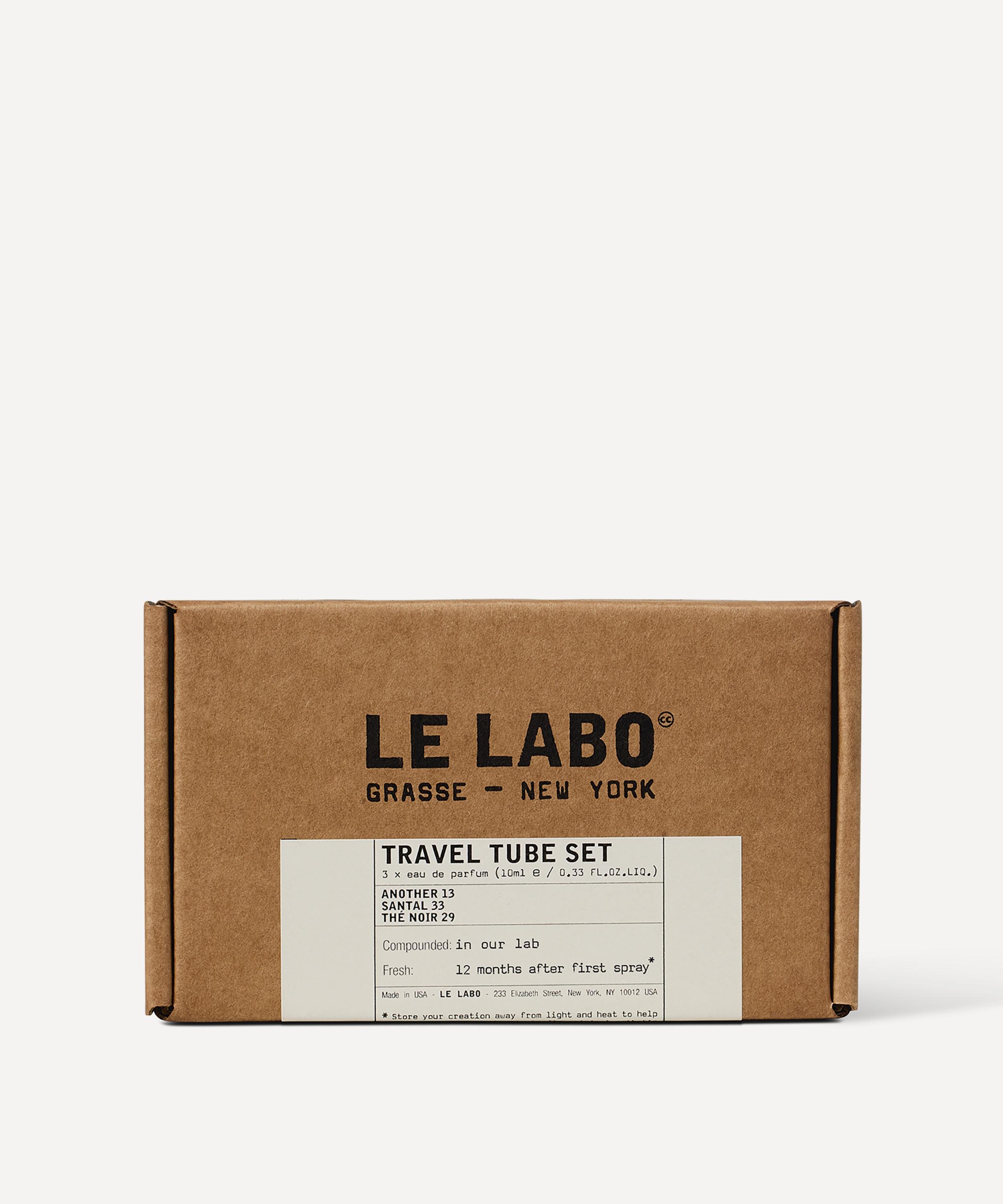 - Travel Tube Set includes: Another 13 eau de parfum 10ml, Santal 33 eau de parfum 10ml, and Thé Noir 29 eau de parfum 10ml