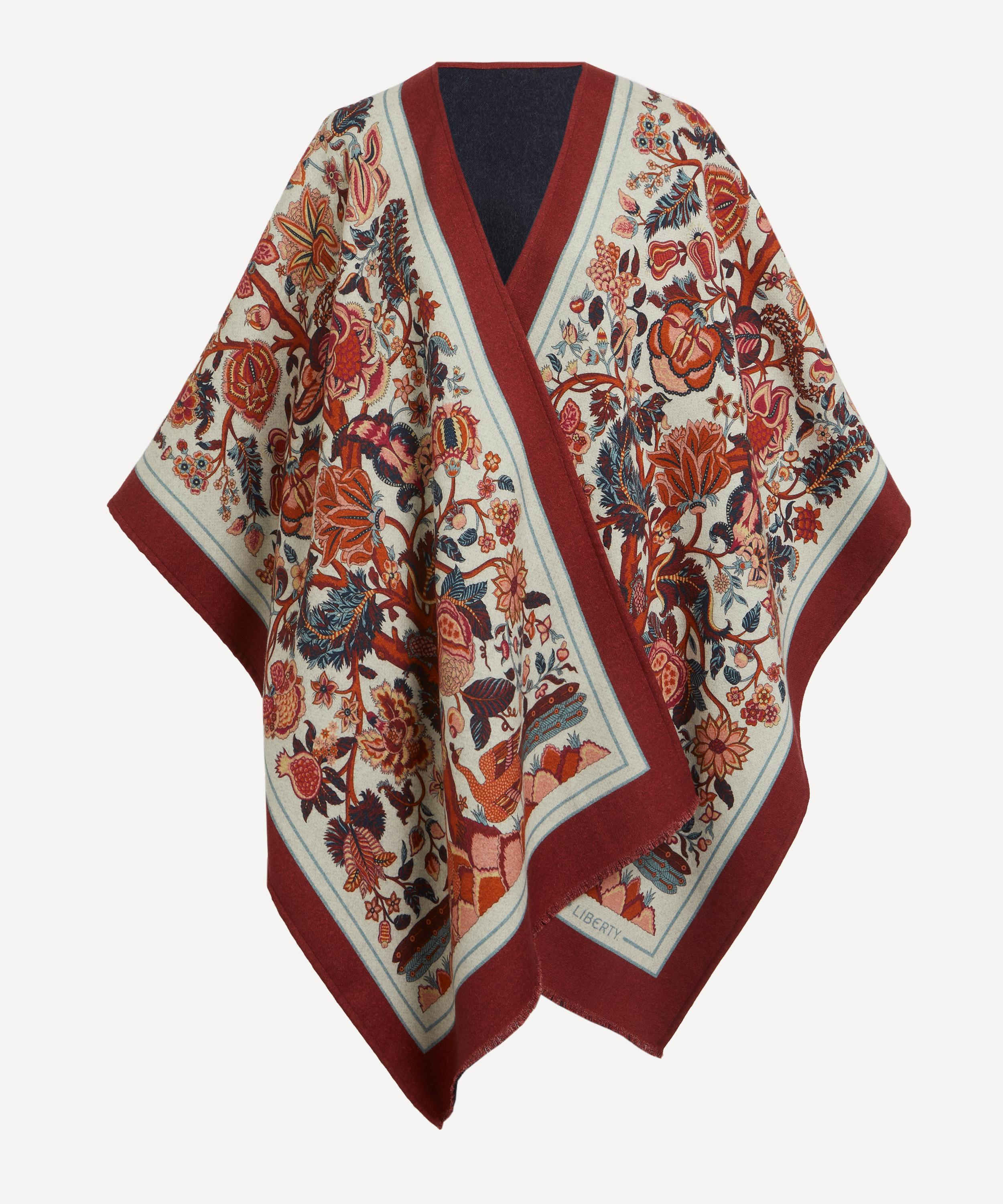 Bring out the colours this season with Liberty’s Tree of Life cape, offering a unique addition to your cold-weather wardrobe. Meticulously crafted from an ultra-soft wool, this chic cape features our Tree of Life print – a design based on traditional Persian designs with exotic fruits, flowers and creatures. The Persian designs it takes inspiration from were adapted for the European market during the late 17th Century. Designed to instantly dress up your edit, it’s perfect for layering to keep your warm during colder seasons.