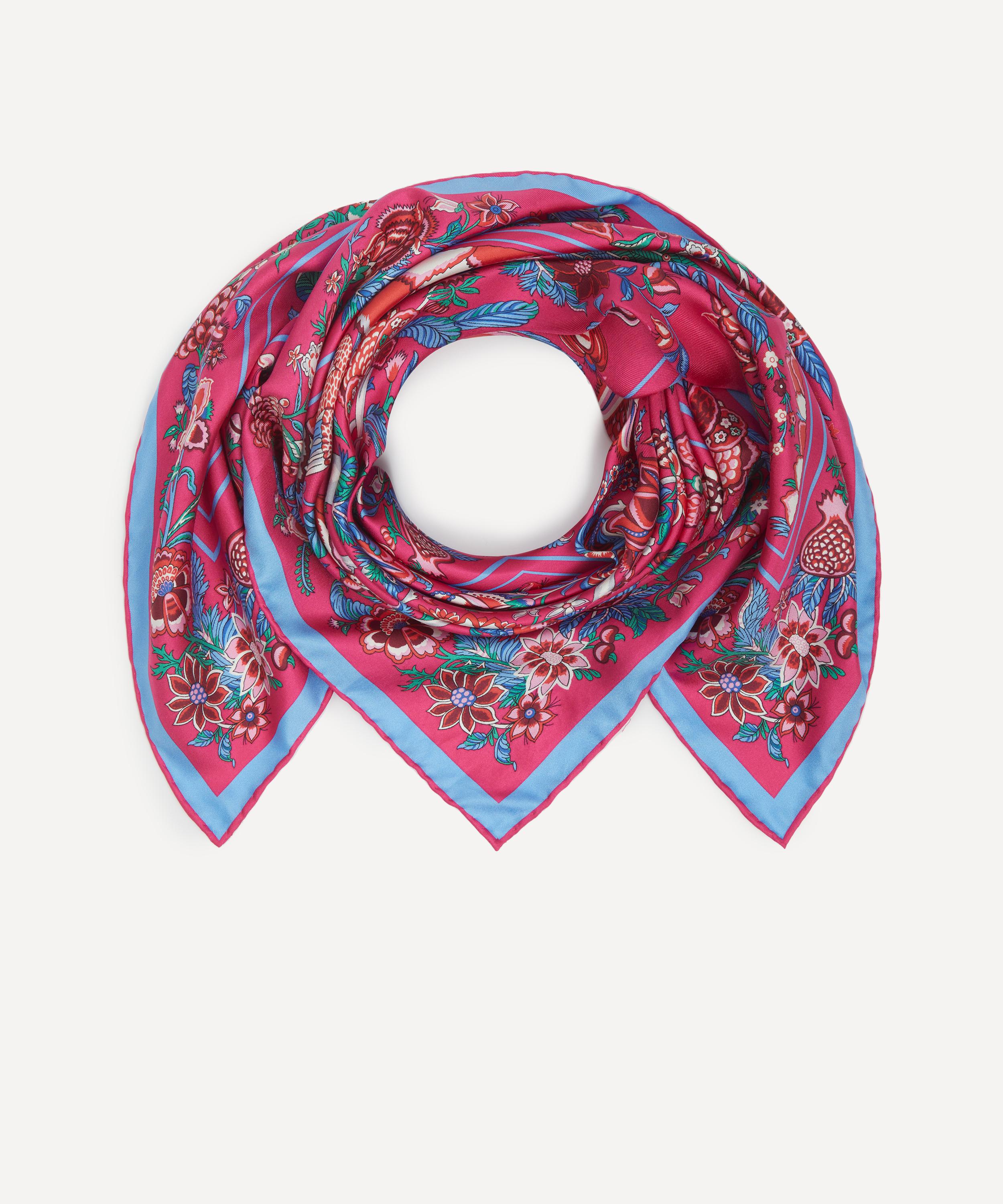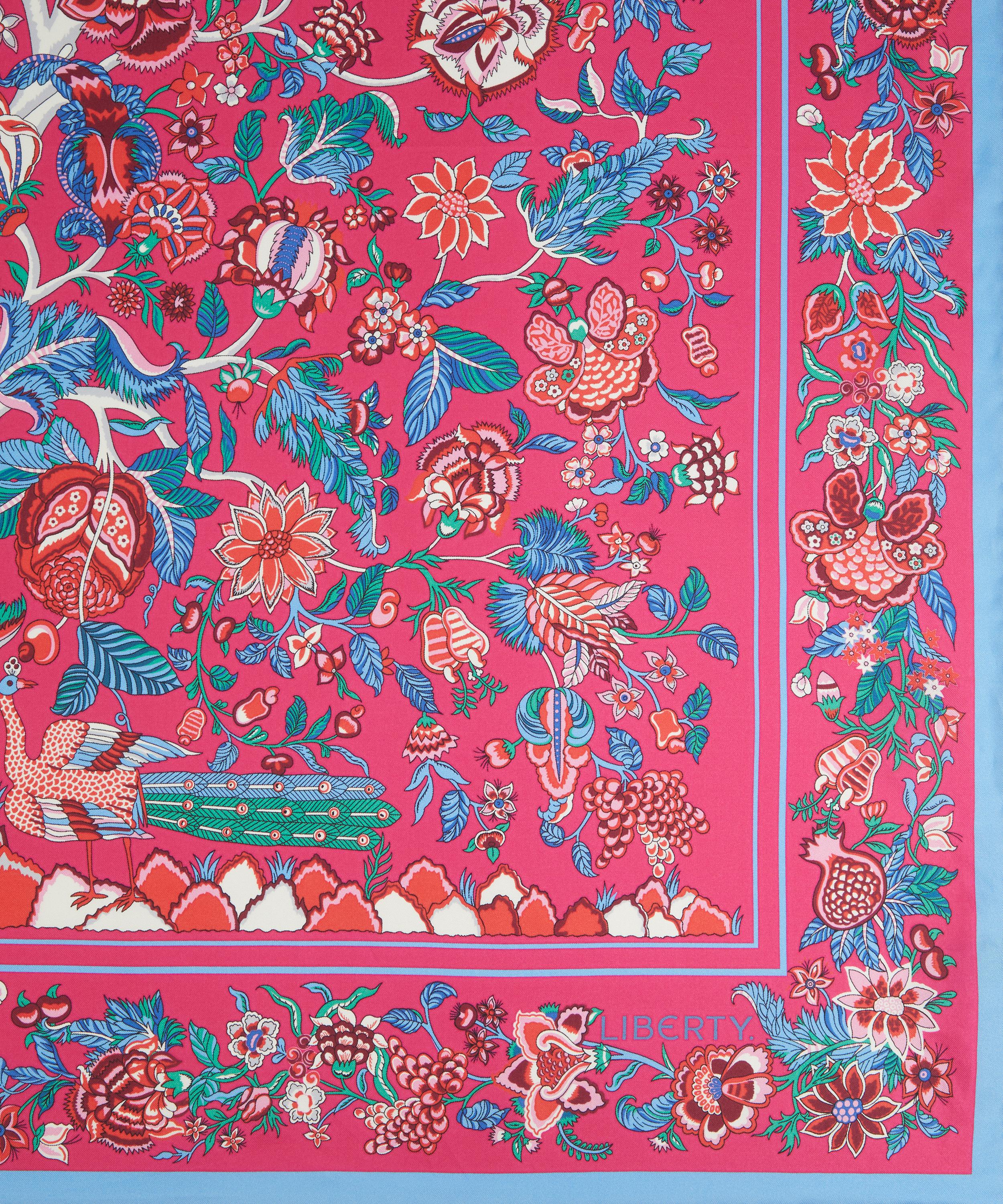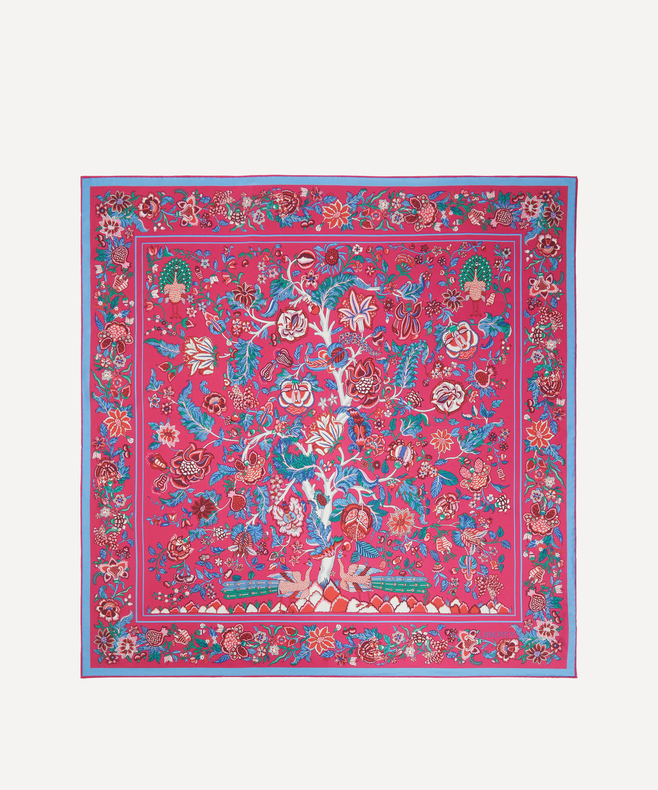 A Liberty silk scarf is a timeless accessory to treasure for years to come. This classic square features the bestselling Tree of Life print, a design based on traditional Persian designs with its exotic fruits, flowers and creatures. These designs were adapted for the European market during the late 17th Century, and printed on chintz in India. Popular in the West ever since, this design has been a classic Liberty scarf since 1976.