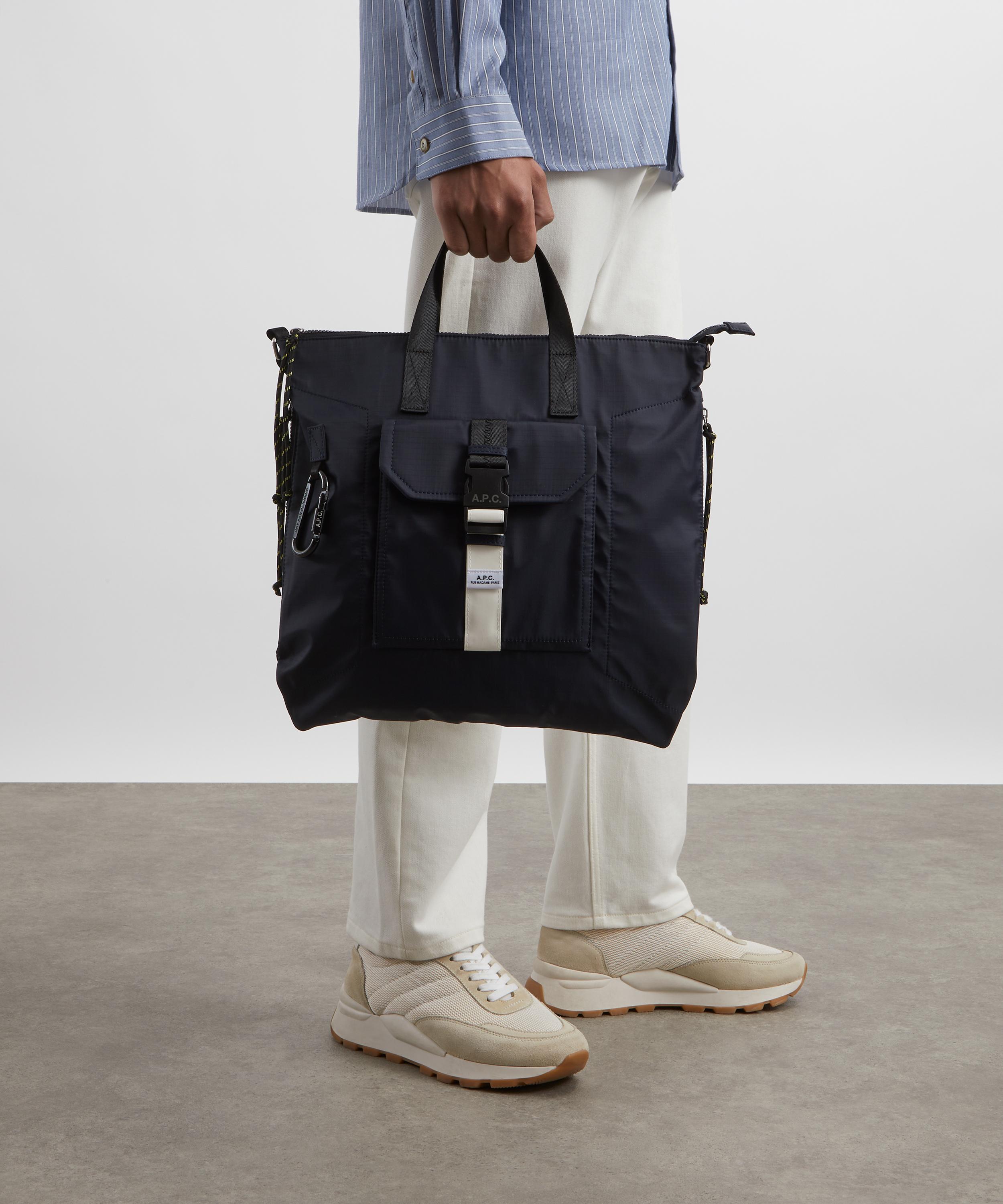 The Trek tote bag from A.P.C. is the versatile, must-have staple you can carry to the office or use whilst traveling. Crafted from a durable nylon fabric, it’s spacious enough for all your everyday essentials, featuring a front pocket with buckle closure and two zipped side pockets, perfect for items you need close at hand like your wallet, bus pass, and ID. Further equipped with a removable carabiner clip, ideal for keys or charms, it’s complete with one top handle and an adjustable shoulder strap to be worn over the shoulder, across the torso, or carried by hand.
