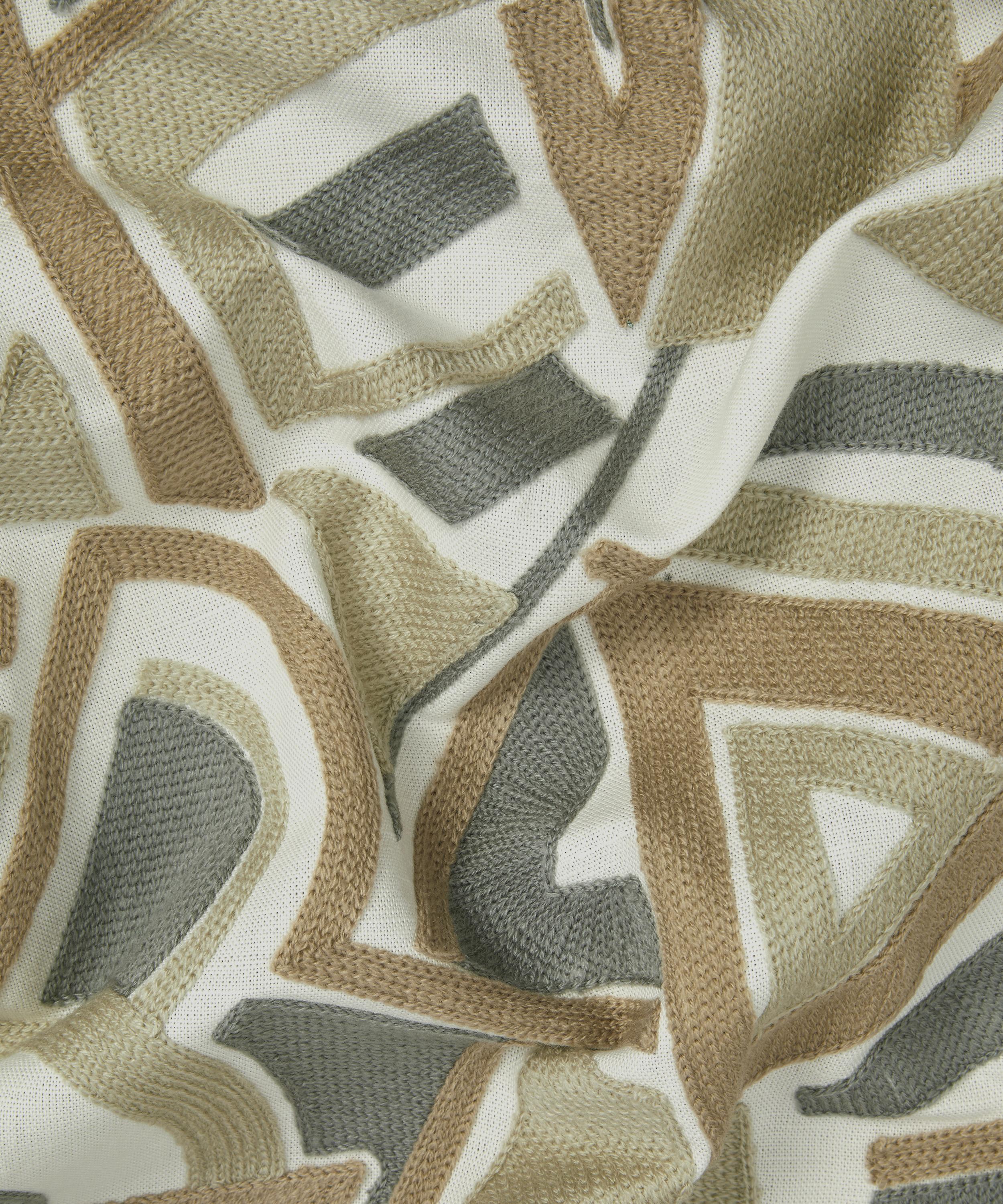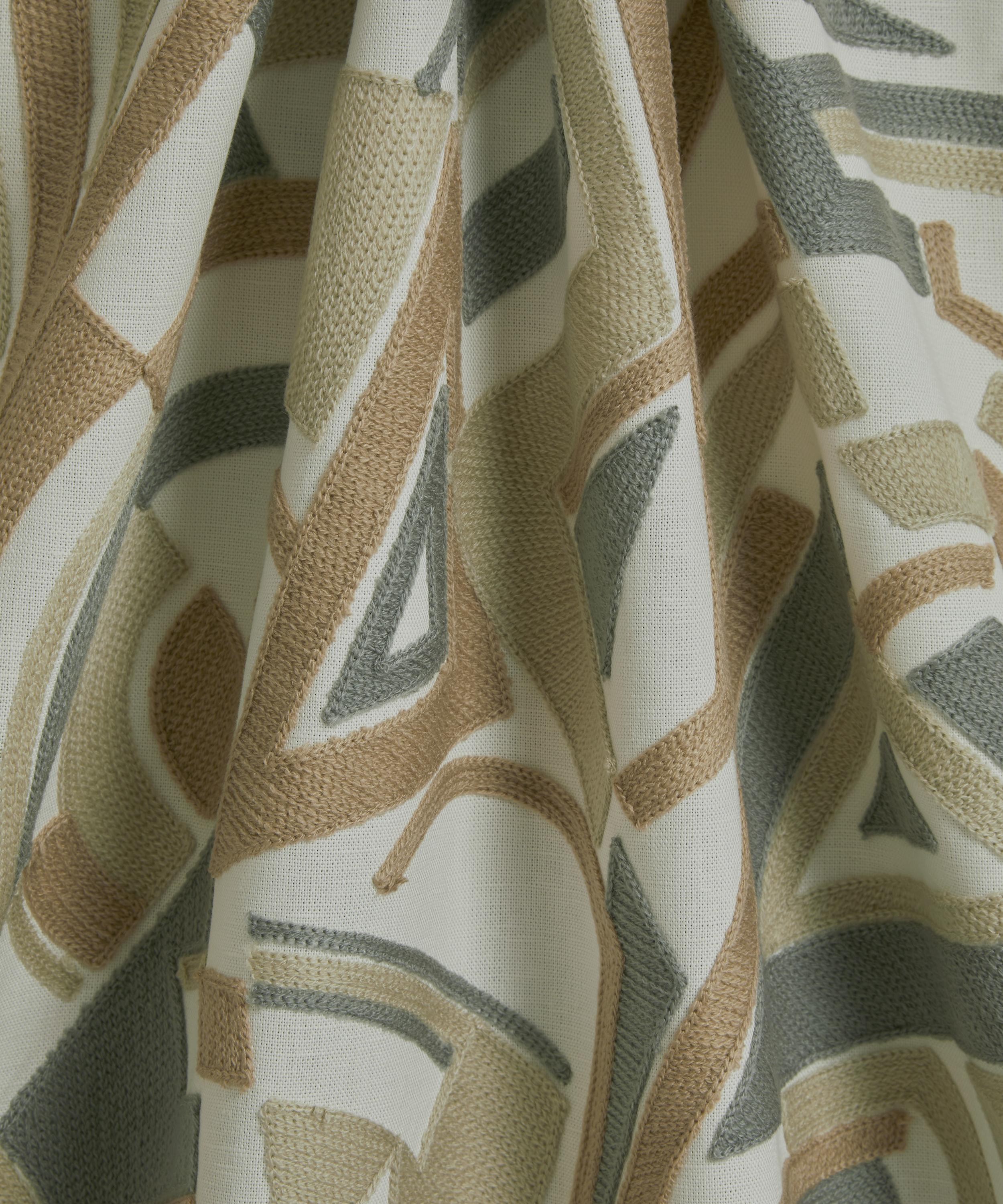 Trepak Embroidery was originally designed by Bernard Nevill for the 1965 Liberty Jazz collection. Now reimagined, it features a playful, three-dimensional decorative embroidery – ideal for drapery and decorative accessories such as cushions.