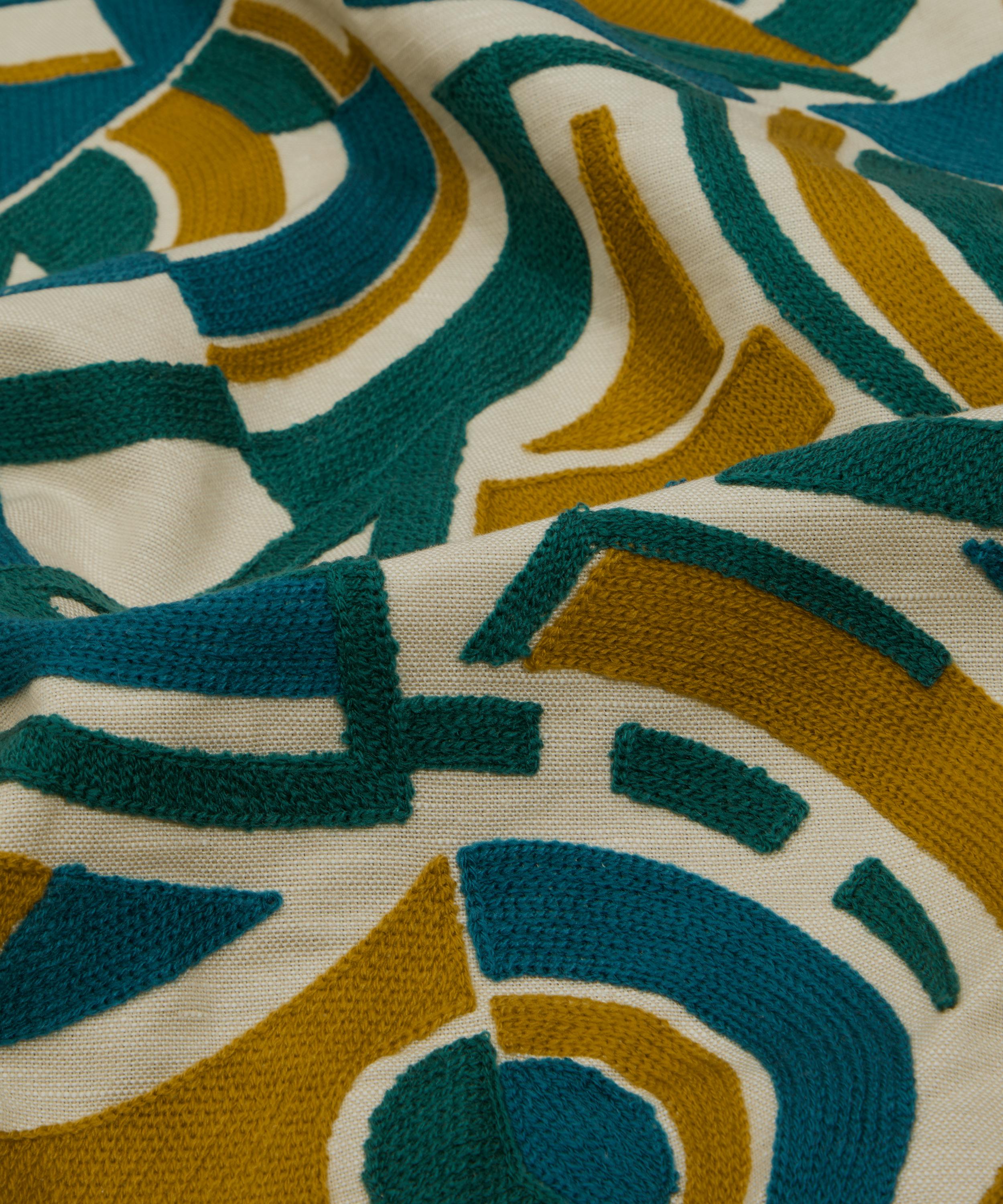 Trepak Embroidery was originally designed by Bernard Nevill for the 1965 Liberty Jazz collection. Now reimagined, it features a playful, three-dimensional decorative embroidery – ideal for drapery and decorative accessories such as cushions.