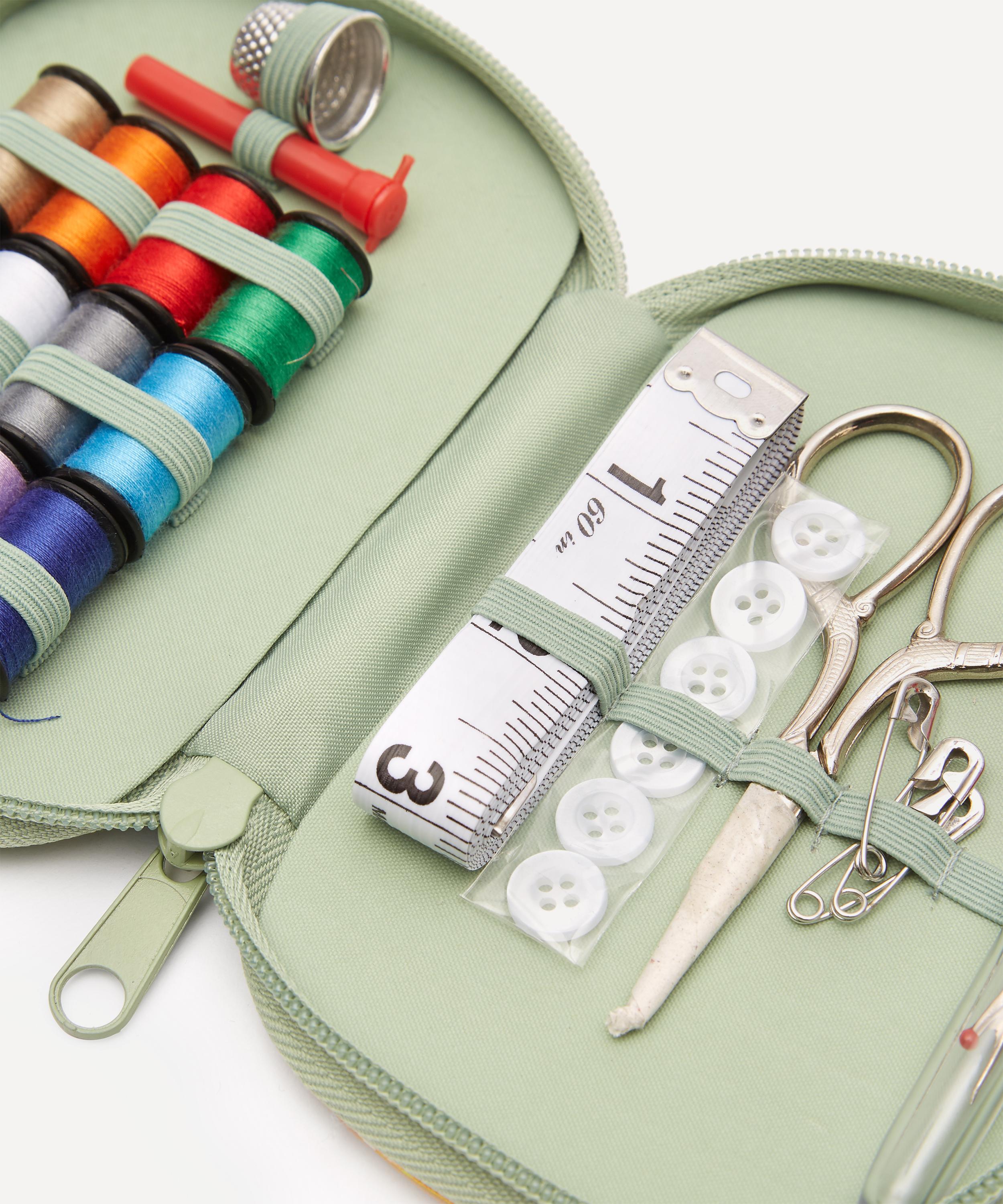 - Includes: 12 cotton reels, Sewing needles, Thimble, Tape measure, Button pack, Scissors, Safety Pins, Seam ripper