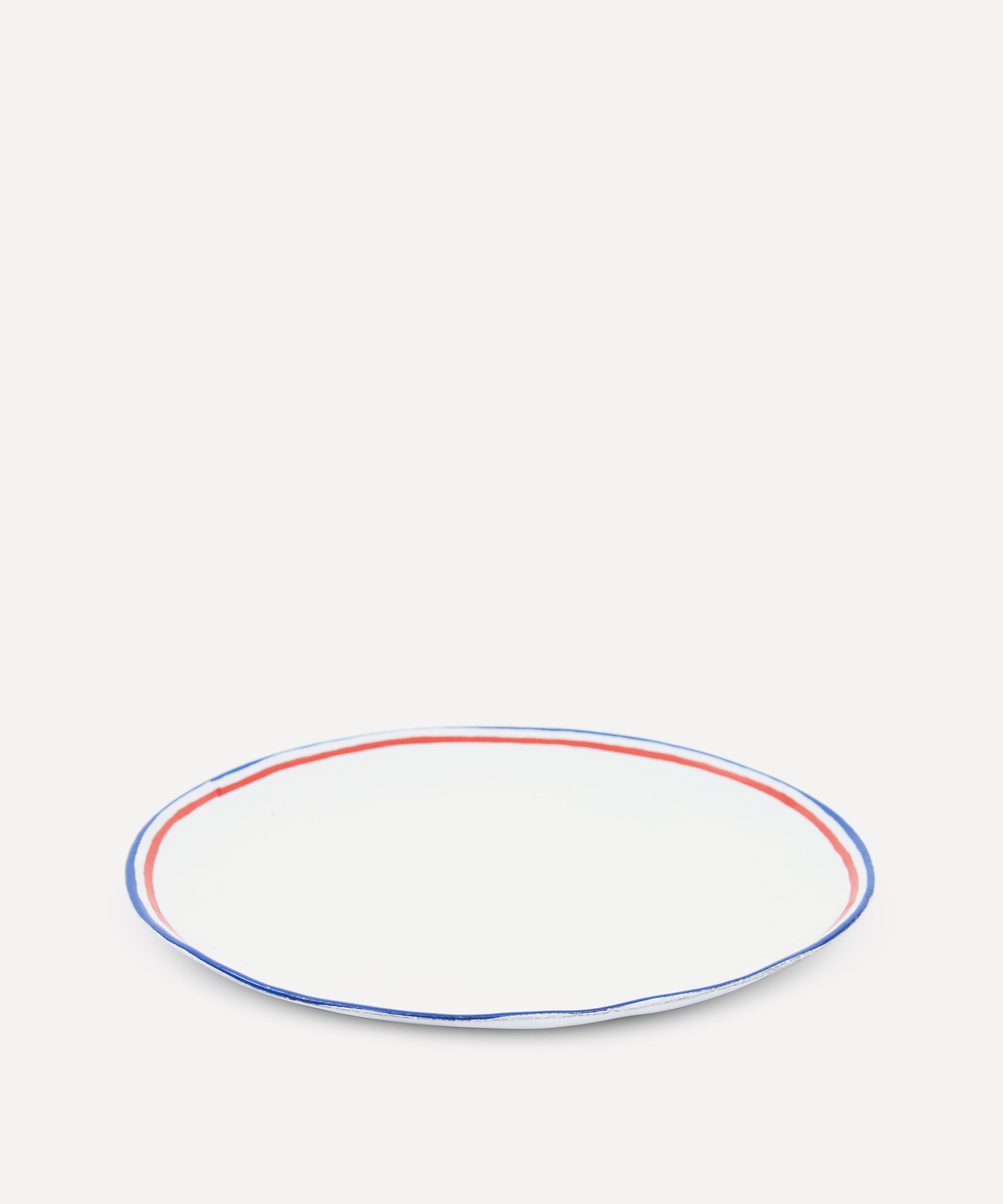 Votary of pre-industrial fabrication, Astier de Villatte is celebrated for being the one and only studio in Paris to hold and harbour the traditions of artisanal ceramic production. Restoring the ancestral systems of moulding and stamping, the Tricolour side plate is made using handcrafting techniques from the Middle Ages which involve moulding a handmade sheet of clay, double firing the ‘biscuit’ piece and glazing the product in white enamel – a lengthy process that involves a drying time of up to one month. Characterised by a tricoloured rim, the side plate is engraved with the brand’s signature crest - depicting an interlacing A & V - alongside the initials of one of the 40 master artisans who created it. Each handmade piece tells a beautiful story, it romances and imparts a sense of nostalgia into its owner. Arrange with other plates in the collection to breathe an air of authenticity into your dining collection.