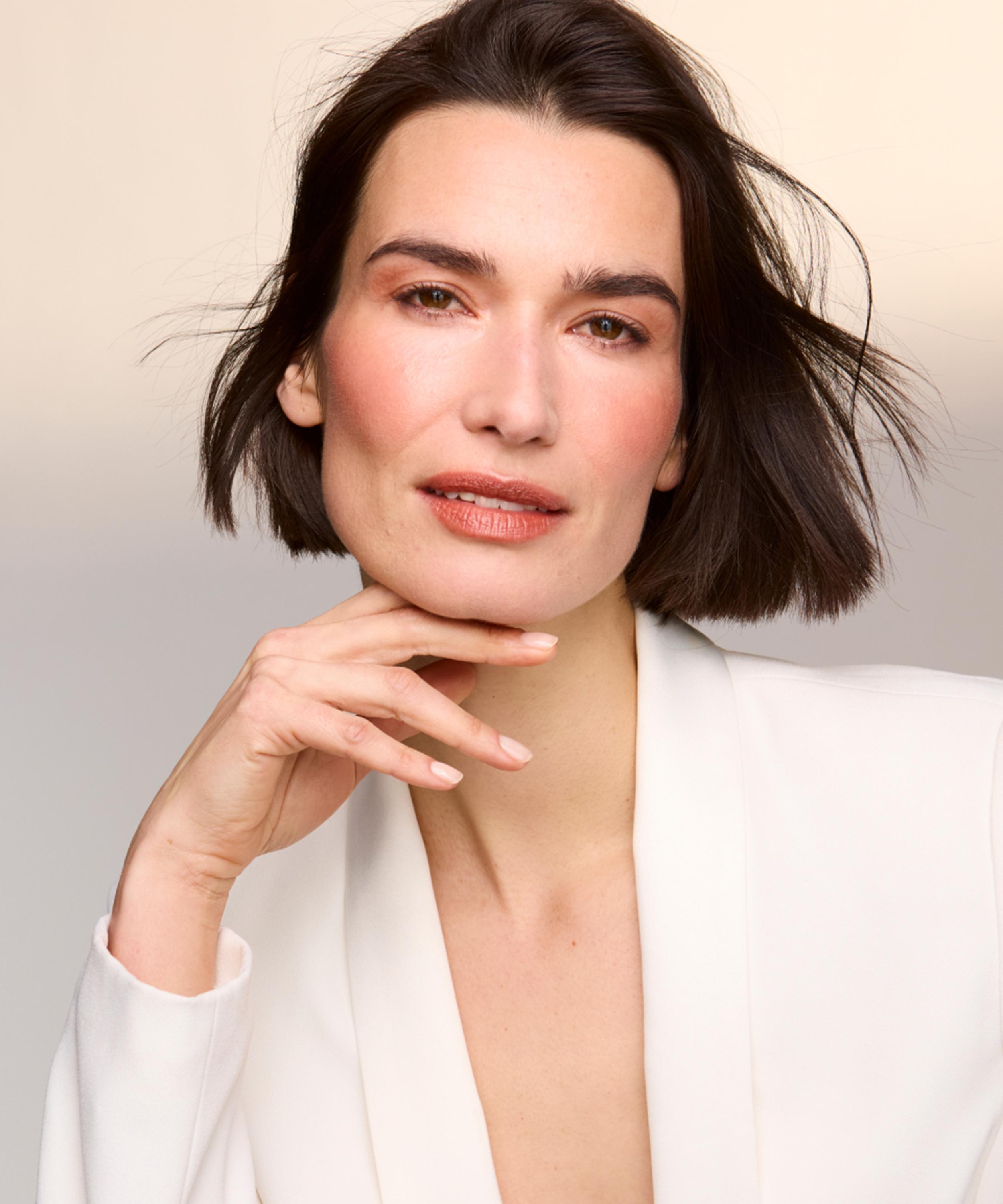 Use the glow end to add a glass-like sheen where you want it, whether that’s layered over the matte colour or on its own across the cheek or brow bones.