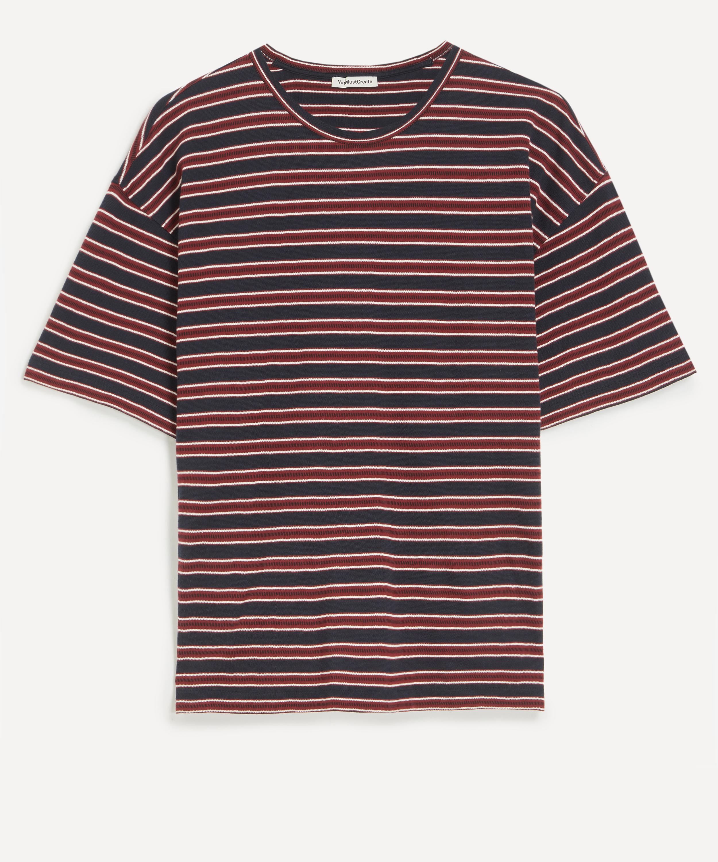 Crafted from cotton slub jersey with multi-tone stripes, this t-shirt features an oversized fit with dropped shoulders, short sleeves, and a classic crew neck for a relaxed, laid-back look.