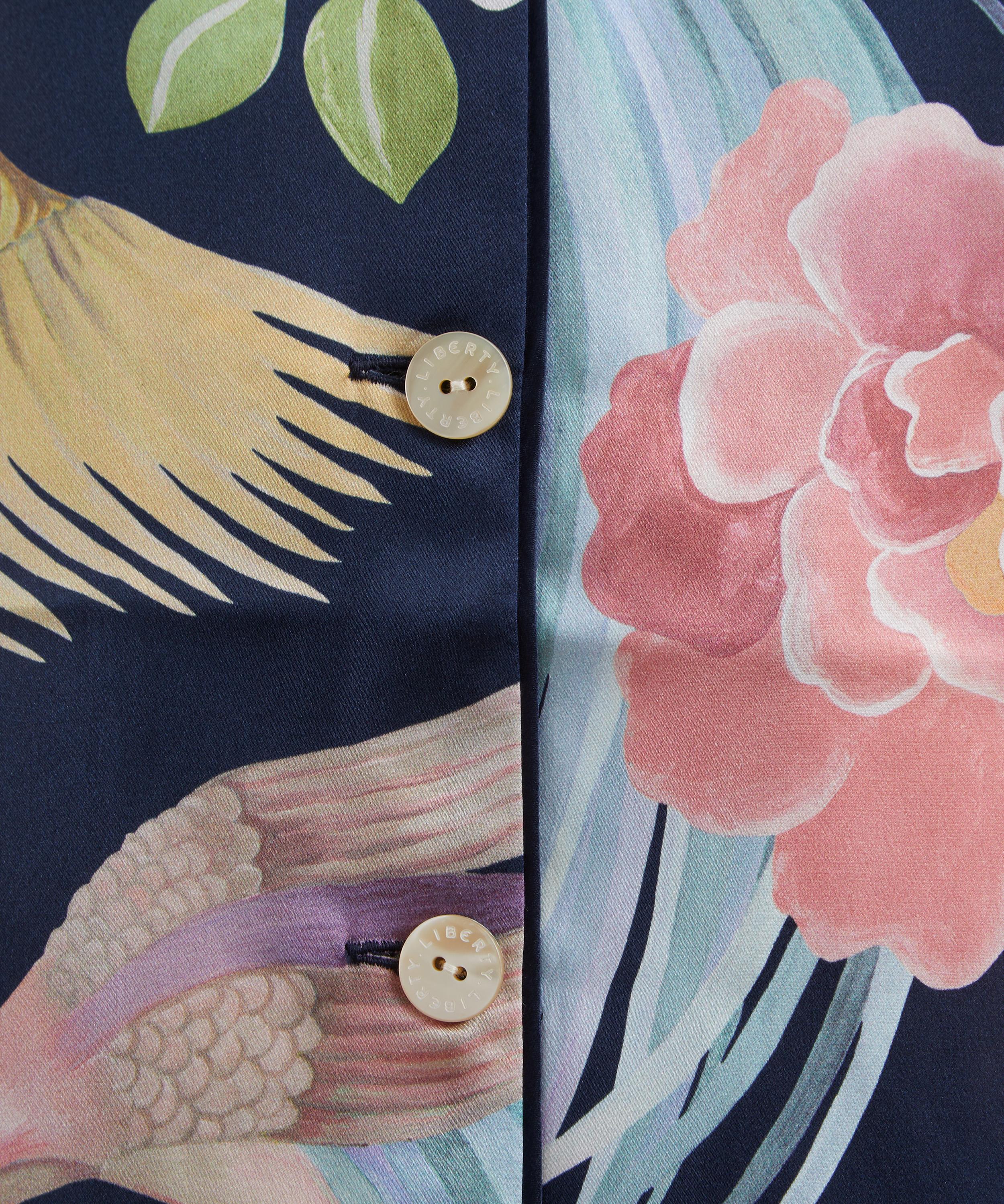 Adorned with Liberty’s iconic florals, the Tropical Shawl Silk-Satin Pyjama Set redefines loungewear with timeless elegance.