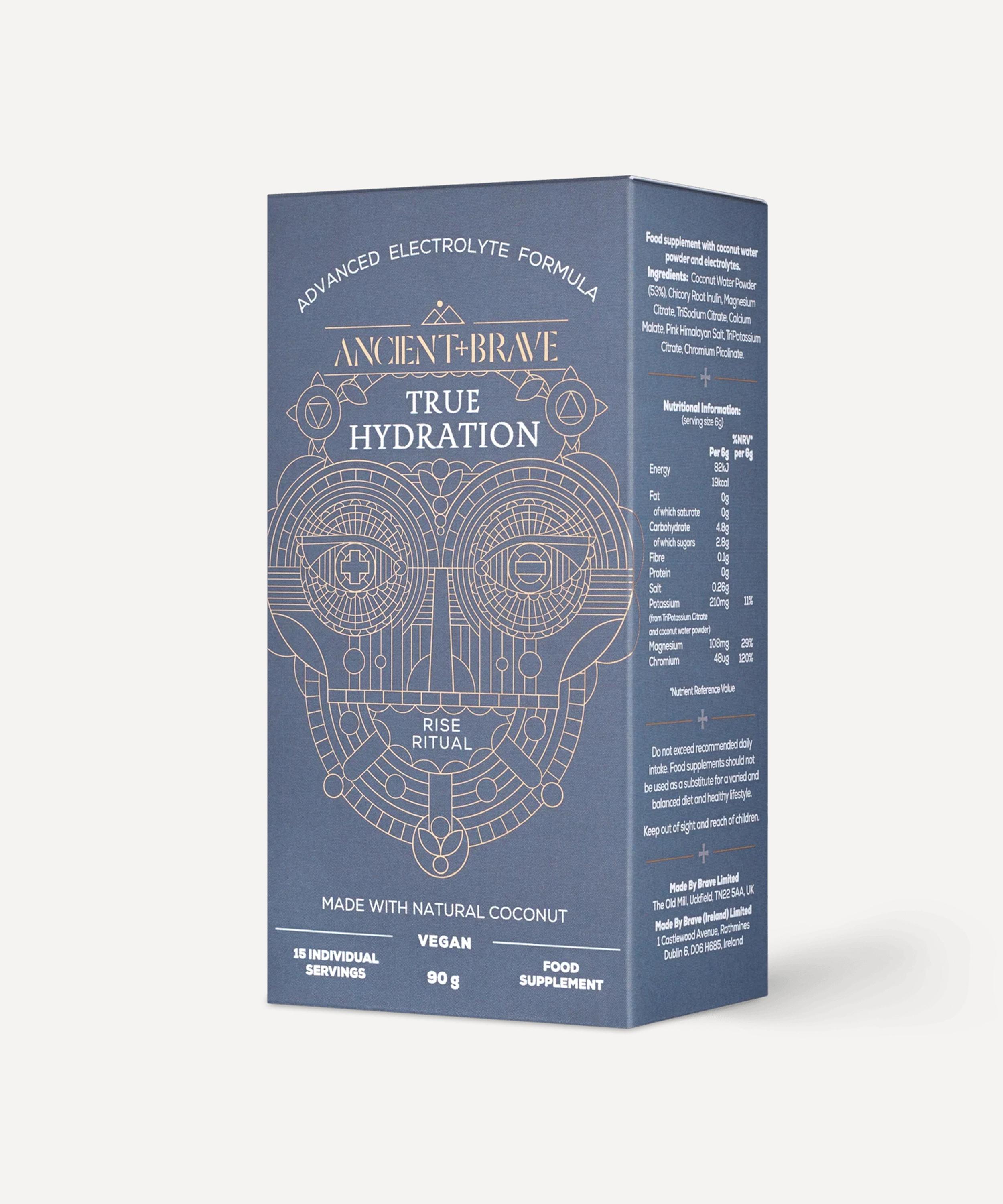 Take a break from topical skincare and elevate your skin with Ancient + Brave’s True Hydration Sachets, containing a powder supplement designed to boost the body’s hydration from within.
