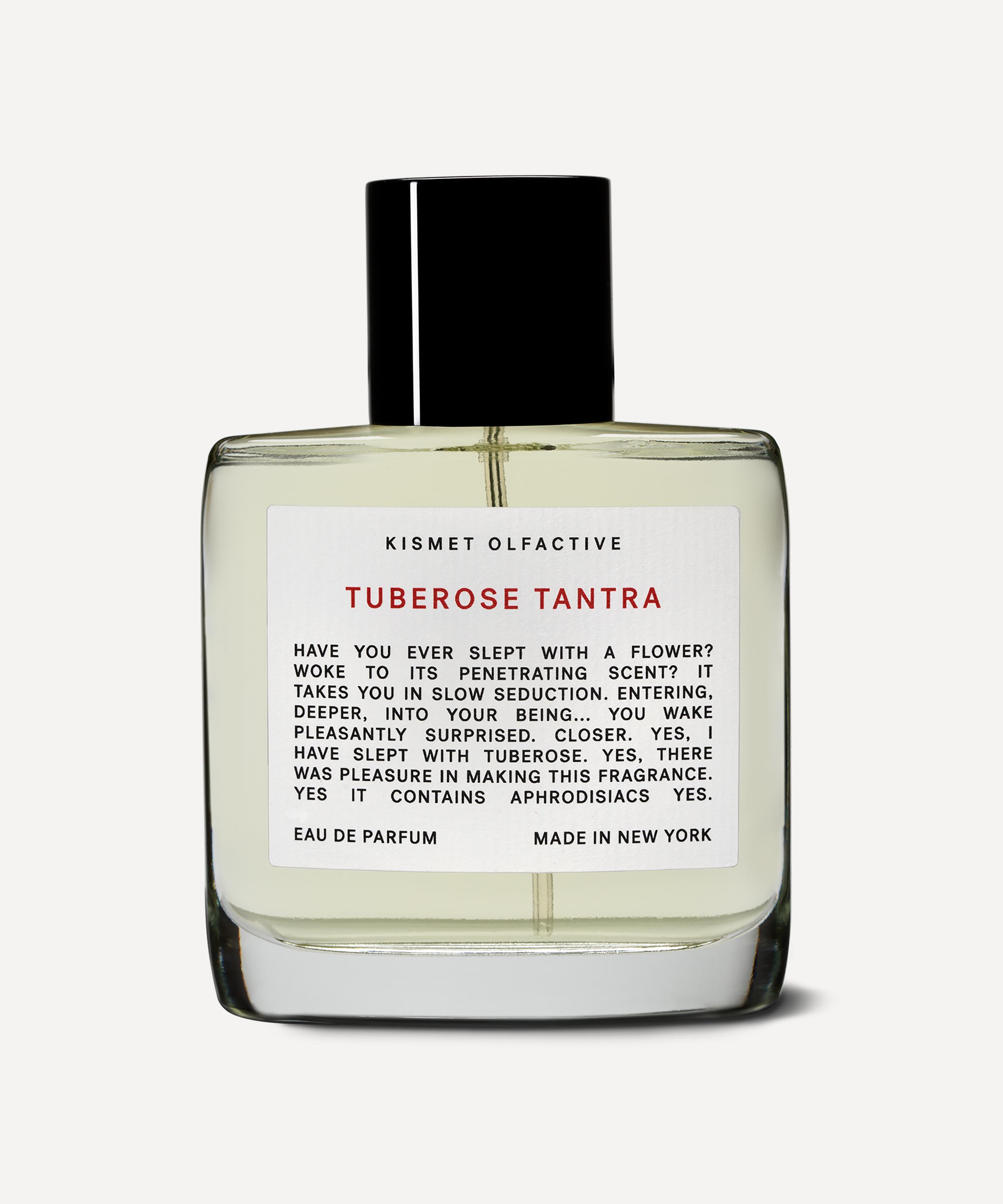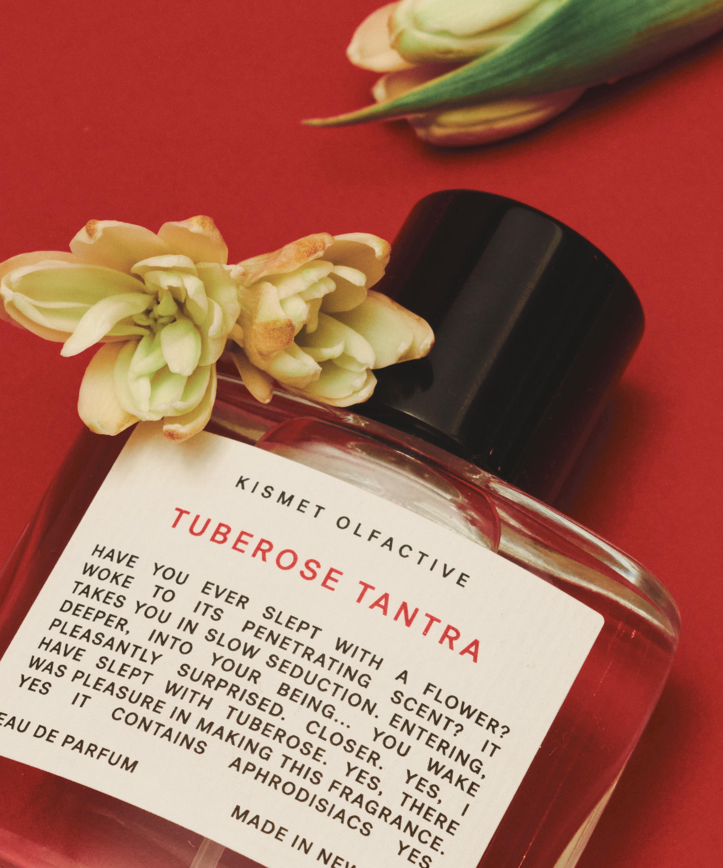 Indulge in the slow burn of Kismet Olfactive's Tuberose Tantra eau de parfum, a sensual floral fragrance enriched with layers of ancient aphrodisiac oils.