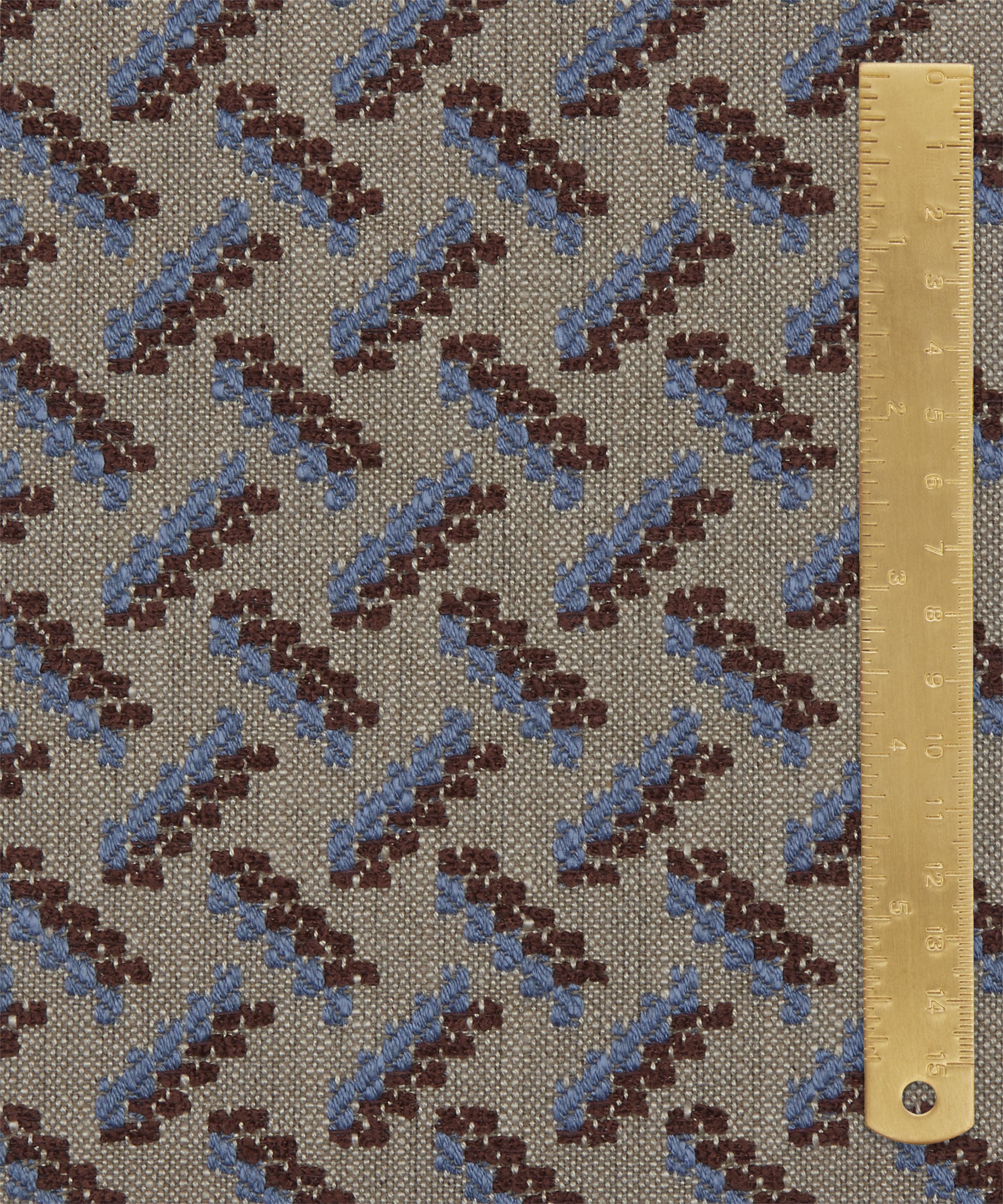 Echoing the grandeur of the Tudor-style architecture discovered within the Liberty flagship store, the building’s landmark chimneys are evoked in Tudor Brick’s geometric pattern. Crafted from handmade bricks inspired by those found at Hampton Court, each of the Regent Street store’s chimney bricks are shaped from special moulds to create unique patterns. Carefully woven with a cotton-linen blend, Tudor Brick is appropriate for upholstery, drapery, cushions, and accessories.